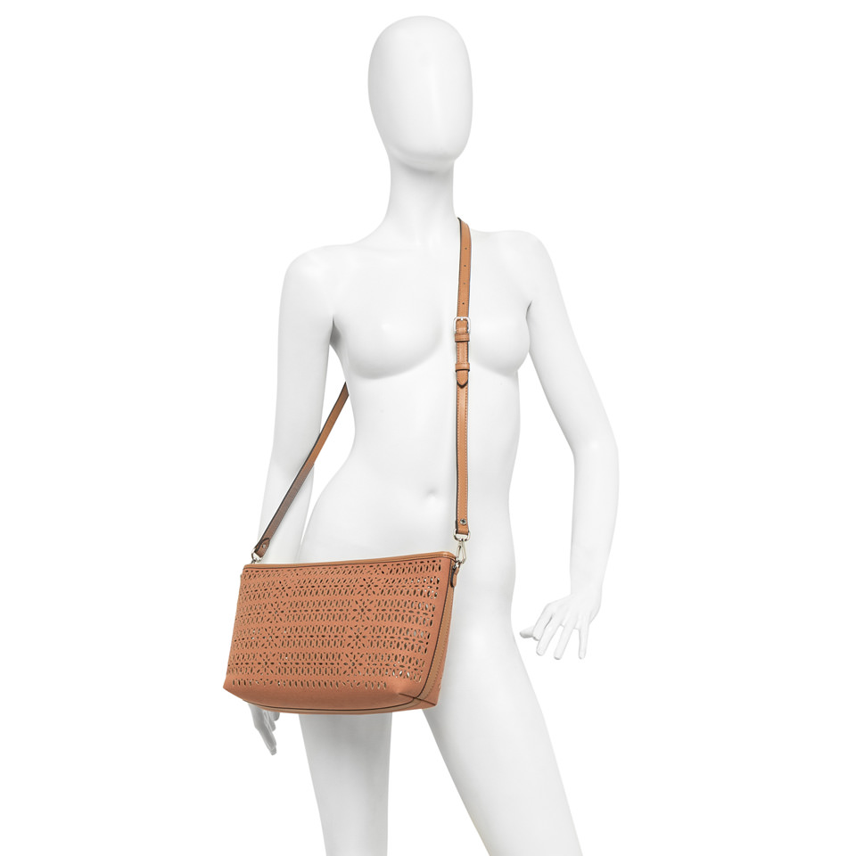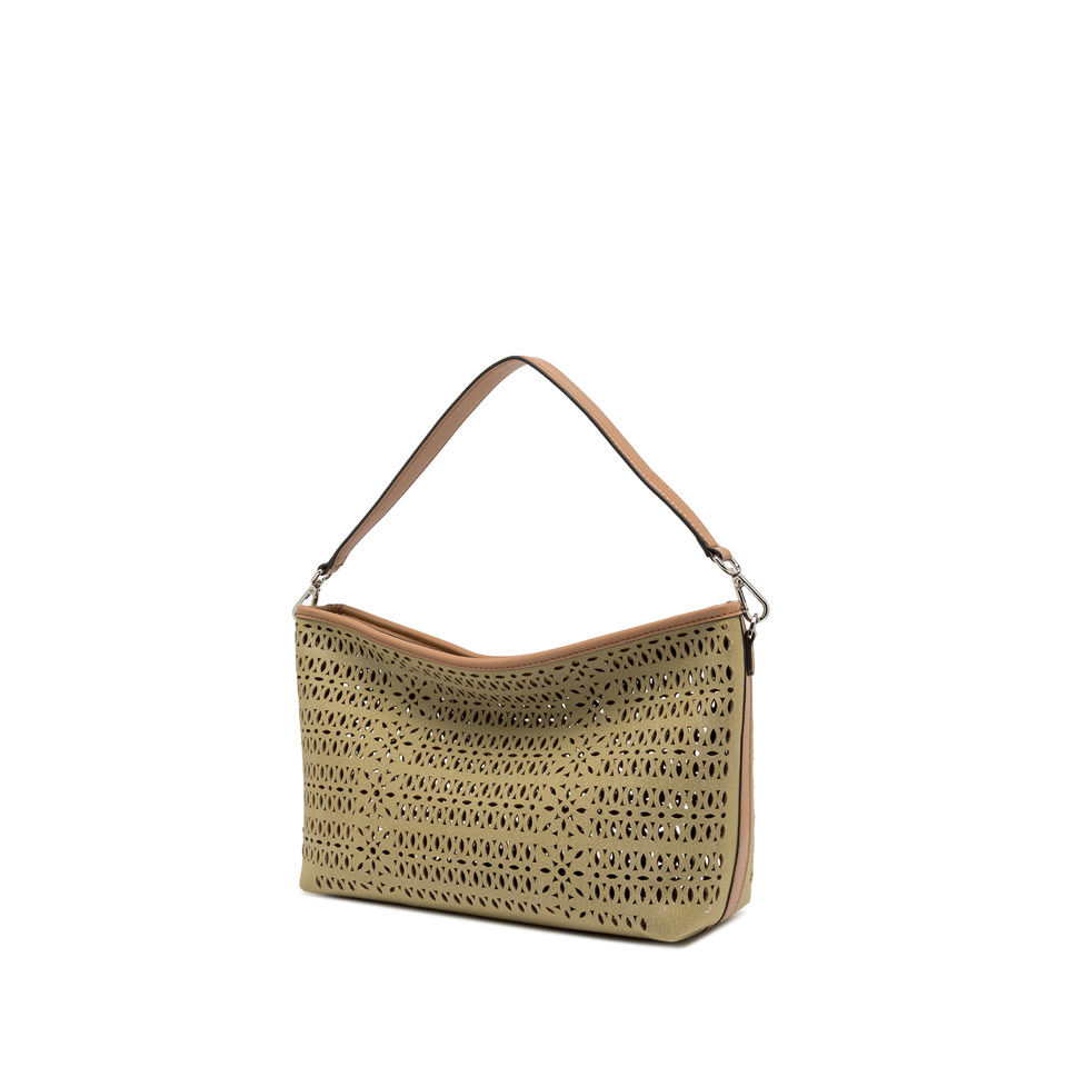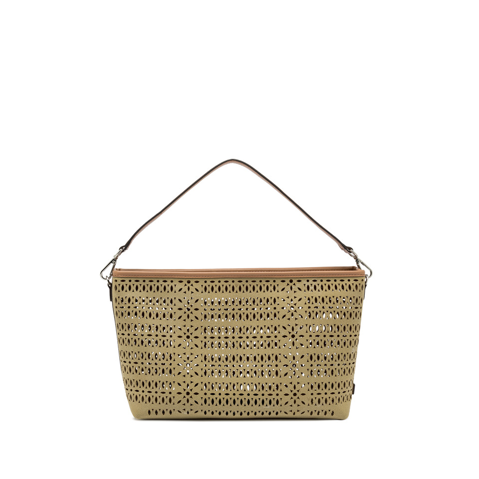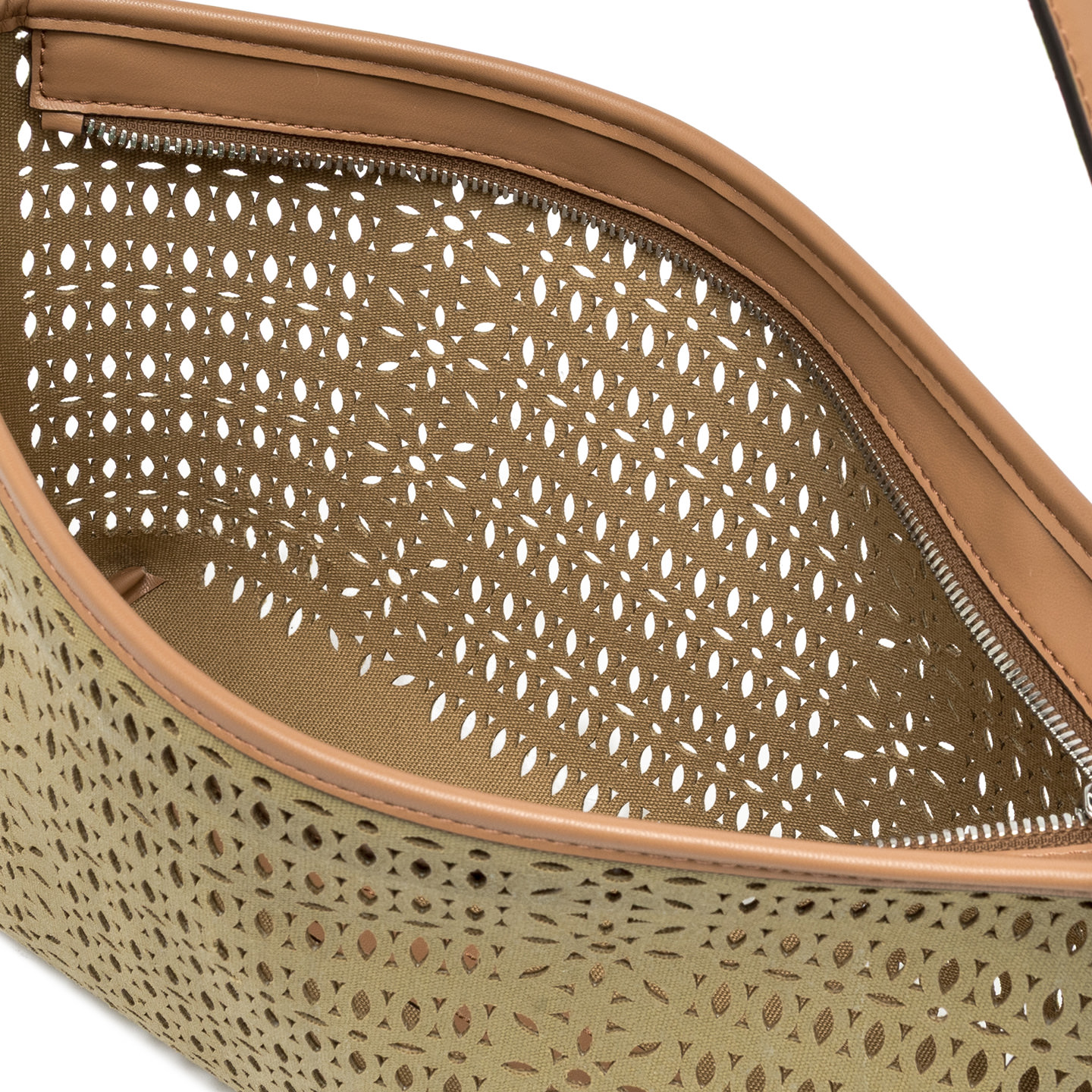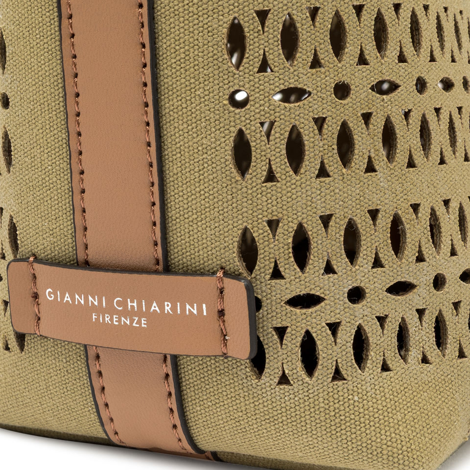 Сумка Mashup от Gianni Chiarini Firenze изготовлена из холста с лазерной резкой и изысканным перфорированным дизайном, который делает ее уникальной и неподвластной времени. Сумка со съемной кожаной ручкой с застежками-кнопками и застежкой на молнию идеально подходит для завершения повседневного образа в стиле кэжуал. Включает в себя регулируемый и съемный плечевой ремень для практичного и универсального ношения через плечо. Размер: 30x20x10 cm.