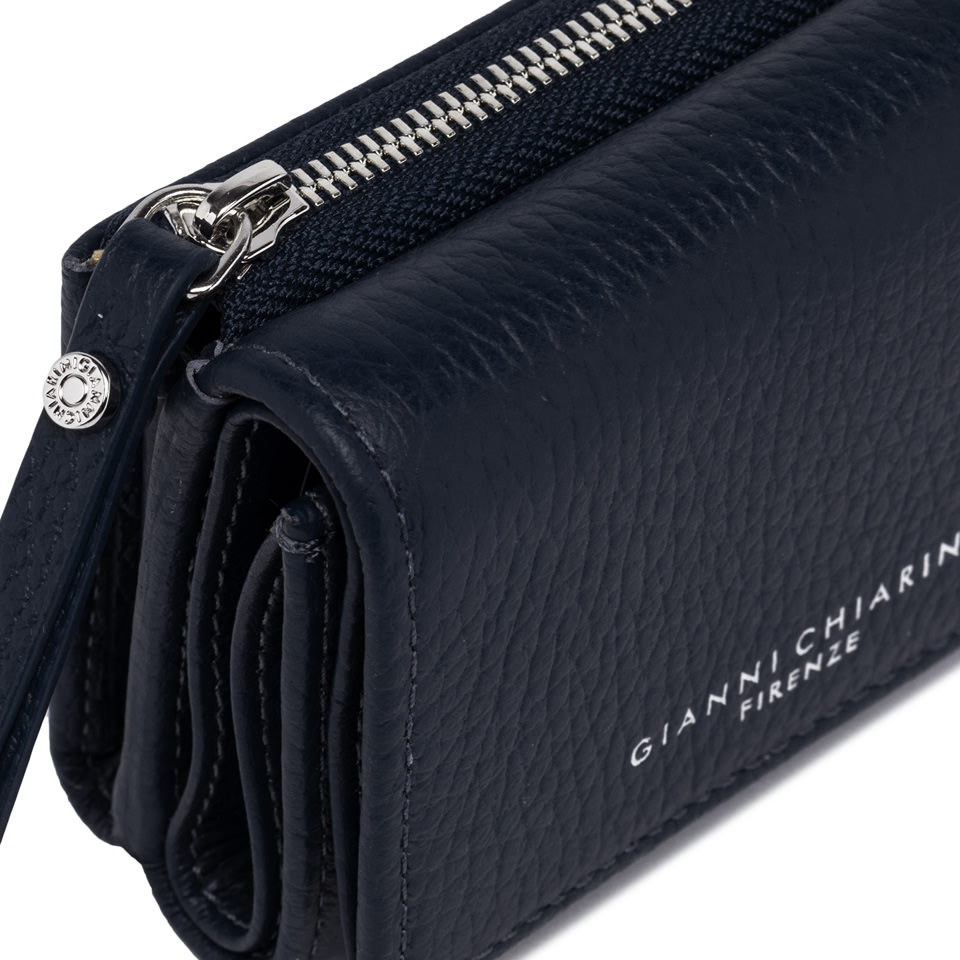 Das Portemonnaie Gianni Chiarini Firenze ist elegant und kompakt, hergestellt aus weichem genarbtem Leder. Es verfügt über Kartenfächer und eine Öffnung mit Reißverschluss, die den Zugriff auf zwei Innenfächer ermöglicht - ideal für die Aufbewahrung von Karten und kleinen Gegenständen. Maße: 10x8x2 cm.