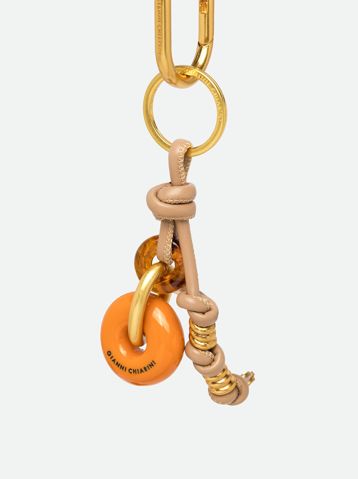 Neu in der Kollektion ist der Anhänger Resin Donut by Gianni Chiarini Firenze, ein originelles und spritziges Accessoire, gedacht um selbst einfachsten Looks einen spielerischen Touch zu verleihen. Er ist aus Kunstleder gefertigt und mit einem lustigen Donut aus Harz und einem Karabinerhaken aus Metall mit Logo versehen. Ideal, um Taschen und Rucksäcke mit einem fröhlichen und einzigartigen Touch zu bereichern. Maße: 4,5x19,5x4 cm.