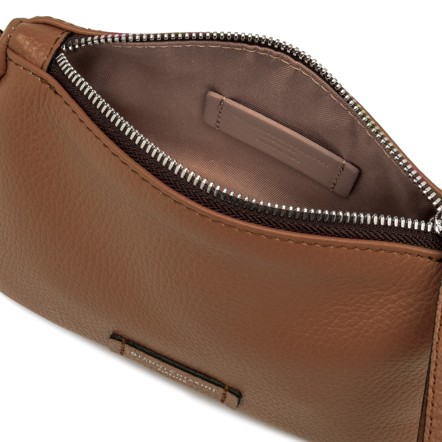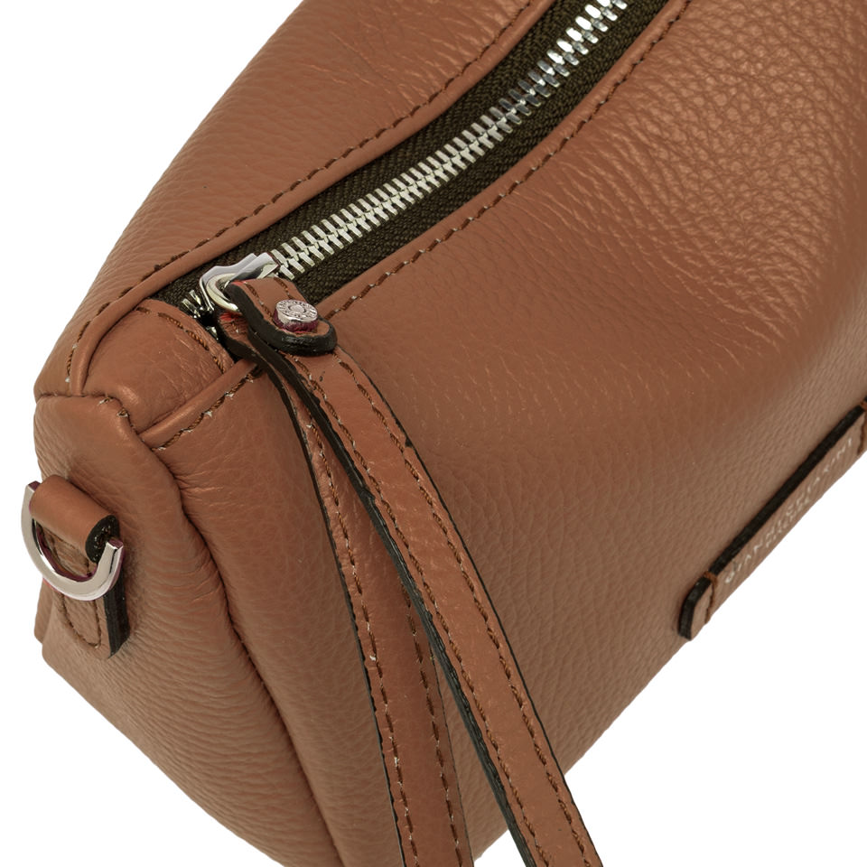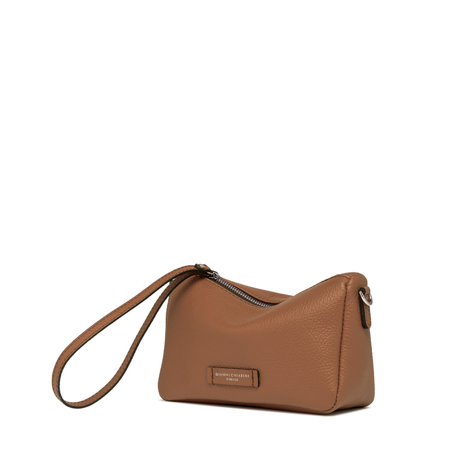 Die Tasche Nora Pouch by Gianni Chiarini ist aus genarbtem Leder gefertigt. Sie verfügt über einen Riemen aus Leder, mit dem sie am Handgelenk getragen werden kann, und einen verstellbaren Trageriemen aus Leder, beide abnehmbar. Verschluss durch Reißverschluss. Maße: 20,5x14,5x8 cm.