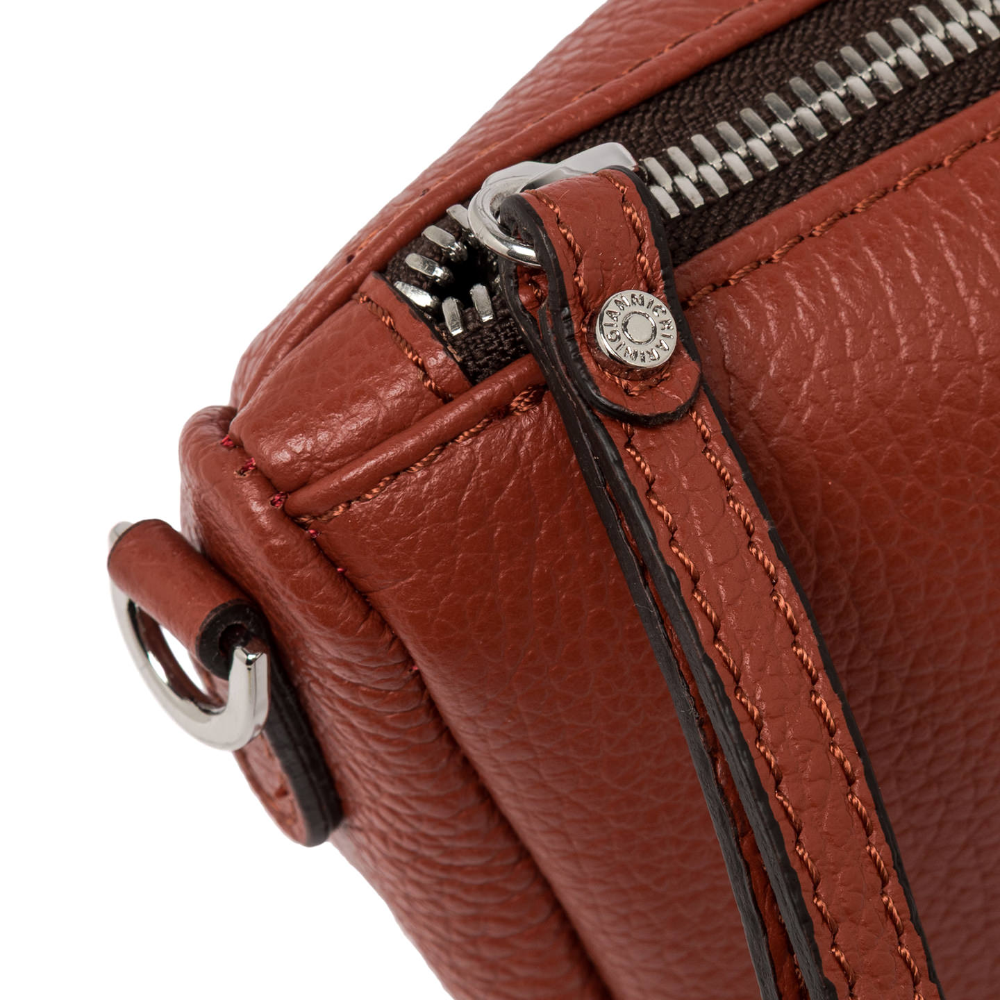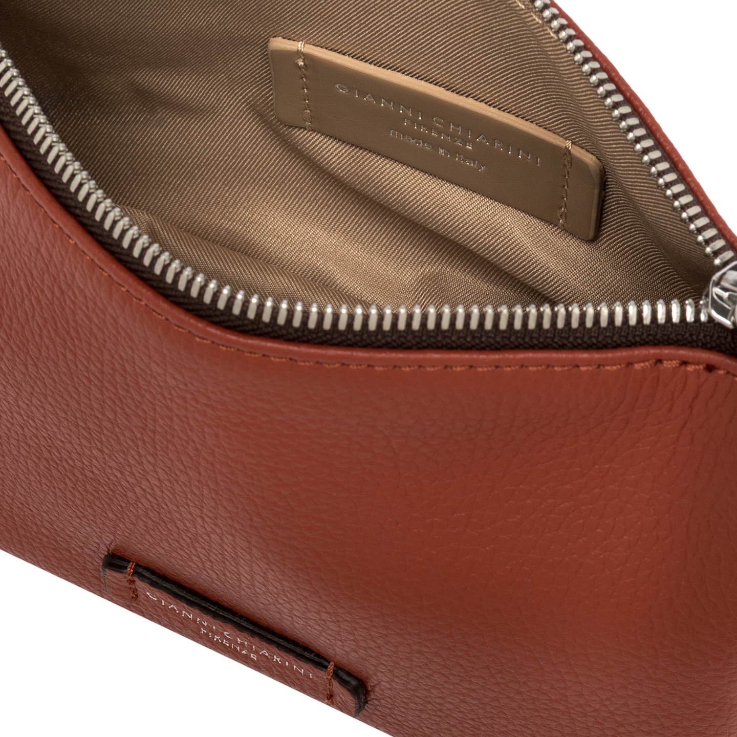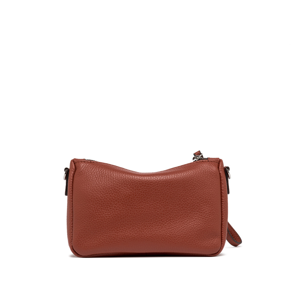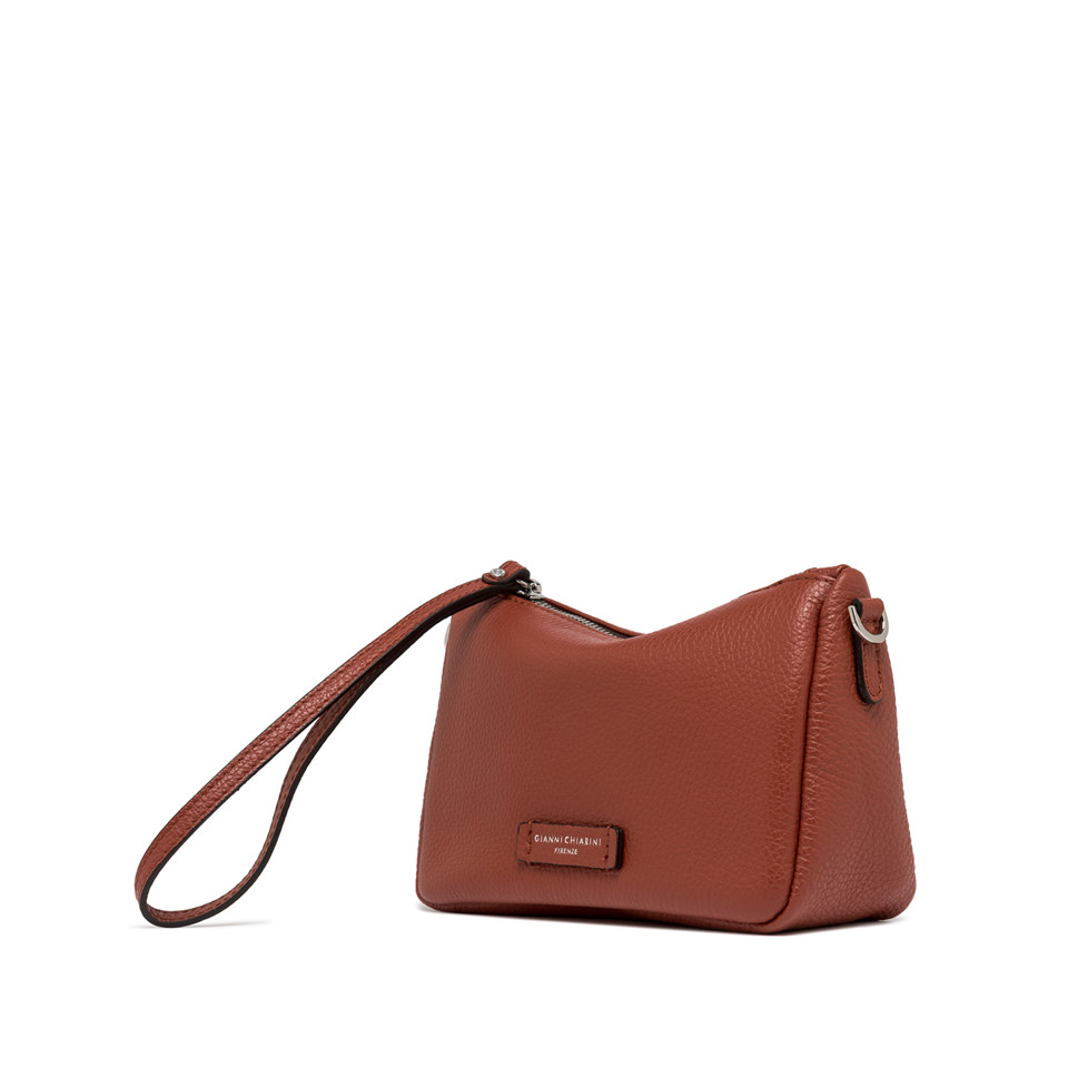 Die Tasche Nora Pouch by Gianni Chiarini ist aus genarbtem Leder gefertigt. Sie verfügt über einen Riemen aus Leder, mit dem sie am Handgelenk getragen werden kann, und einen verstellbaren Trageriemen aus Leder, beide abnehmbar. Verschluss durch Reißverschluss. Maße: 20,5x14,5x8 cm.