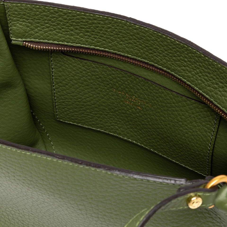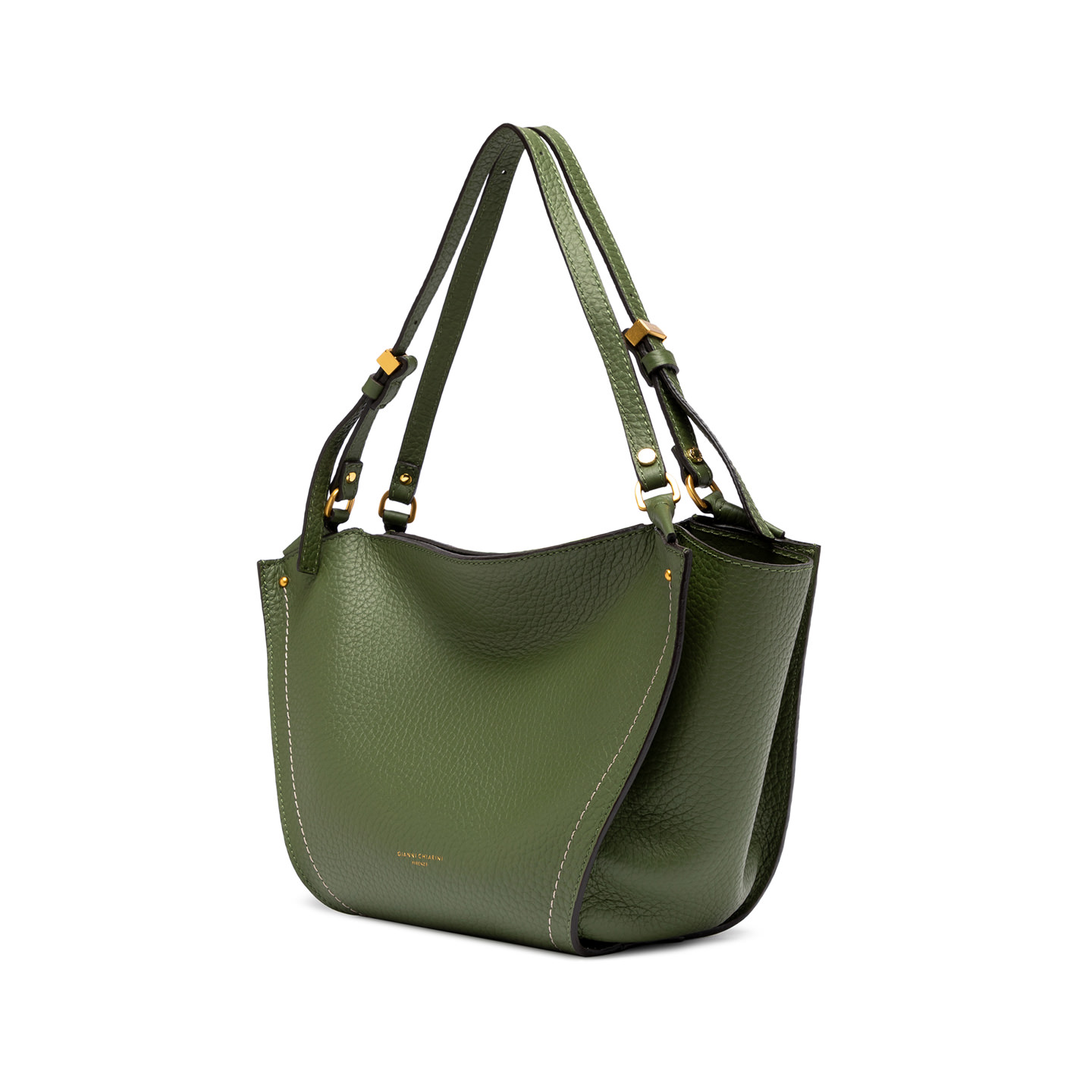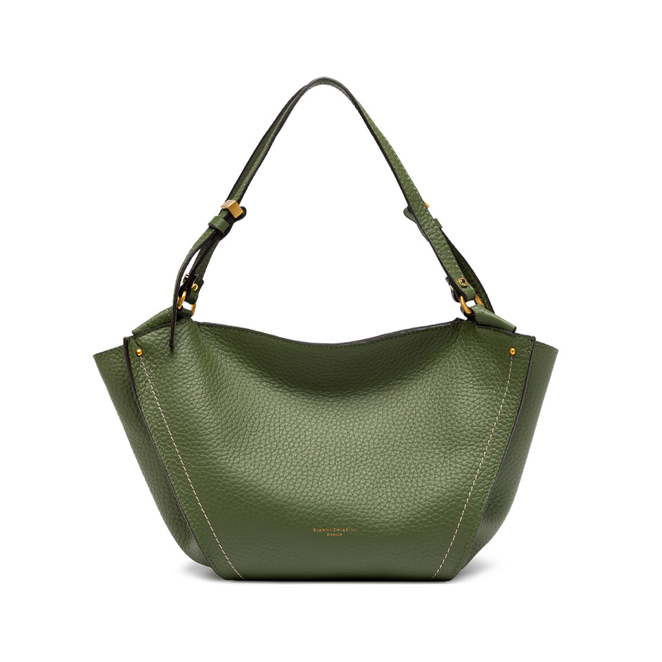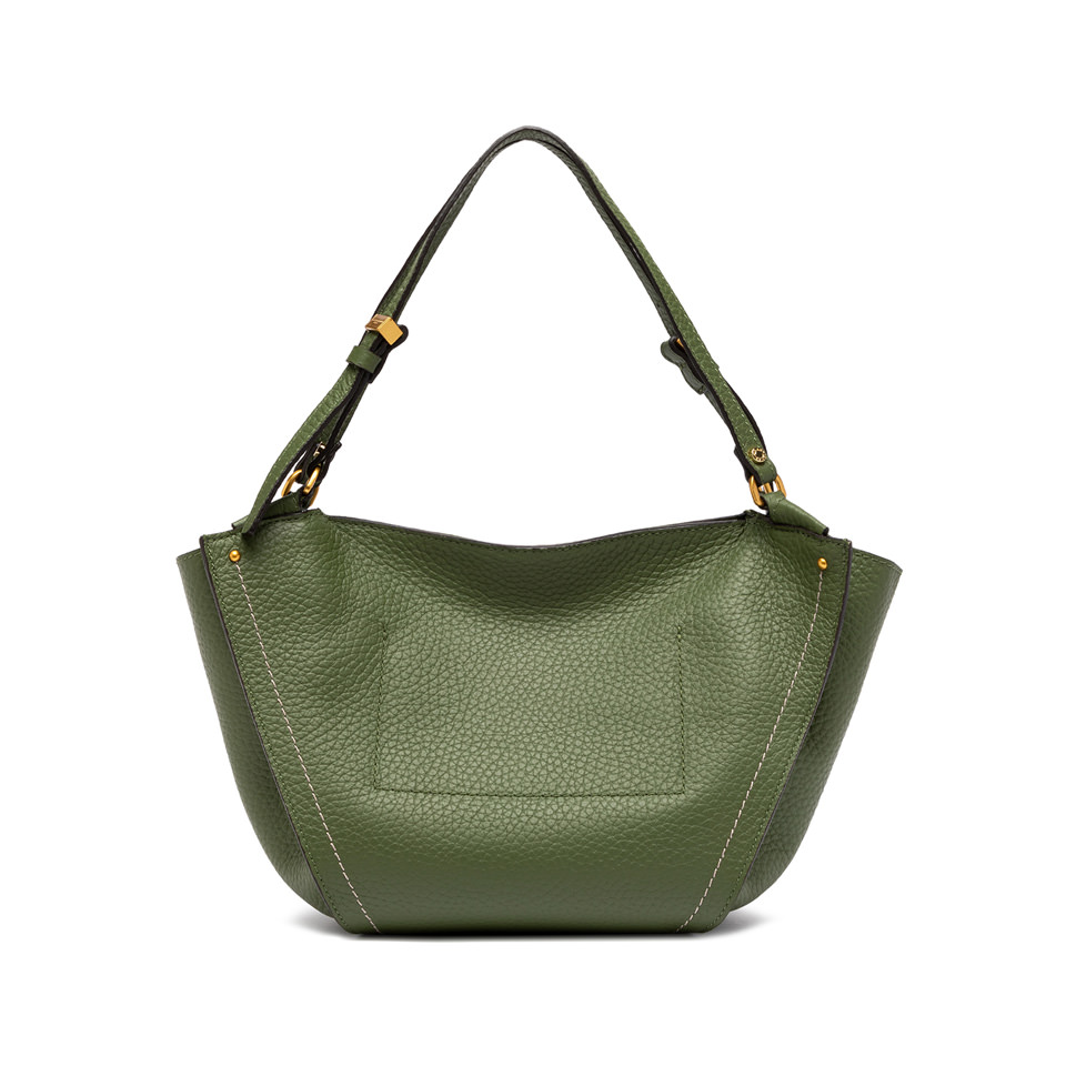Bloom ist die neue praktische und geräumige Tasche, die durch ihre Tulpenform besticht. Hergestellt aus doppeltem Leder mit Maxi-Narbung und mit einer kontrastierenden Ziernaht verziert. Dieses Accessoire ist mit Elemente aus Metall verziert, die der Tasche einen Hauch von Eleganz verleihen. Maße: 43x25x14 cm.