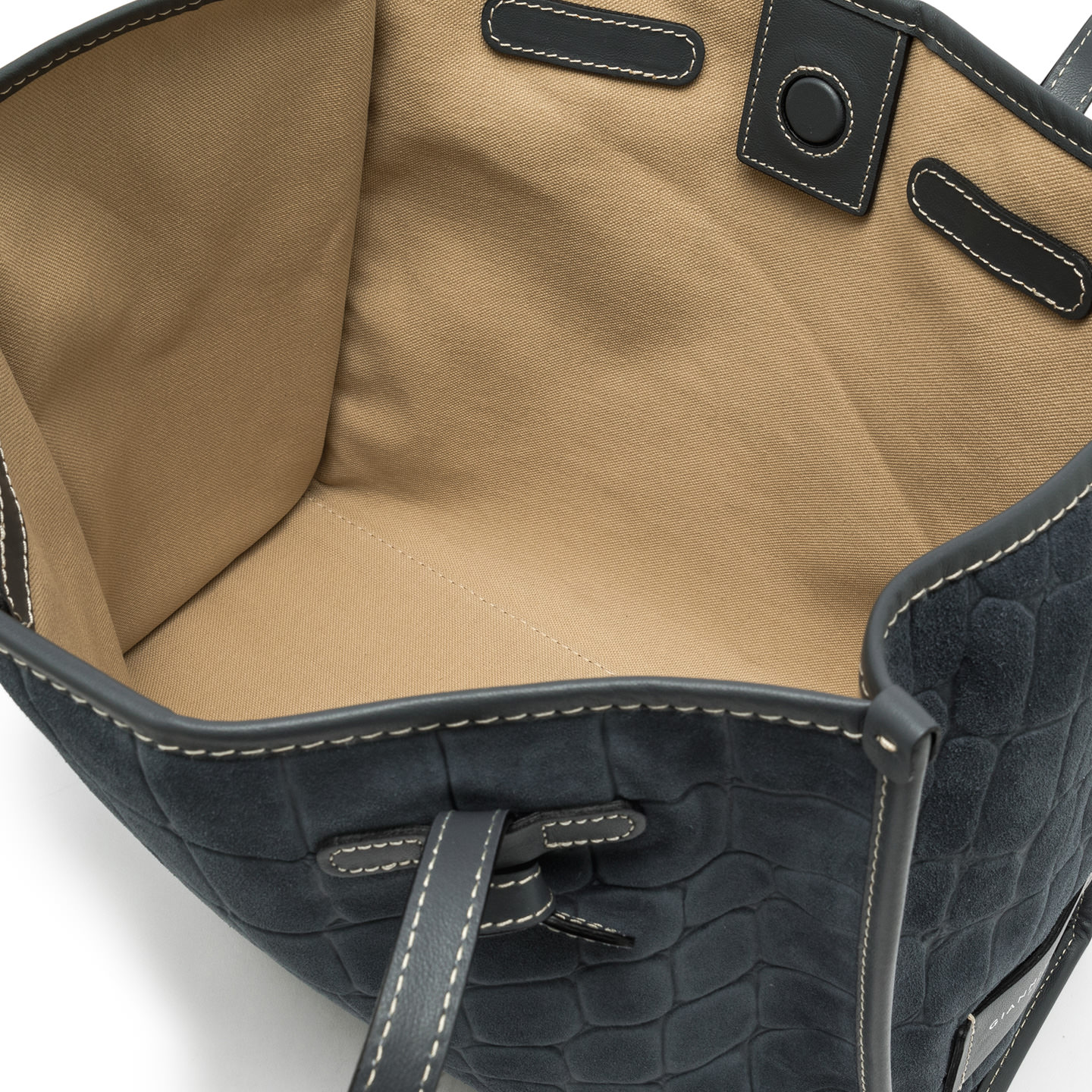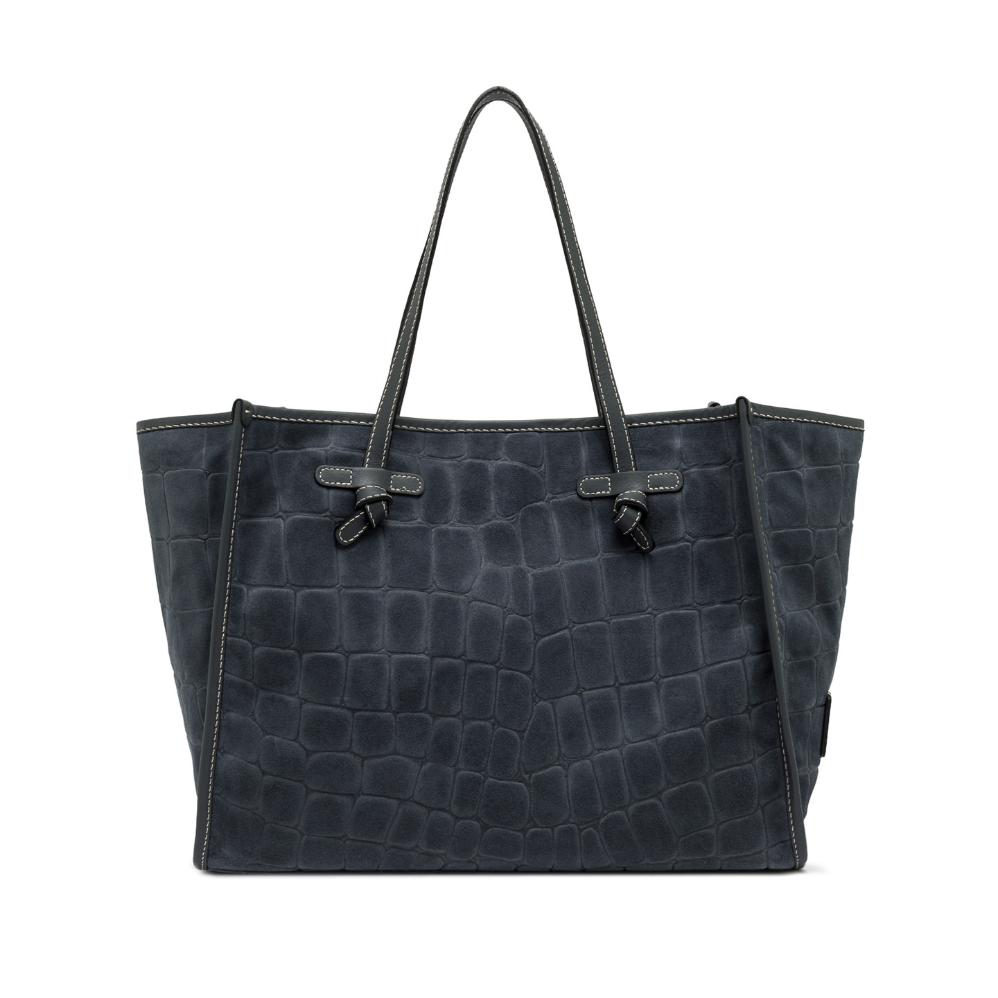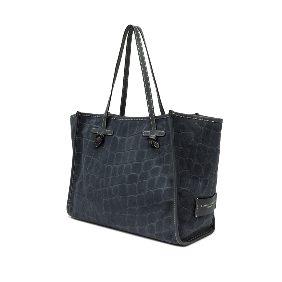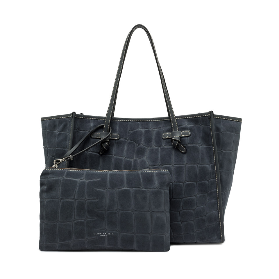 Die Shopping-Bag Marcella by Gianni Chiarini Firenze, mit ihrer schlichten und modernen Silhouette ist aus Wildleder mit einem Maxi-Kroko-Aufdruck gefertigt, ein unverwechselbares Element, das Charakter und Stil verleiht. Leicht und geräumig, ausgestattet mit Lederhenkeln und einem praktischen Magnetverschluss, macht sie perfekt für den alltäglichen Gebrauch. Mit ihrem coolen Stil ist sie perfekt, um jedes Outfit mit einem Hauch von Persönlichkeit zu ergänzen. Maße: 38x31x16 cm.