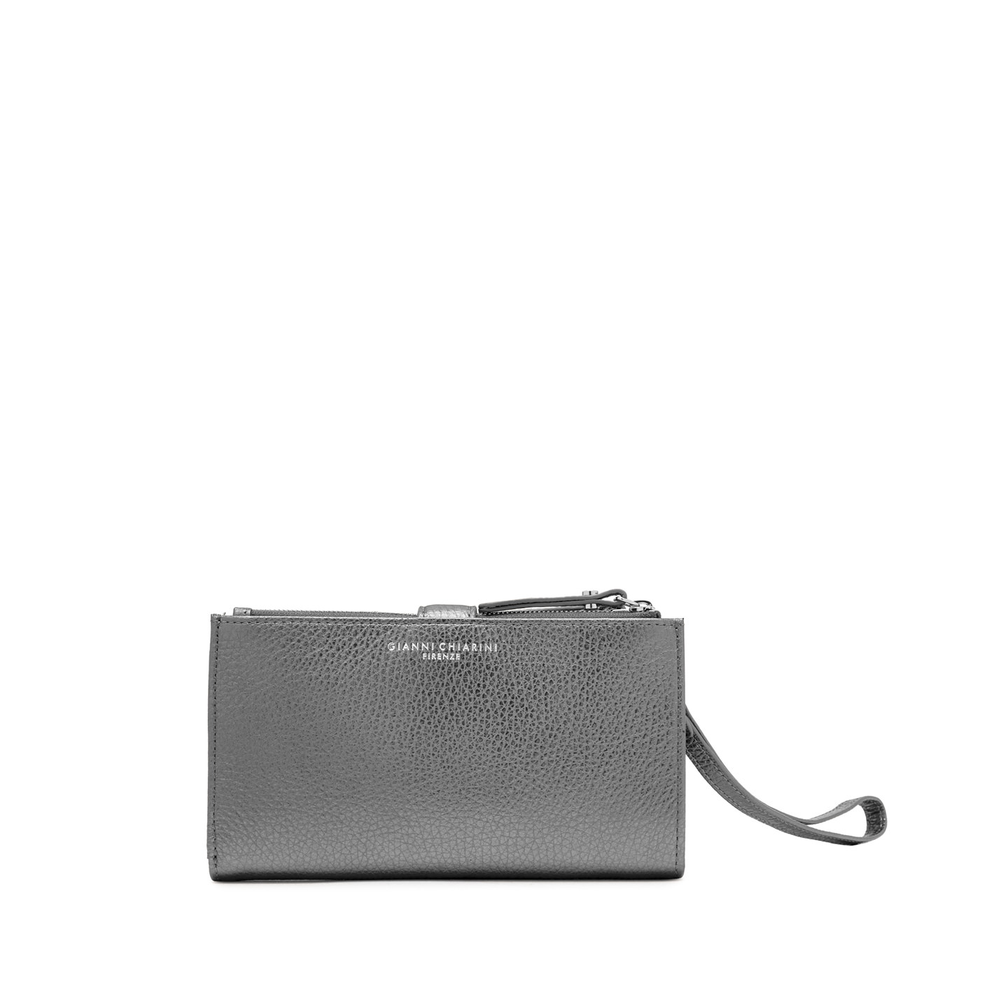This Gianni Chiarini Firenze wallet, made of laminated hammered leather, combines elegance and functionality. The zip closure, press-stud flap, and multi-purpose pockets ensure practicality and security. Equipped with a removable wrist strap and an adjustable shoulder strap, it can be worn on the wrist or crossbody for unique versatility. Size: 18.5x8x2 cm.