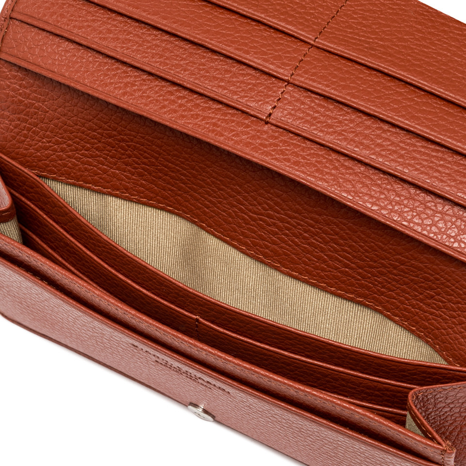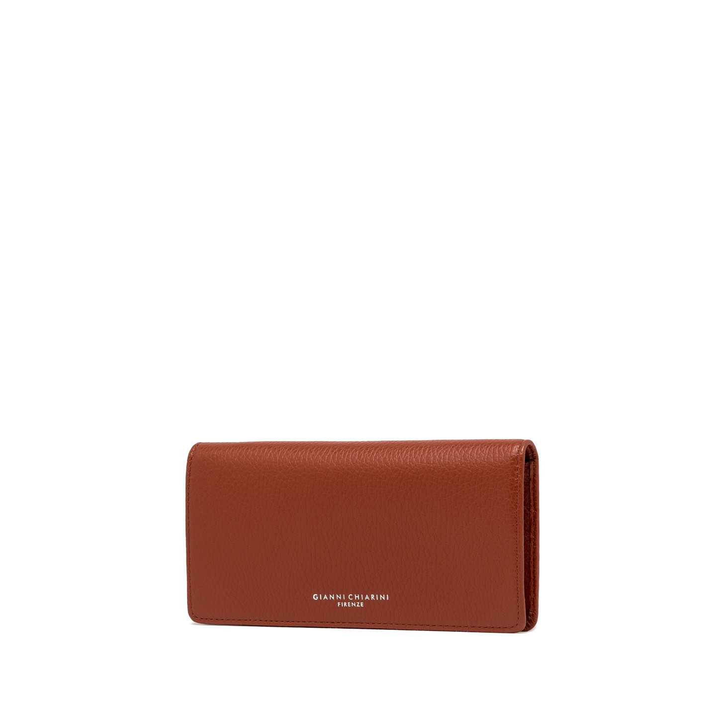 Practical and glam, Gianni Chiarini Firenze wallet is the ideal choice for those seeking a blend of practicality and fashion in their accessories. Made of hammered leather, it features a snap button closure and multiple credit card holder compartments. Size: 19x10x2 cm.