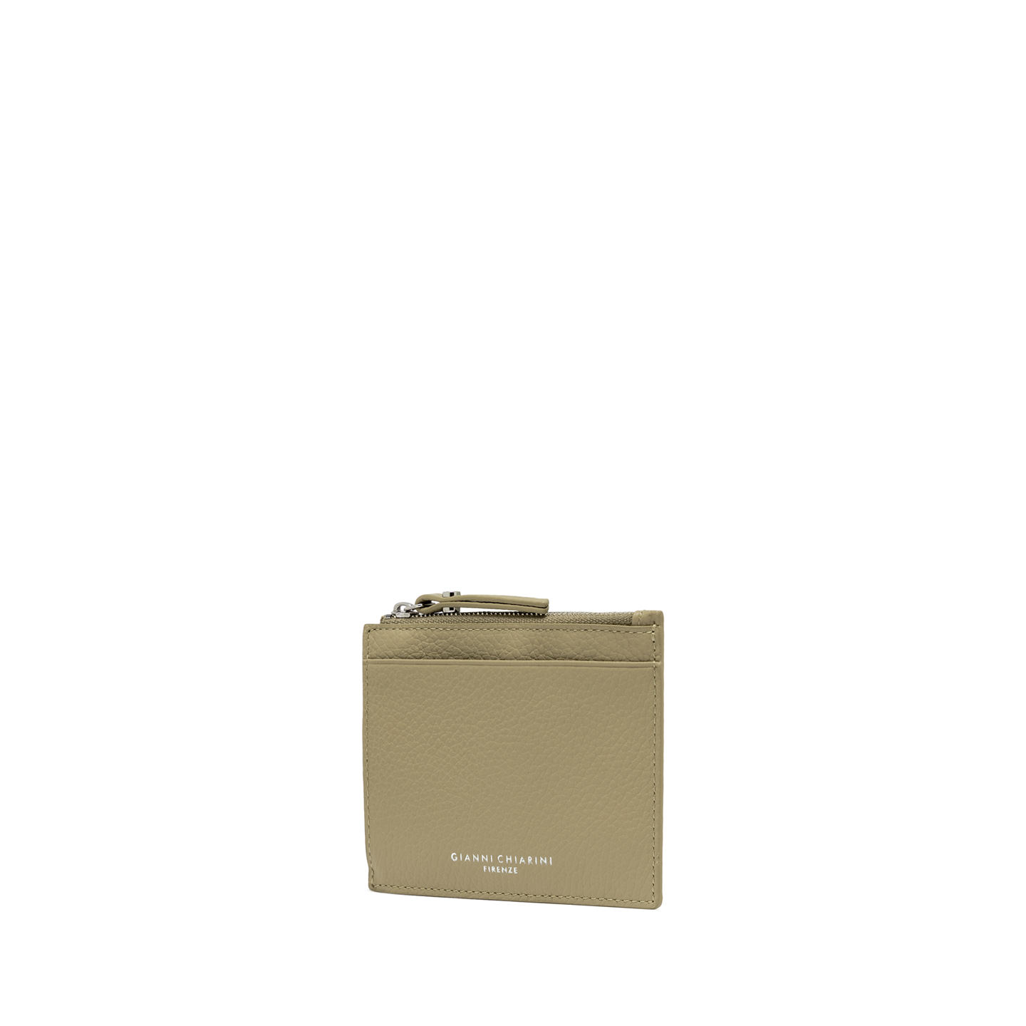This brand new credit card holder by Gianni Chiarini Firenze is made of hammered leather. Top zip closure with color matched zip-puller. Multiple multi-purpose flat pockets at back. Size: 13x7.7x1.5 cm.