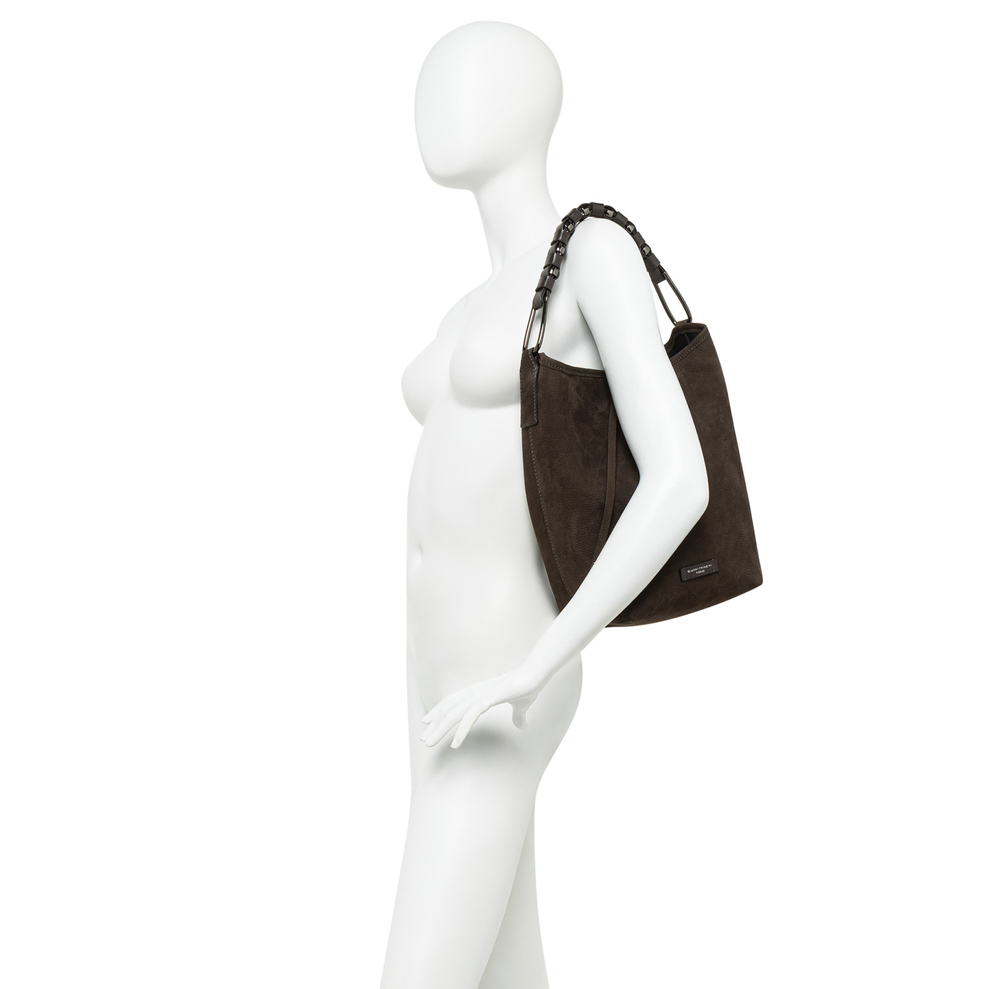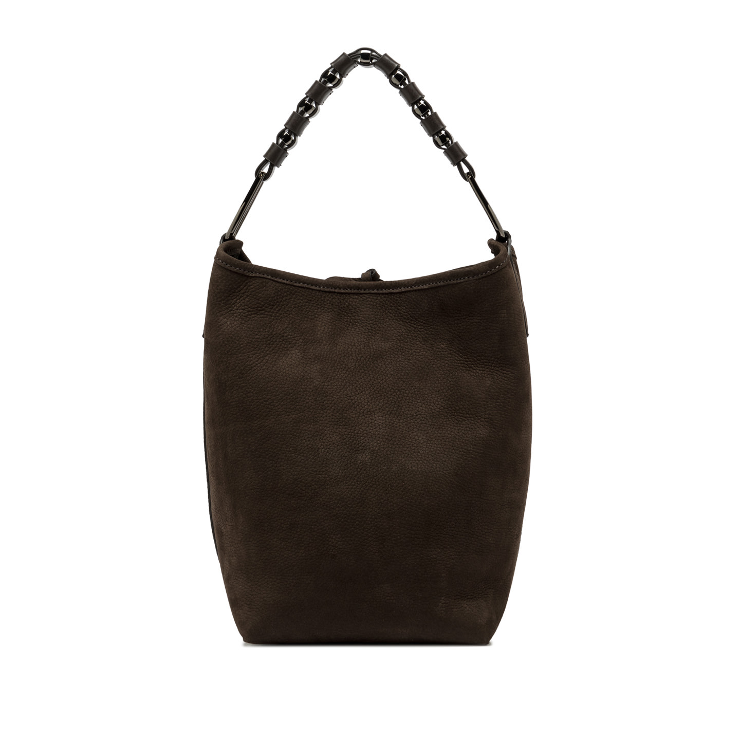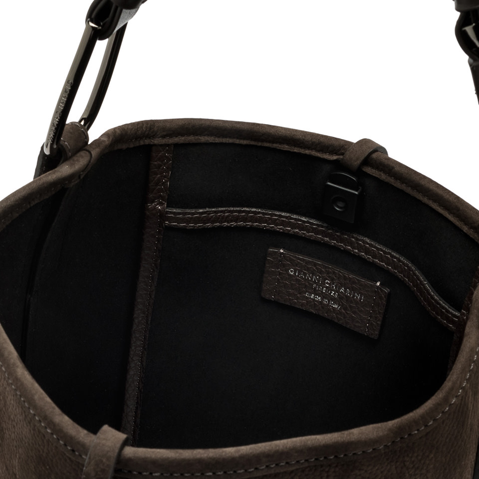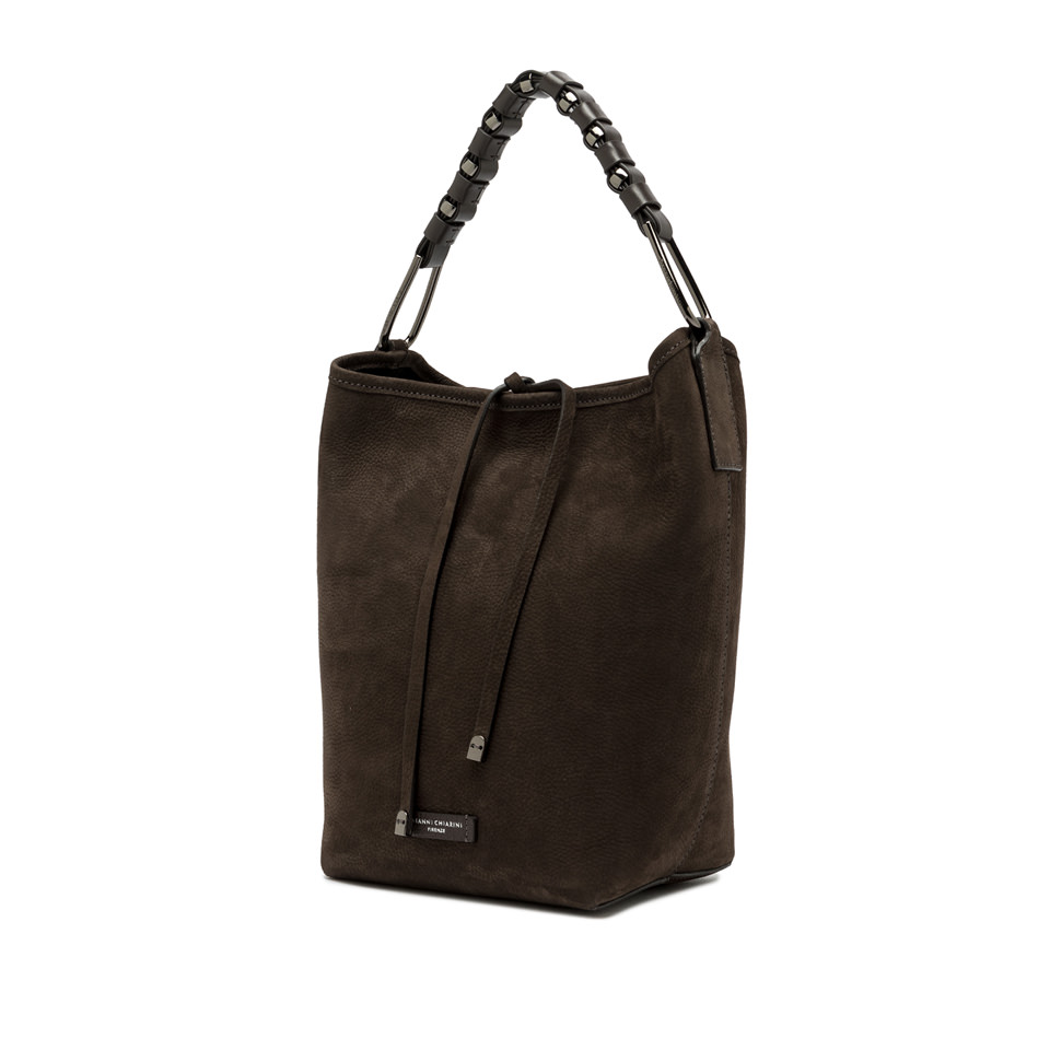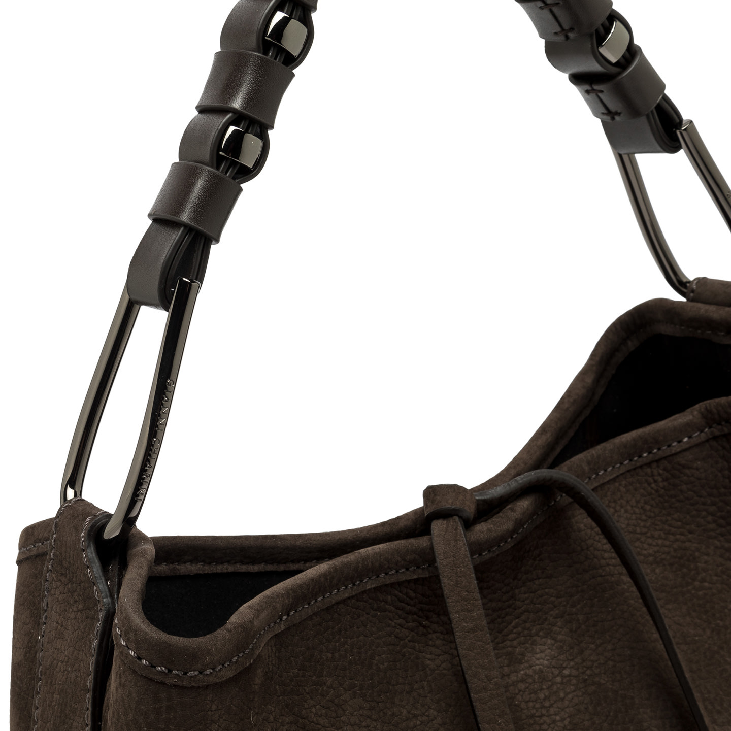 Eliana stands out for its essential design, with simple yet refined lines. Made of nubuck leather and characterized by a soft silhouette, it is the ideal accessory to complete a daily-casual look. The braided handle adds a modern touch, while the adjustable and removable strap ensures versatility. Size: 20x33x15 cm.