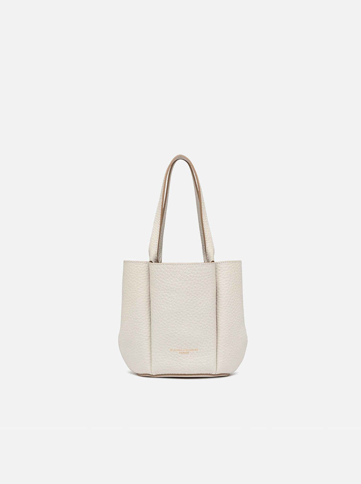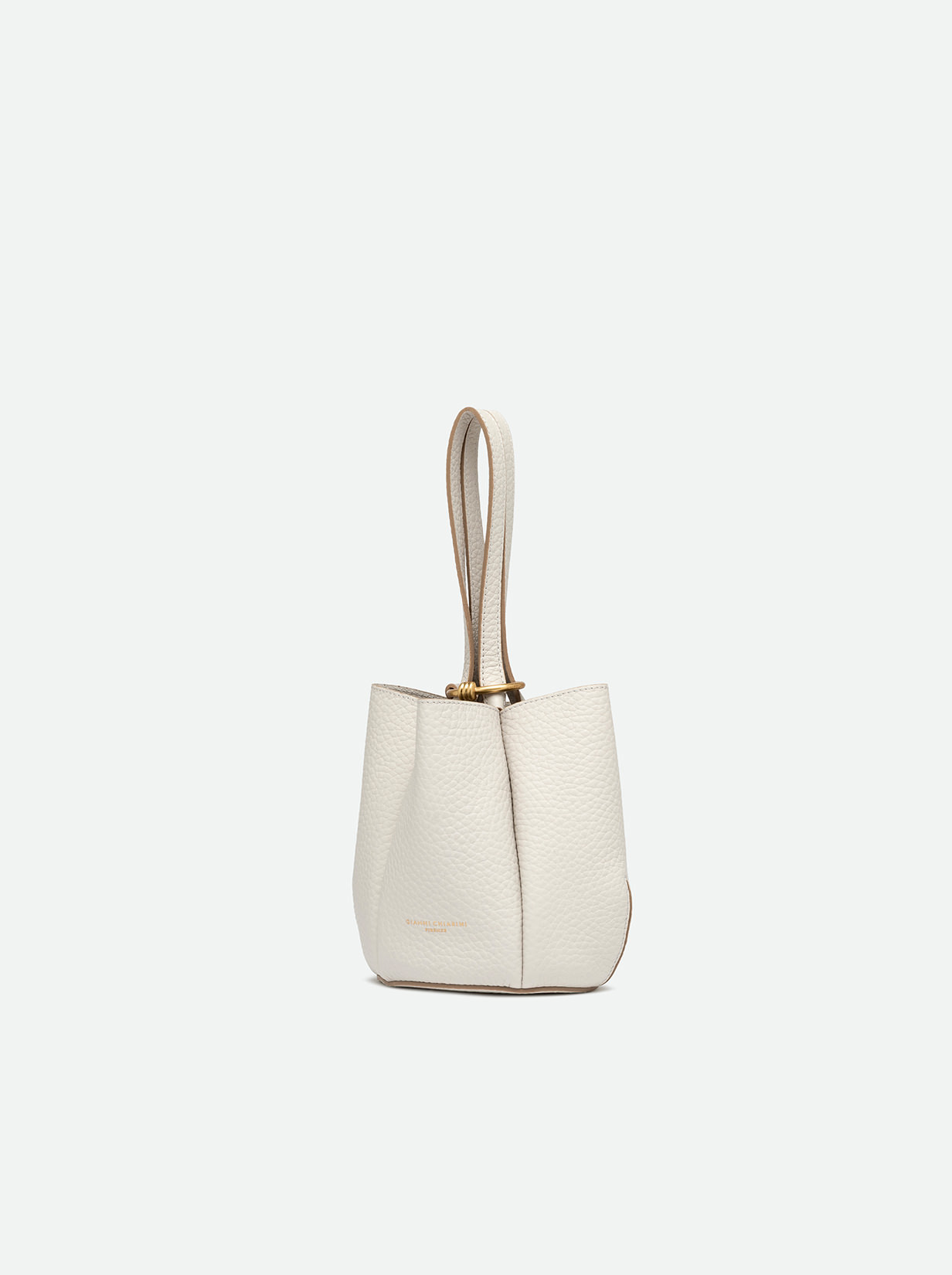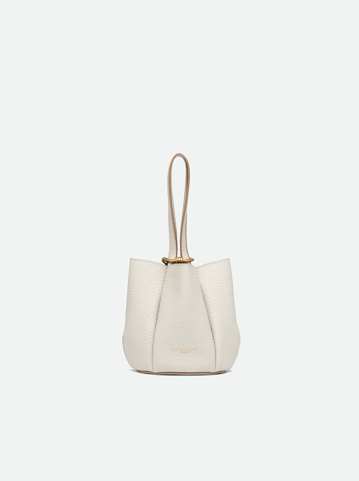 Lily is the new bag by Gianni Chiarini Firenze, made of bubble double leather and defined by a unique and sophisticated flower-shaped silhouette. Equipped with two leather handles, accented with the iconic metal knot that adds a contemporary touch. The closure works by inserting the handles into a metal ring embellished with the same knot, a trendy decorative charm. Size: 15x18x11 cm.
