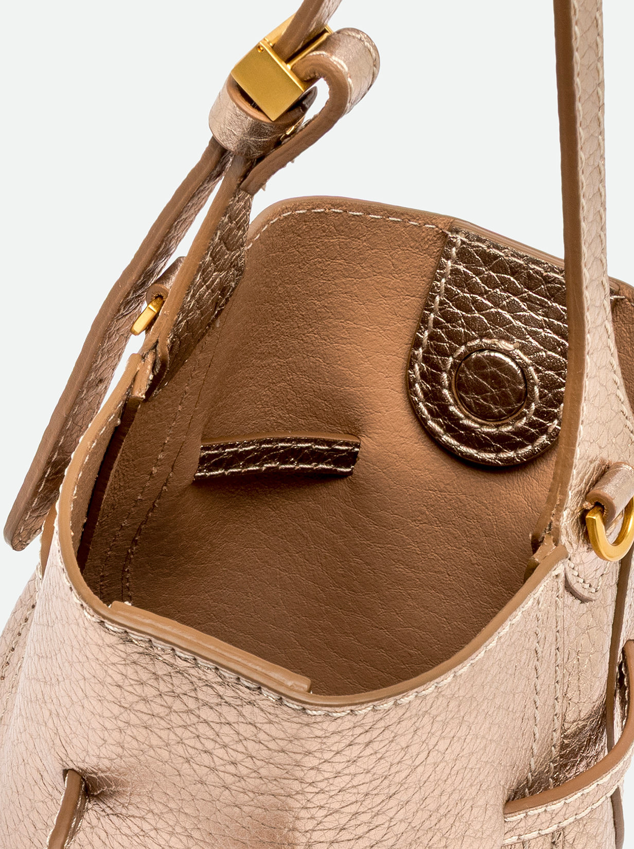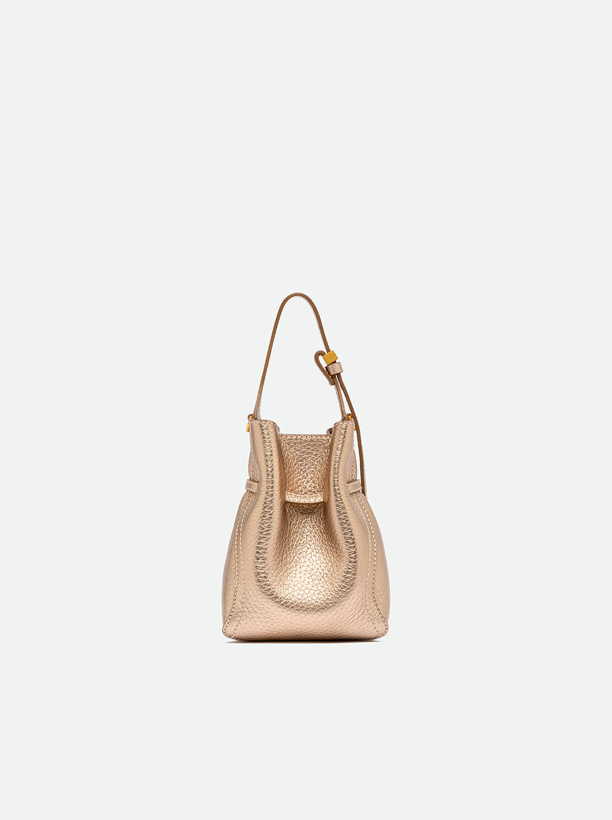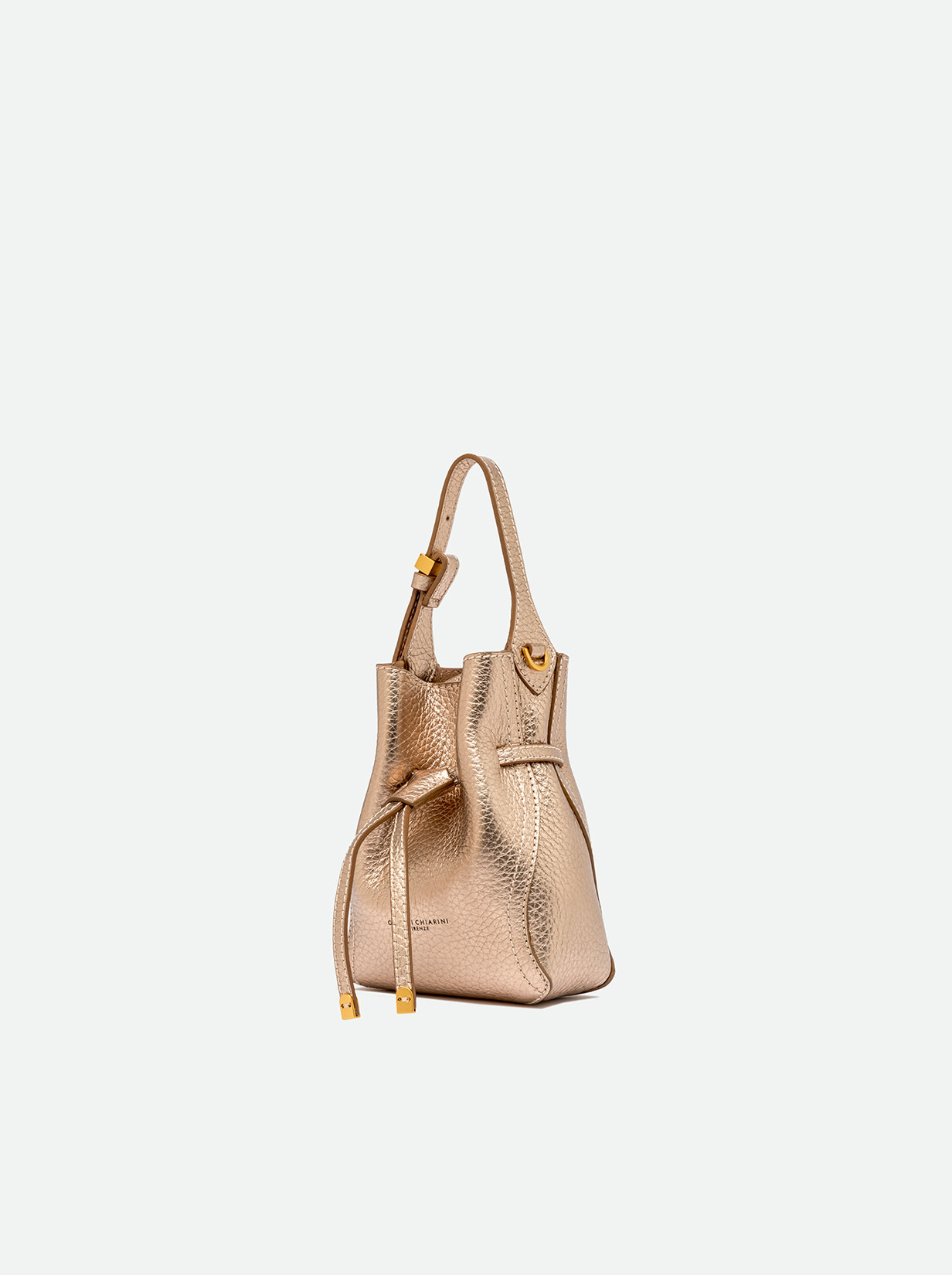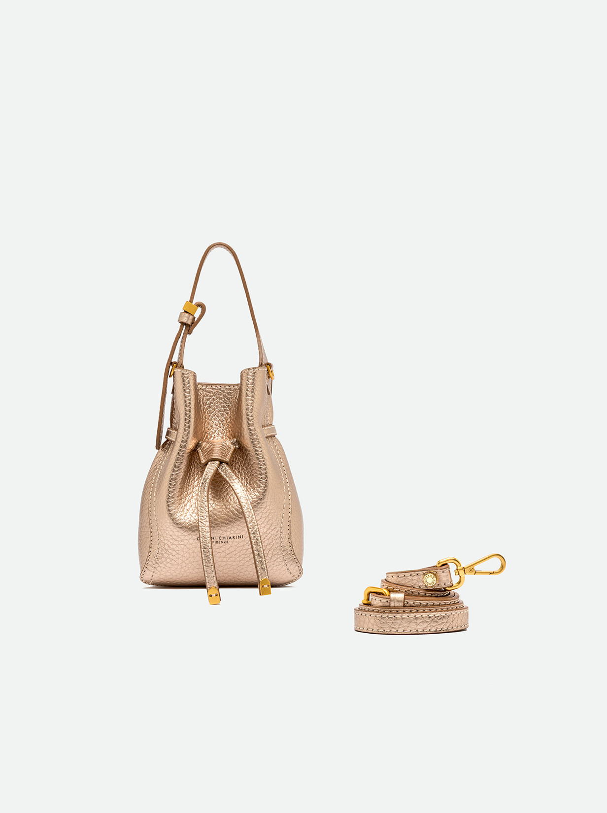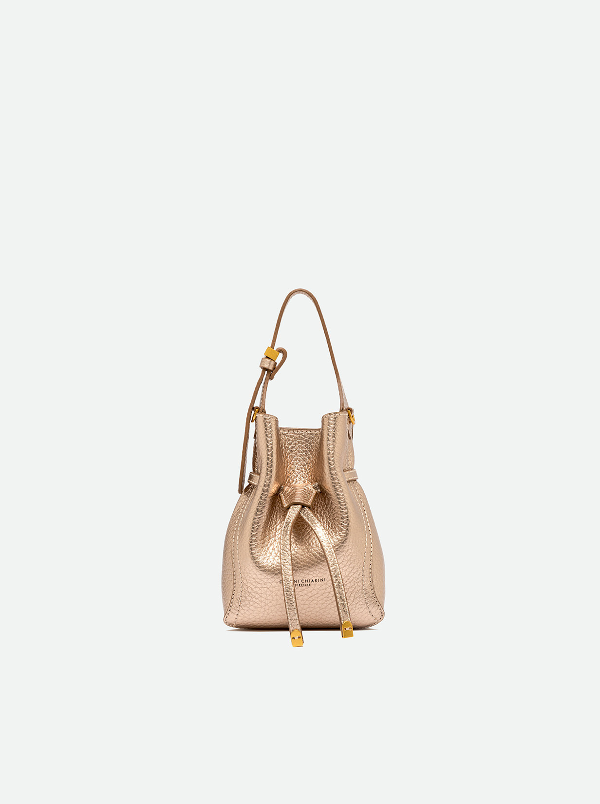 Sienna is the new line by Gianni Chiarini Firenze, defined by its soft yet feminine shape, perfect for a casual-chic look. Crafted from double leather, it features contrast topstitching that highlights its silhouette. Equipped with a single compartment and magnetic clasp closure, it's enhanced with iconic metallic details like the double-loop logoed charm and metallic tips. Wear it by hand or on the shoulder with the included adjustable strap. Size: 15x20x8 cm.