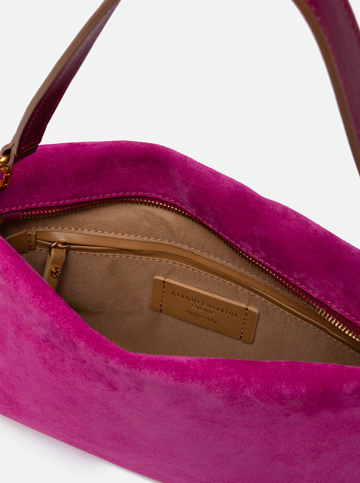 A Gianni Chiarini Firenze bestseller, the Brenda clutch is crafted from suede and features a removable leather wrist strap. Inside, it includes a practical flat pocket. With an adjustable, detachable leather shoulder strap, it can also be worn cross-body, effortlessly combining refinement and functionality for every occasion. Size: 32x22x2 cm.