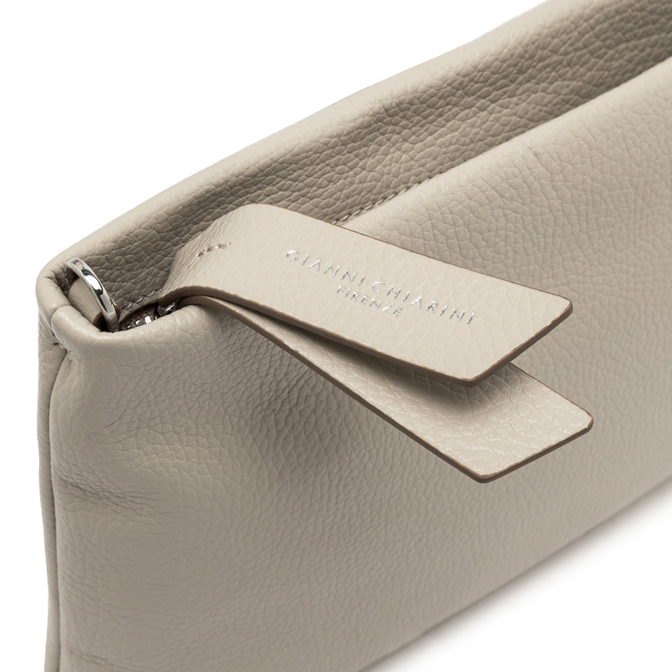 Brenda, one of Gianni Chiarini Firenze's bestsellers, is a clutch bag in hammered leather enriched by a detachable chain strap in resin. Interior flat pocket. Wearable cross-body thanks to the adjustable and detachable shoulder strap in leather. Size: 32x22x3 cm.