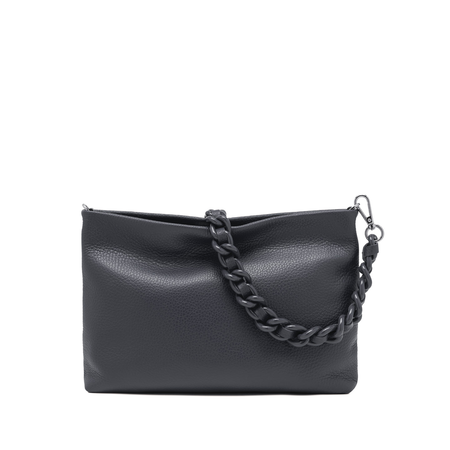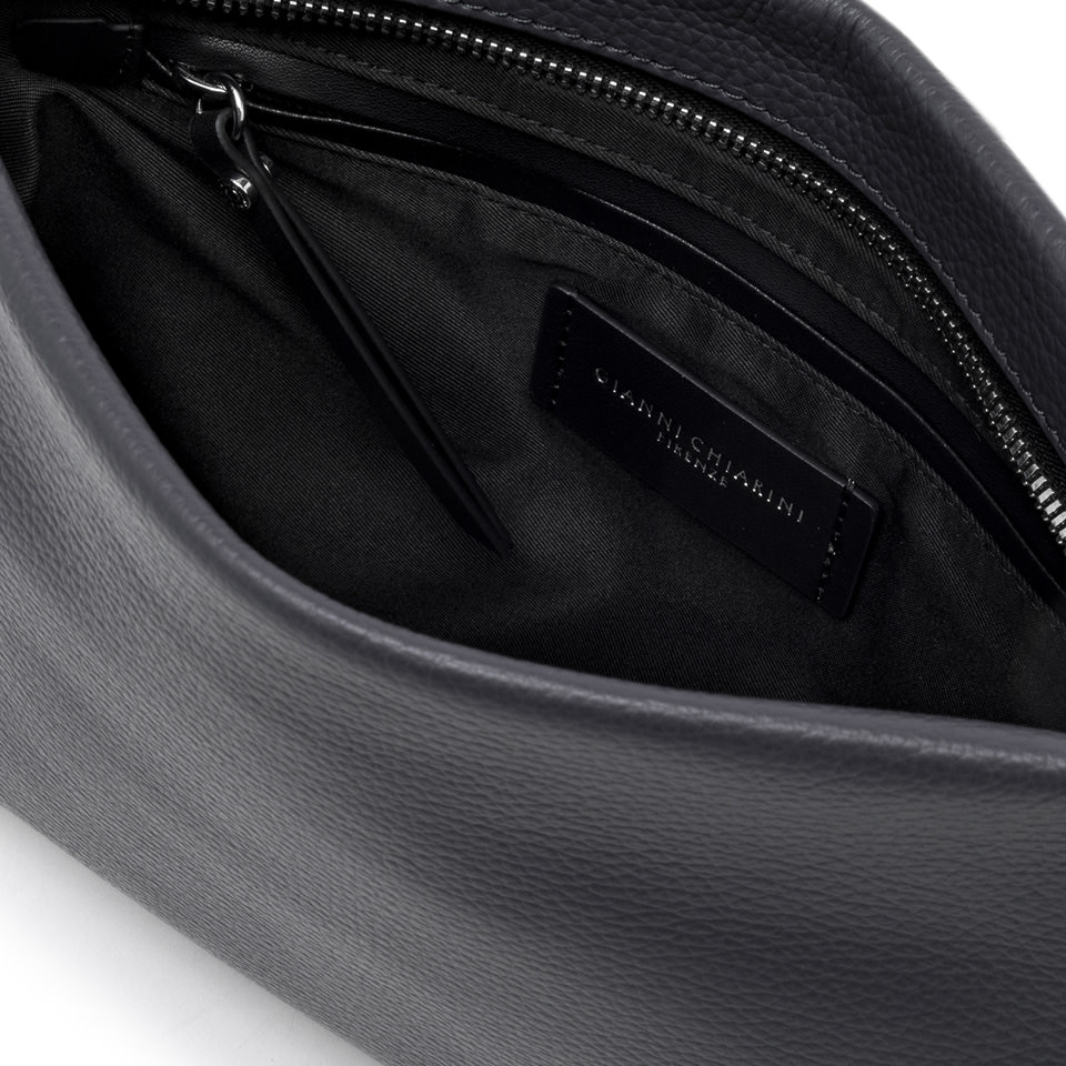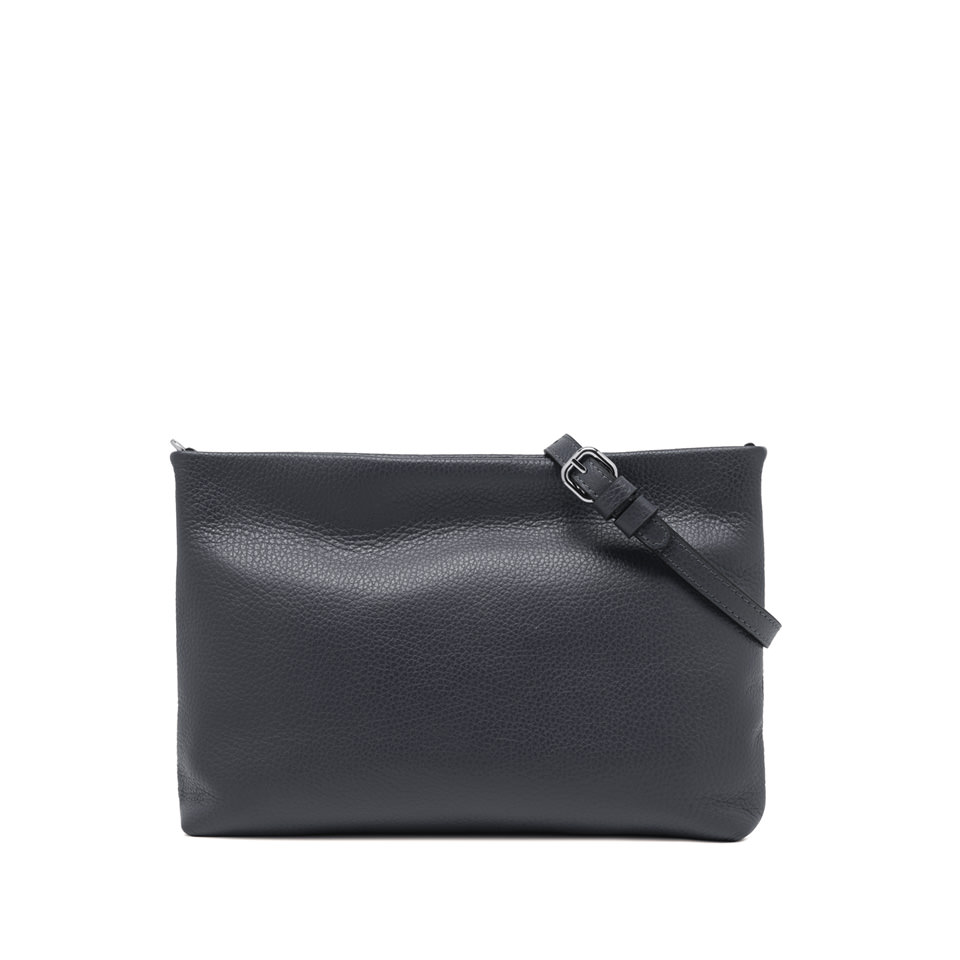 Brenda is the iconic clutch by Gianni Chiarini Firenze, crafted from hammered leather. The maxi strap allows it to be worn on the wrist, while the interior features a flat pocket. The woven fabric strap, adjustable and removable, makes it easy to carry cross-body, combining practicality with sophistication. Size: 32x22x2 cm.