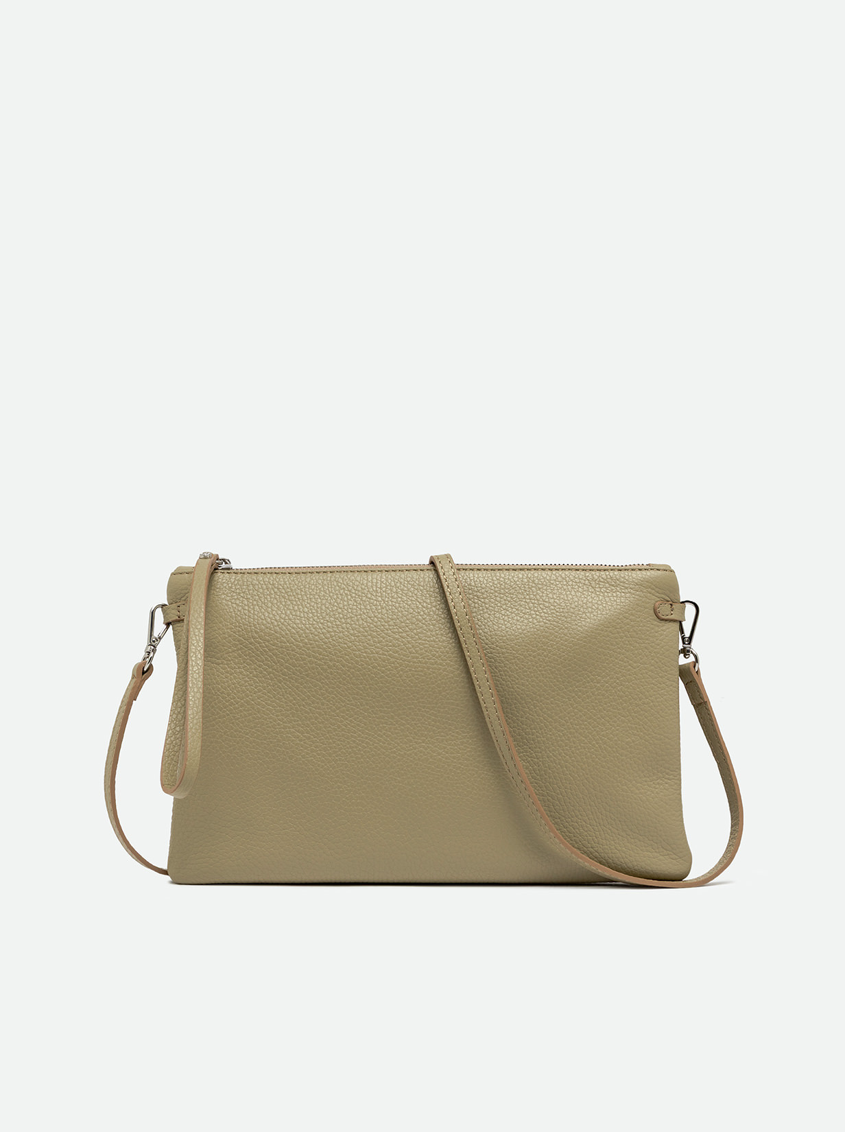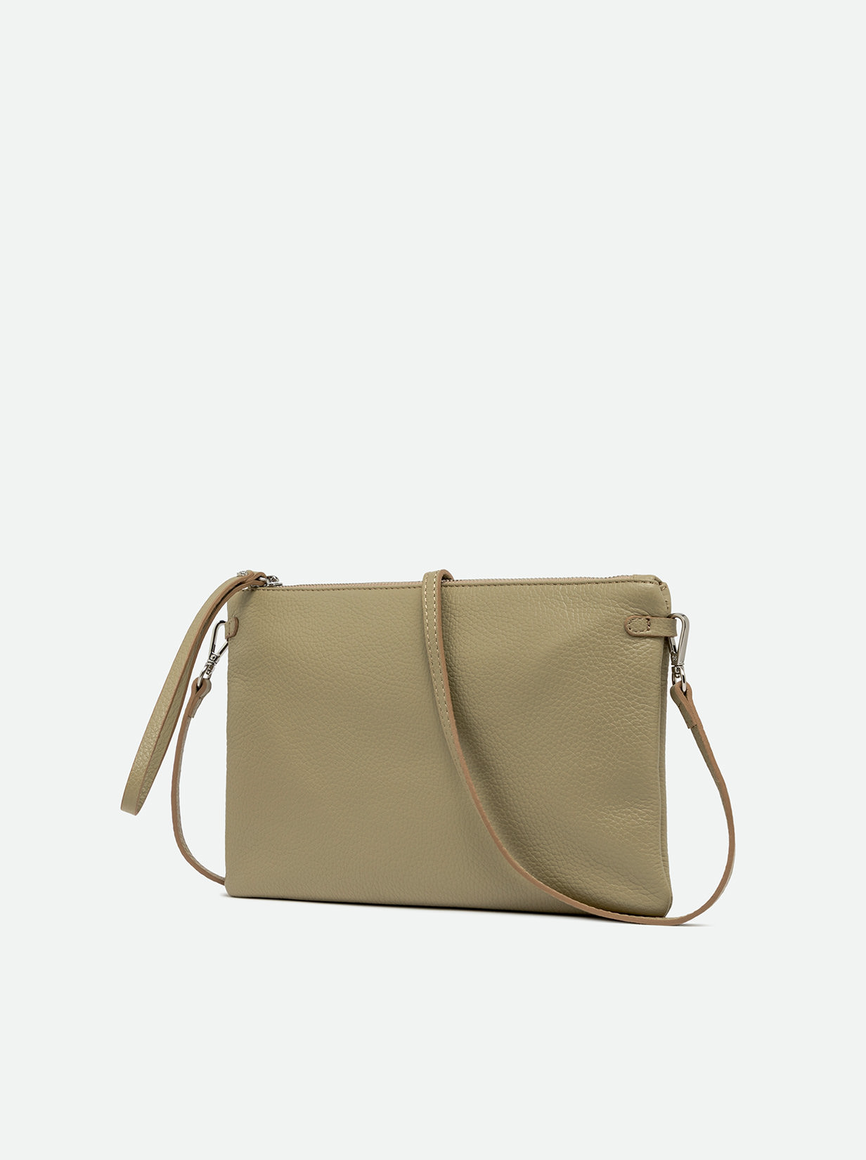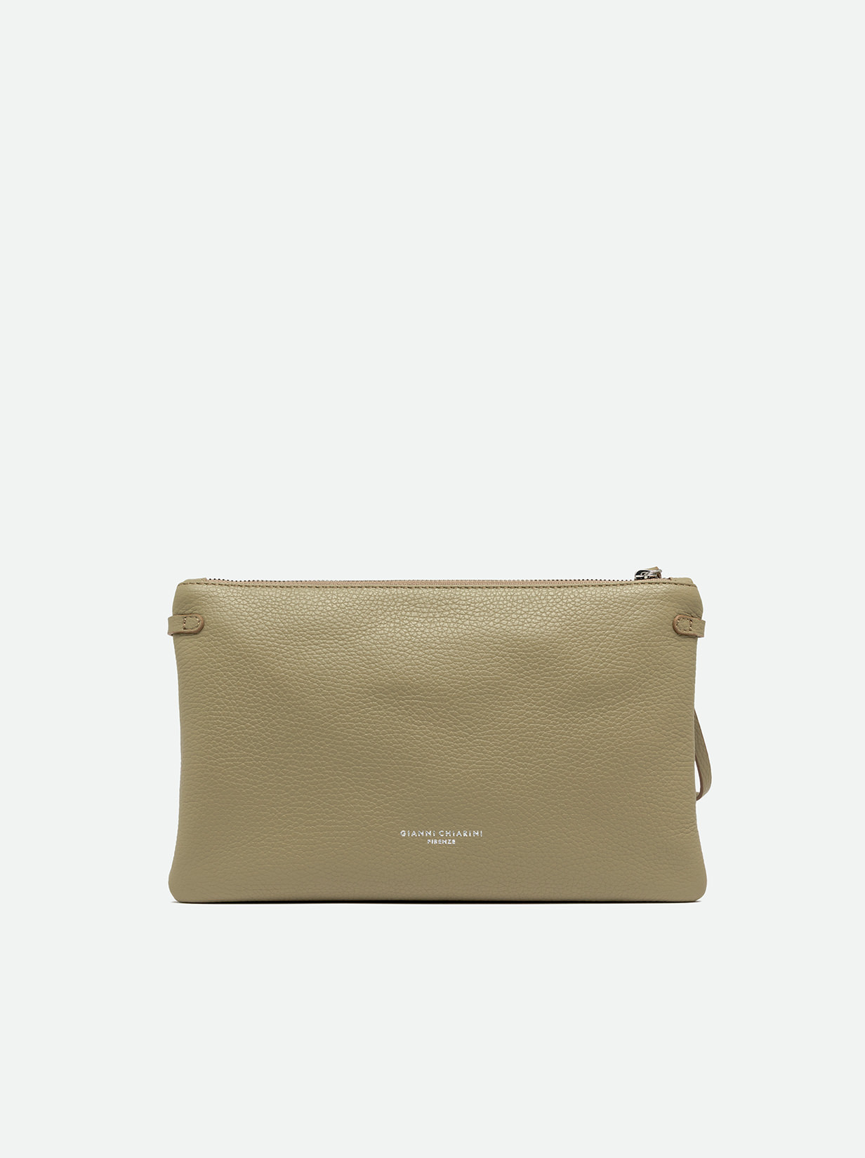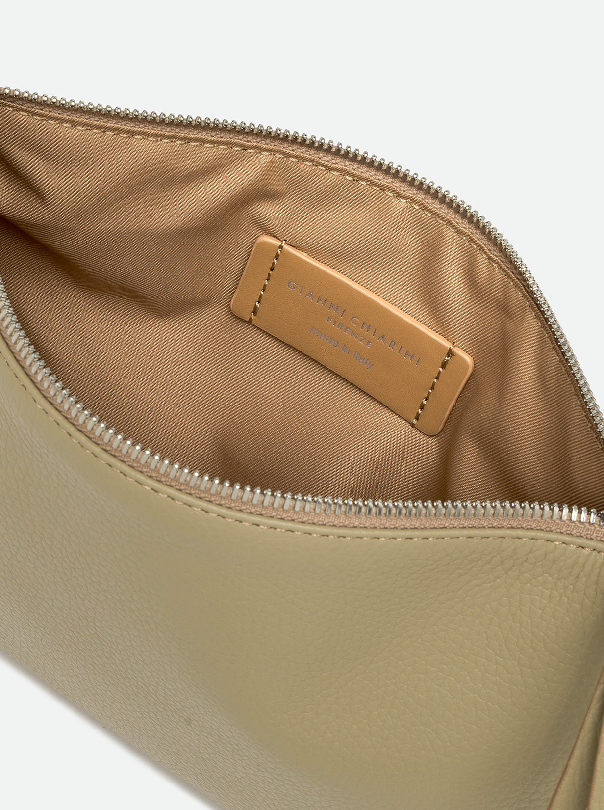 Wearable as a handbag or at the wrist, Hermy Gianni Chiarini Firenze clutch comes in premium quality hammered leather. Young and playful, enriched with a contrast zip and a thin detachable cross-body strap. Perfect with casual outfits but also perfect to beautify a total black look on an elegant night out. Size: 28x18x2 cm.