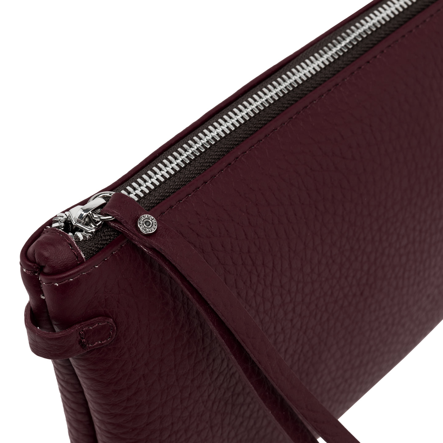 Wearable as a hand bag or at the wrist, Hermy Gianni Chiarini Firenze clutch comes in maxi-grain double leather. Young and playful, enriched with a contrast zip and a thin detachable cross-body strap. Perfect with casual outfits but also perfect to beautify a total black look on an elegant night out. Size: 28x18x2 cm.