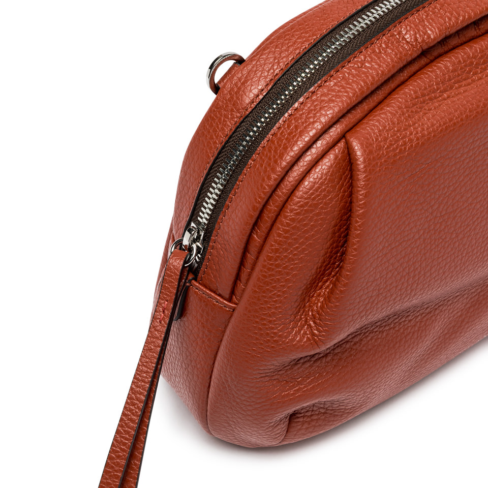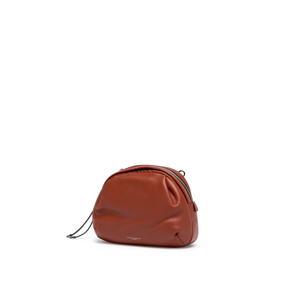 Emanuela bag in soft laminated leather is ideal for everyday use. With a simple and casual look, it can be worn cross-body or it can be transformed into a practical clutch, for hand use. Perfect for those looking for a compact and functional accessory. Size: 27x18x10 cm.
