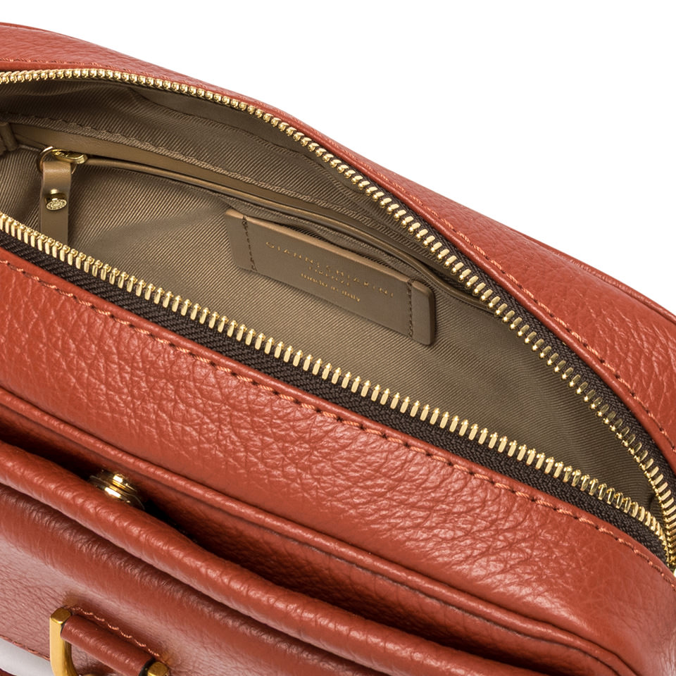 The new Marisol bag from the Gianni Chiarini Firenze collection is crafted from maxi grain leather. Elegant and contemporary, it is designed for a woman who is in tune with the times and stands out for its geometric shape. Equipped with a top handle, it features a main compartment with zip and self-locking closure. Shoulder strap to wear the bag also cross-body. Size: 28x17x8 cm.