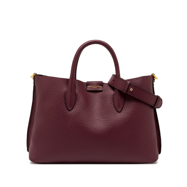 The Aretha bag by Gianni Chiarini Firenze is made of maxi grain double leather and stands out with its minimalist design and clean lines. Inside, a practical zippered compartment ensures security, while the removable leather top handle with snap hooks offers versatility and comfort. Size: 24x22x10 cm