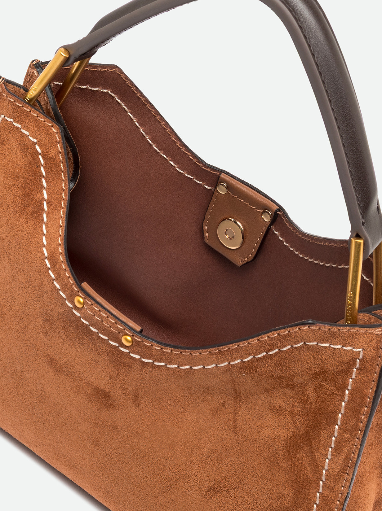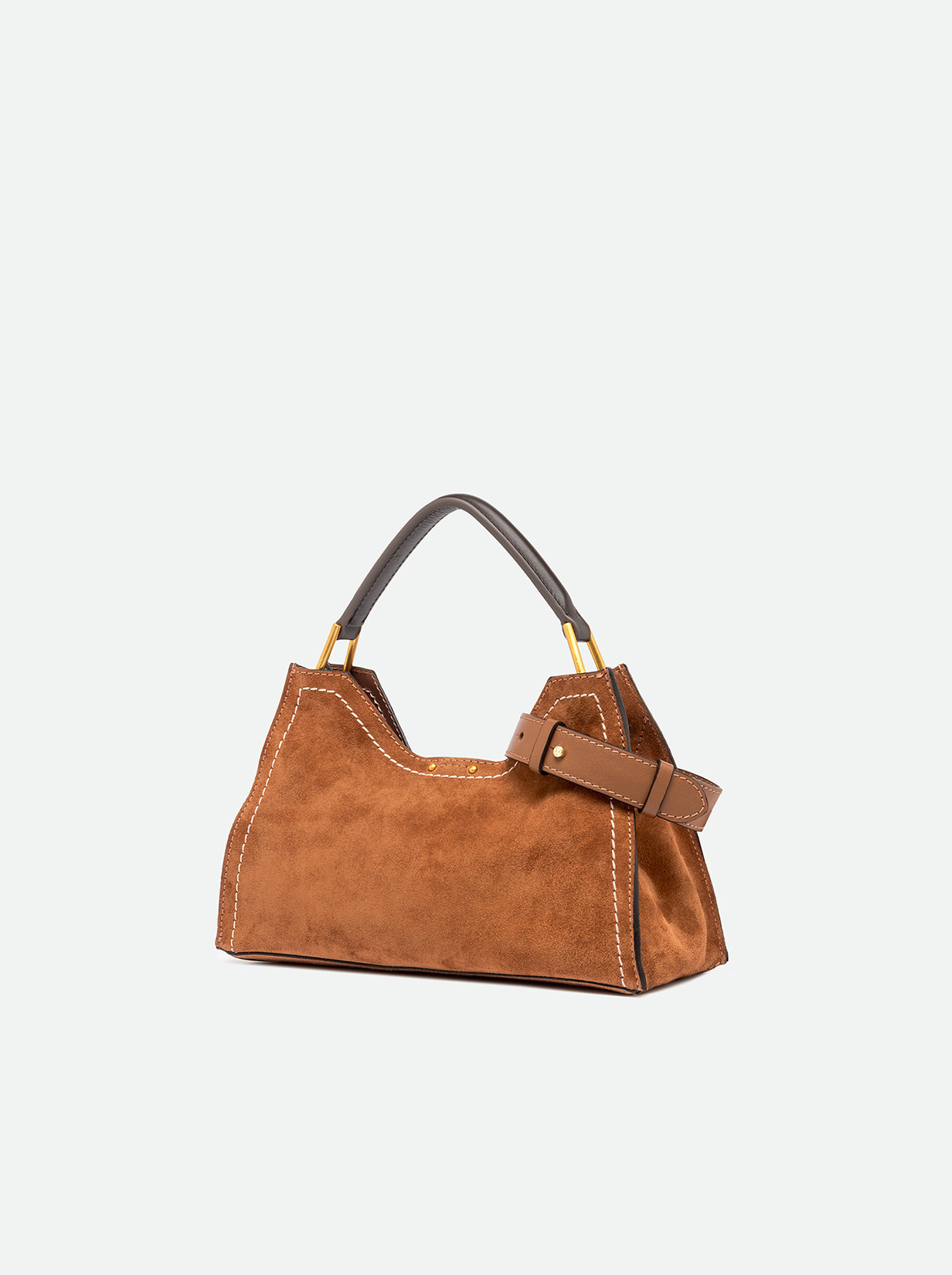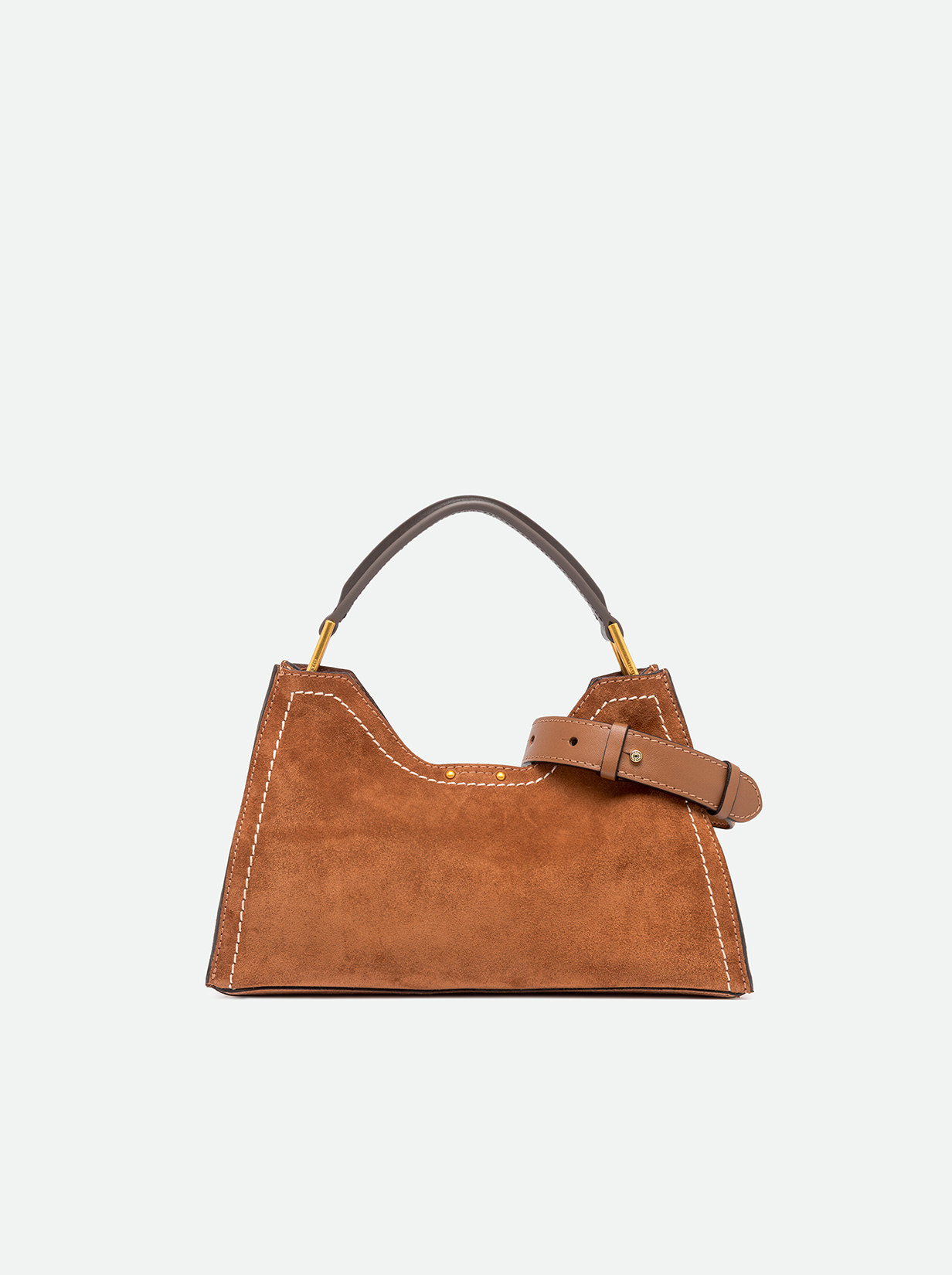 Aurora by Gianni Chiarini Firenze stands out with its trapeze shape, a perfect blend of contemporary elegance. Made from soft suede, it's enriched with metal accents and contrast stitching that highlight its design. It includes a removable and adjustable leather strap for two-way wear. Finished with a practical zip pouch and a magnetic clasp top closure, for added security and convenience. Size: 32x22x11 cm.