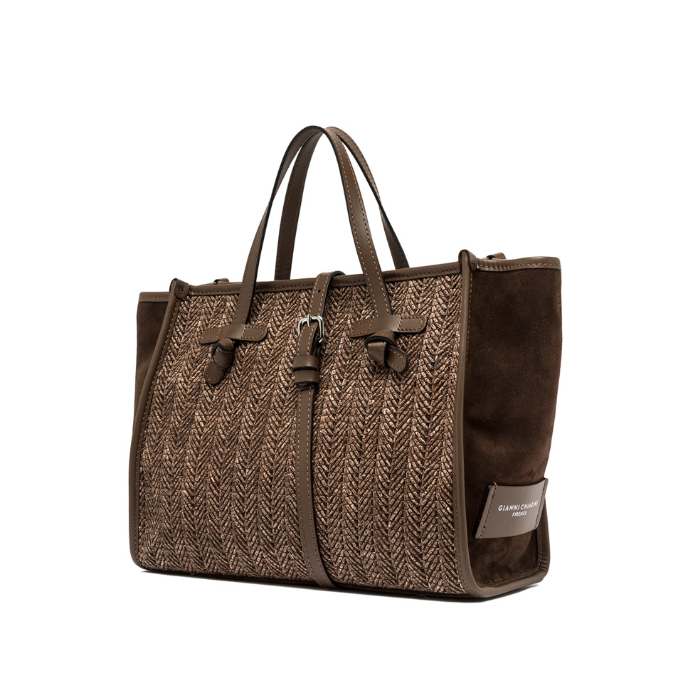 Miss Marcella 32 by Gianni Chiarini Firenze is a bag that combines elegance and practicality, perfect for those seeking a casual yet refined style. Made of raffia with suede finishes, this bag features leather handles and an adjustable, removable strap. Versatile and functional, it’s the ideal accessory to complete any look with a touch of class. Size: 33x25x13 cm.