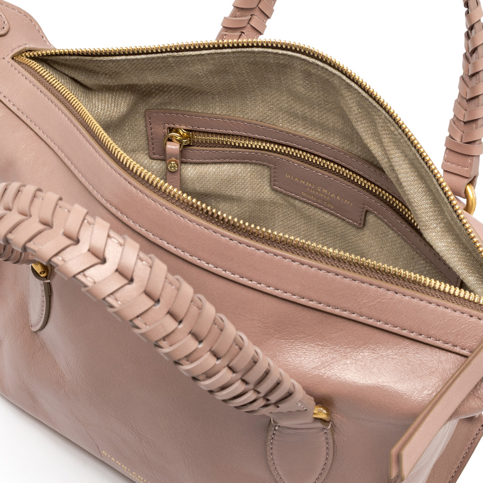 Roxy is the new bowling bag by Gianni Chiarini Firenze, designed with a clean, structured silhouette, ideal for the confident, on-the-go woman. Crafted from waxed crinkle-effect leather, it features leather handles and a secure zip-top closure. Perfect for everyday use, it also includes a service strap for multiple carrying options. Size: 27.5x16x14 cm.
