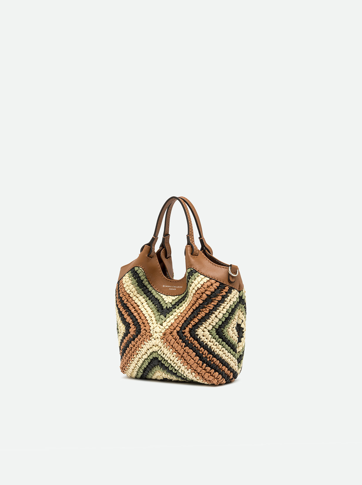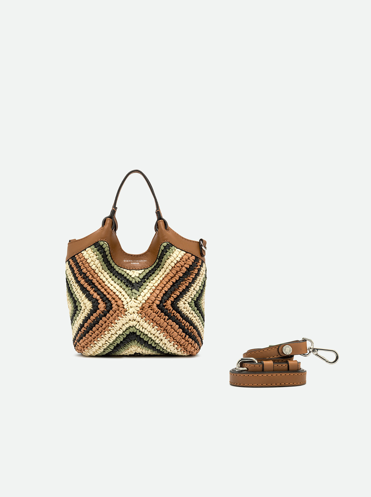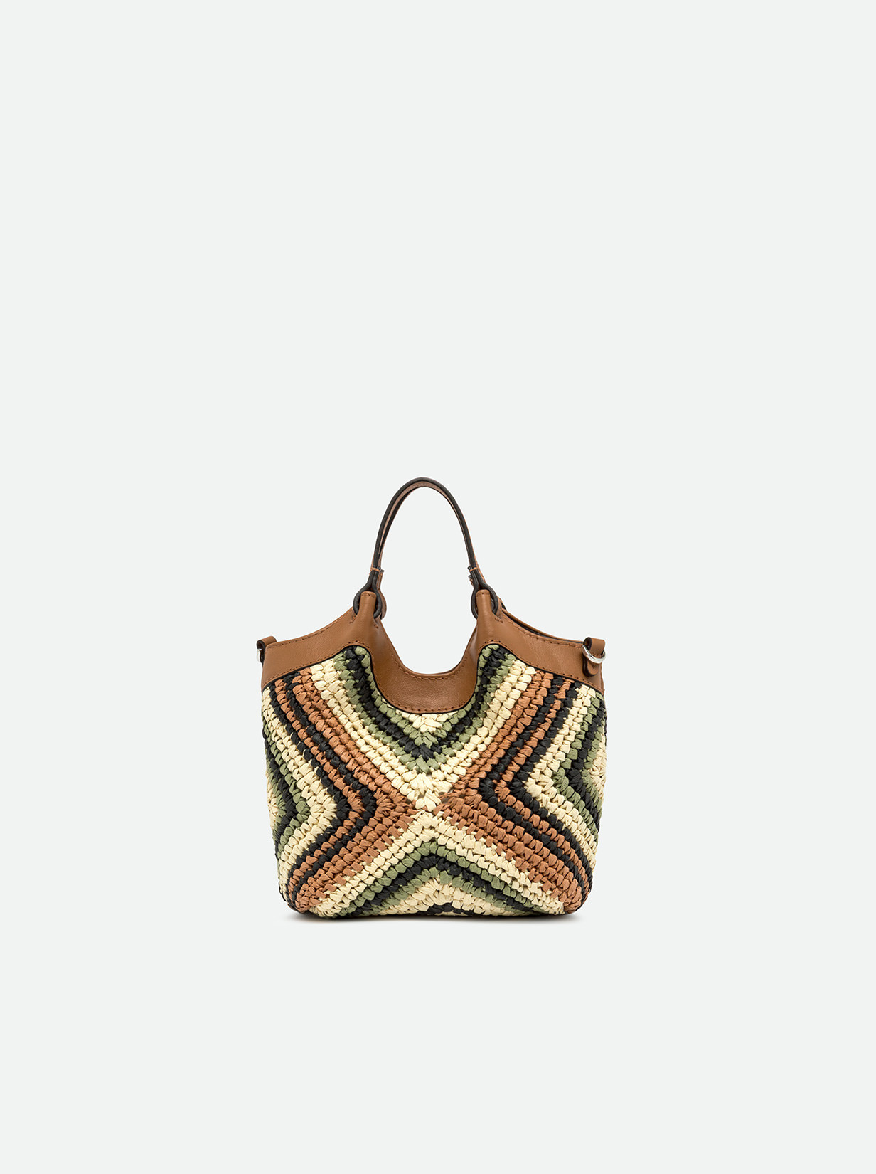 The brand icon DUA stands out for its simple yet contemporary design. Made of woven straw, this mini-bag features single compartment and is extremely practical. It can be worn as a handbag or cross-body thanks to the strap it comes with. Size: 19x20x8 cm.