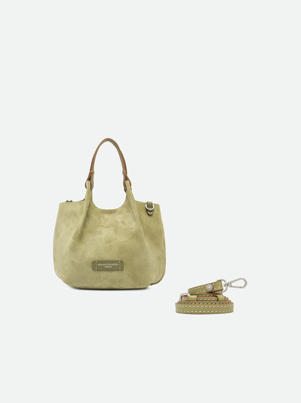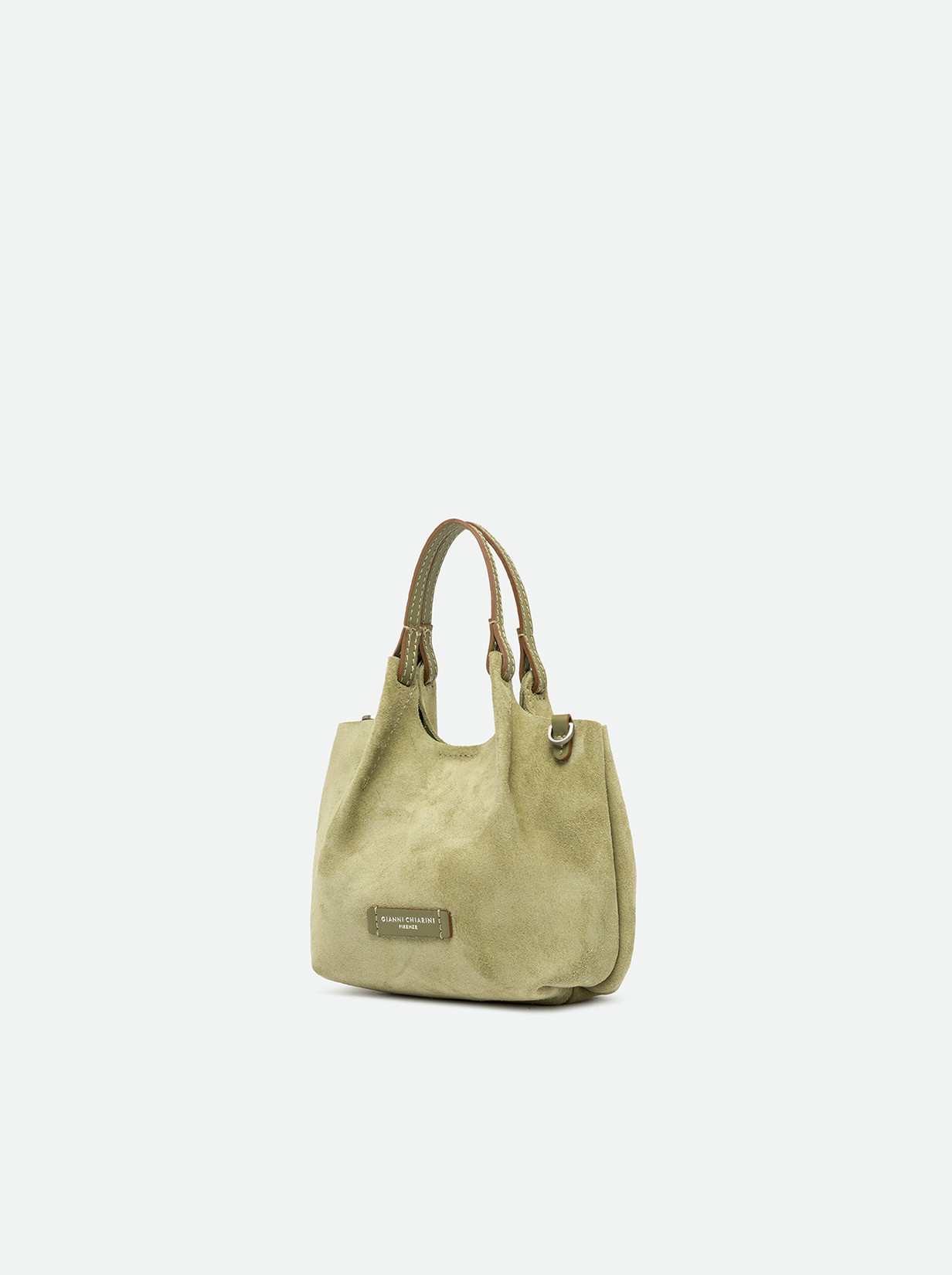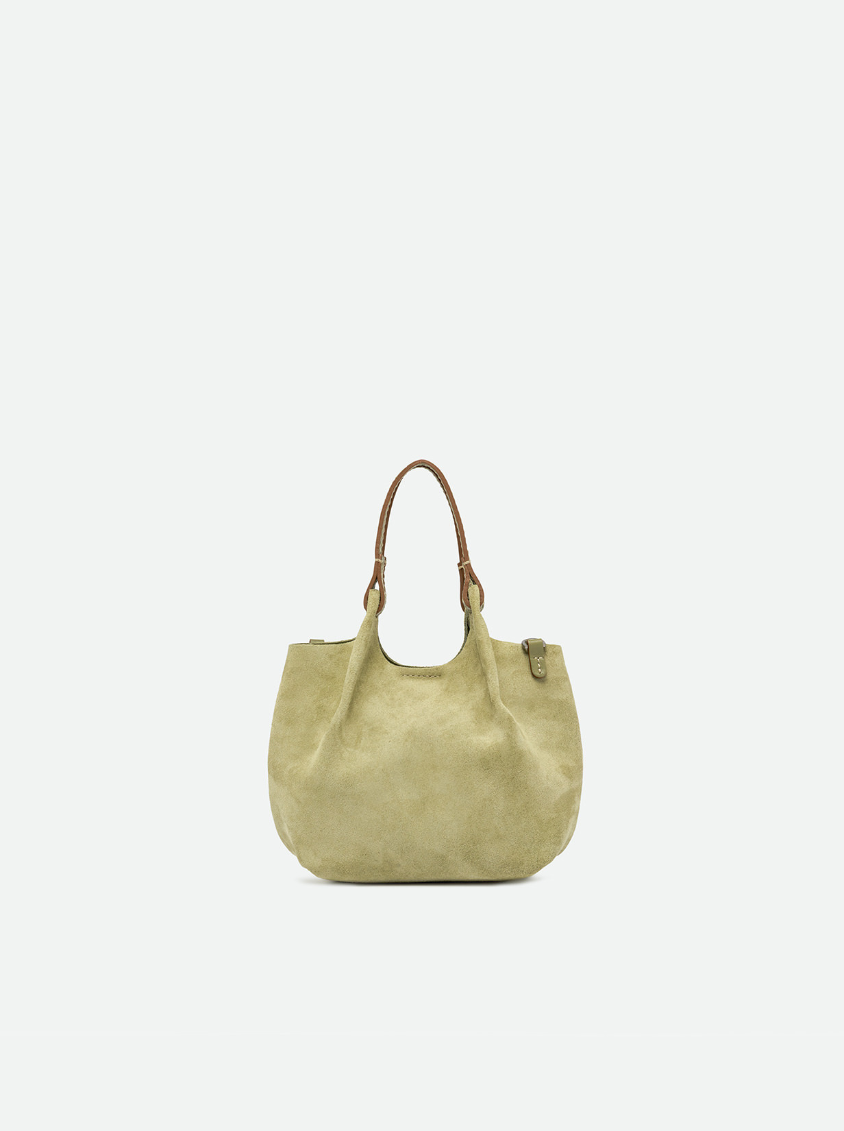 The iconic Dua bag, crafted from suede, stands out for its unique texture. It features an unlined single compartment, top profiles in leather and color matching double handles. Practical and essential, it is perfect to stylishly enhance any look. It can be carried as a handbag at the shoulder. Size: 19x20x8 cm.