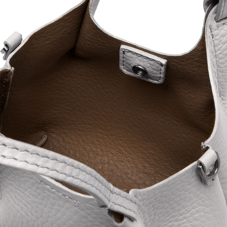The brand icon DUA stands out for its simple yet contemporary design. Made of double maxi-grain leather, this mini-bag features an unlined single compartment and is extremely practical. It can be worn as a handbag or cross-body thanks to the strap it comes with. Size: 19x20x8 cm.