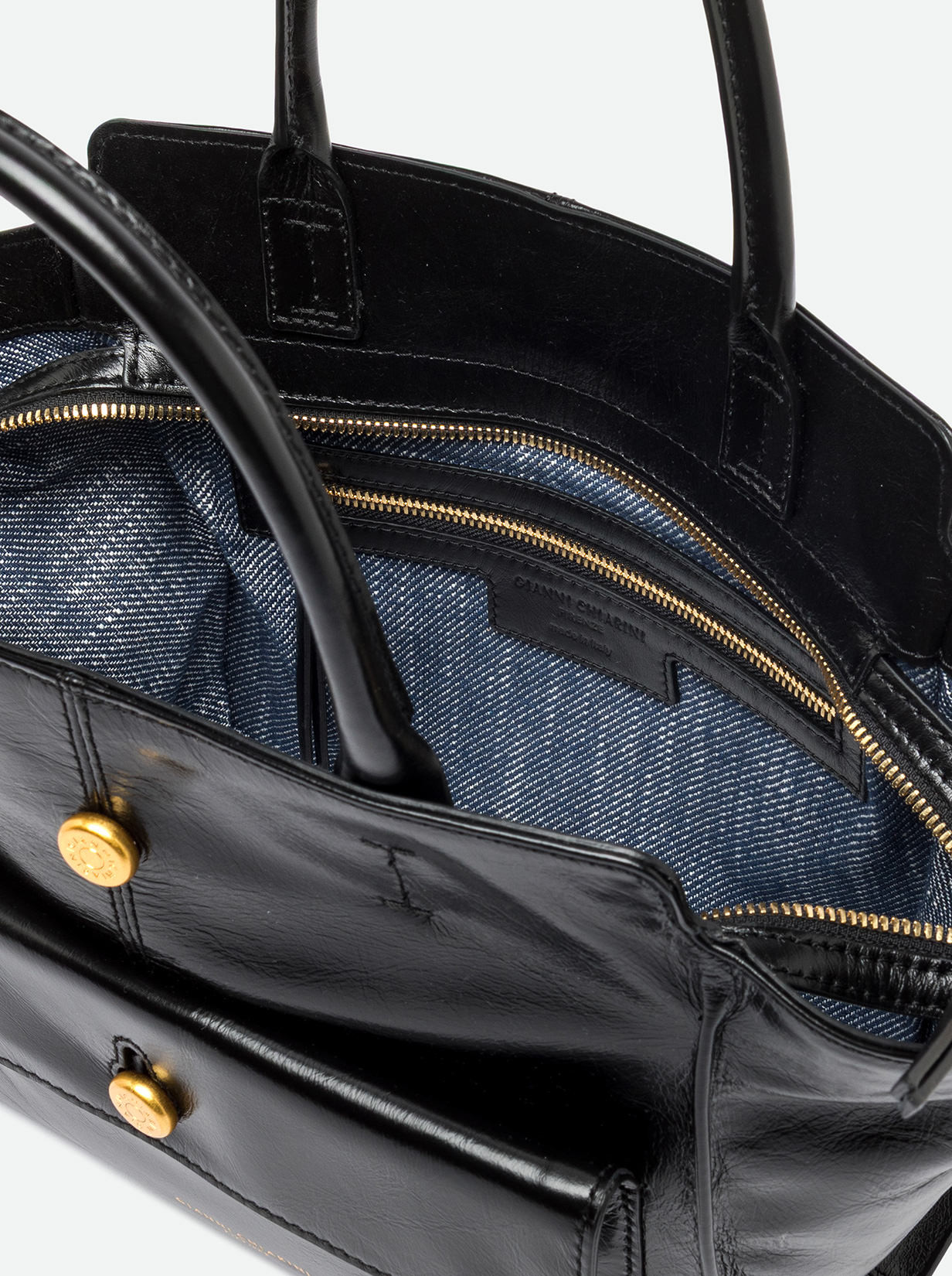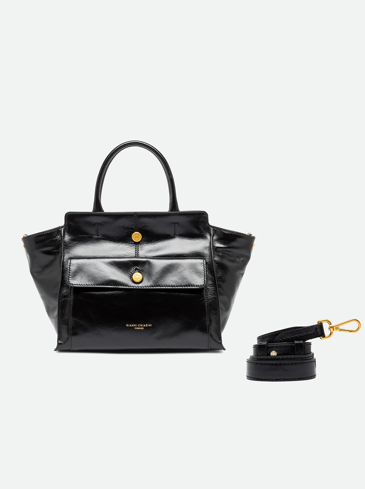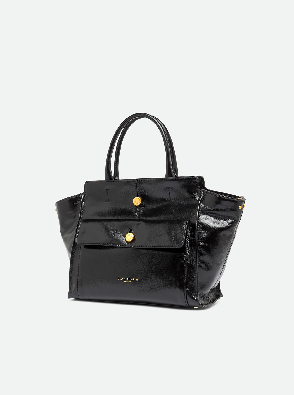 Cher by Gianni Chiarini Firenze is modern and versatile, perfect for bold, on-the-go women thanks to its roomy design and functionality. Crafted from waxed leather and enhanced with metallic details for a bold touch. It features two leather handles for hand carry and an adjustable, removable strap for cross-body wear. Size: 29x24x13 cm.