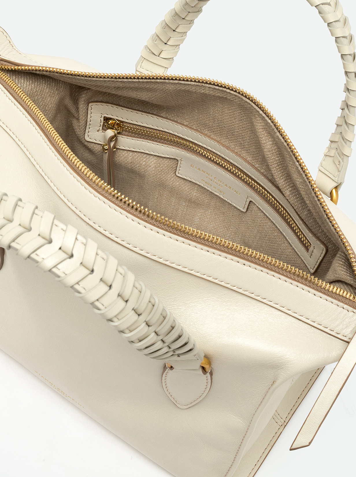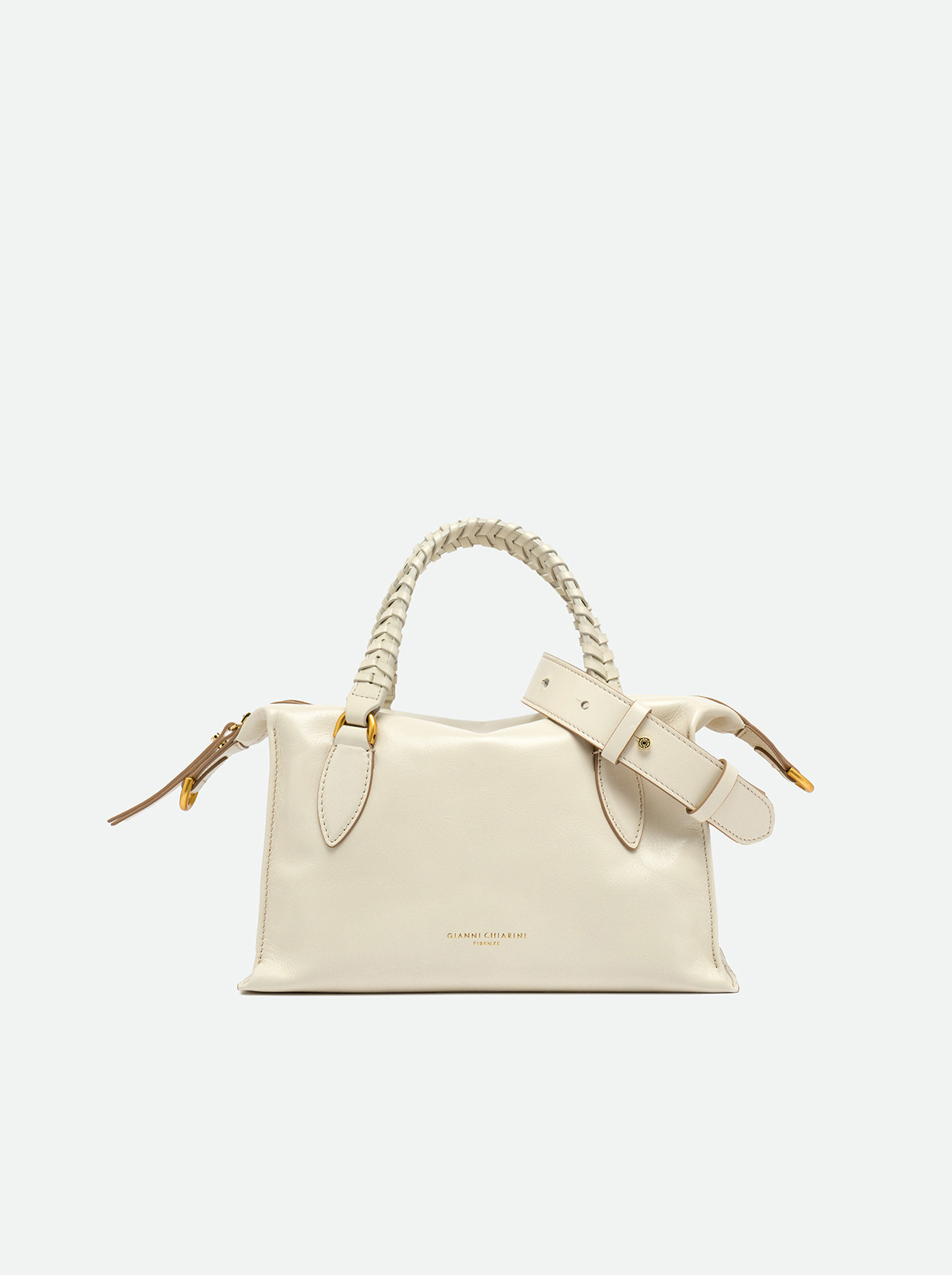 Roxy is the new bowling bag by Gianni Chiarini Firenze, designed with a clean, structured silhouette, ideal for the confident, on-the-go woman. Crafted from waxed crinkle-effect leather, it features leather handles and a secure zip-top closure. Perfect for everyday use, it also includes a service strap for multiple carrying options. Size: 27.5x16x14 cm.