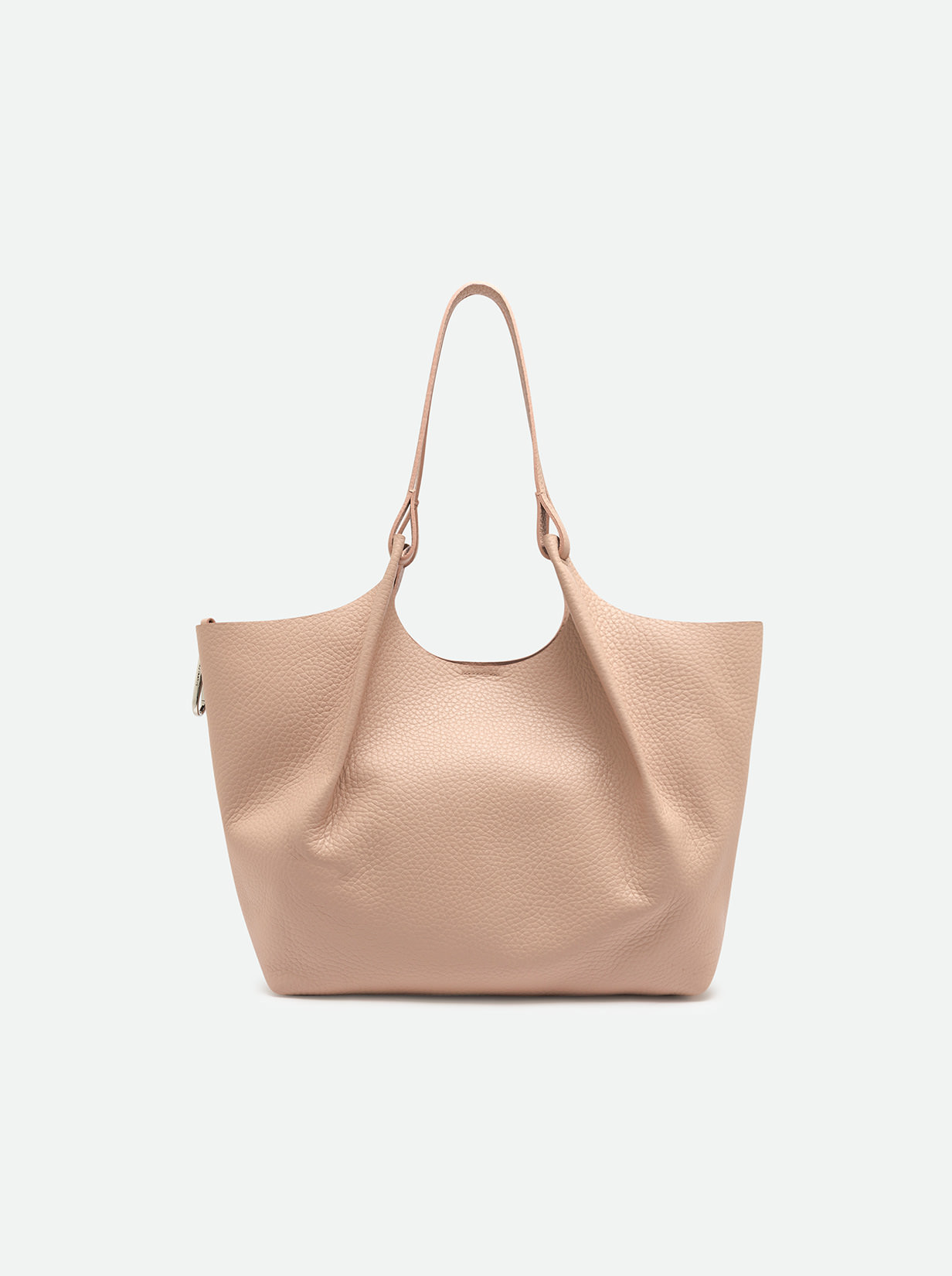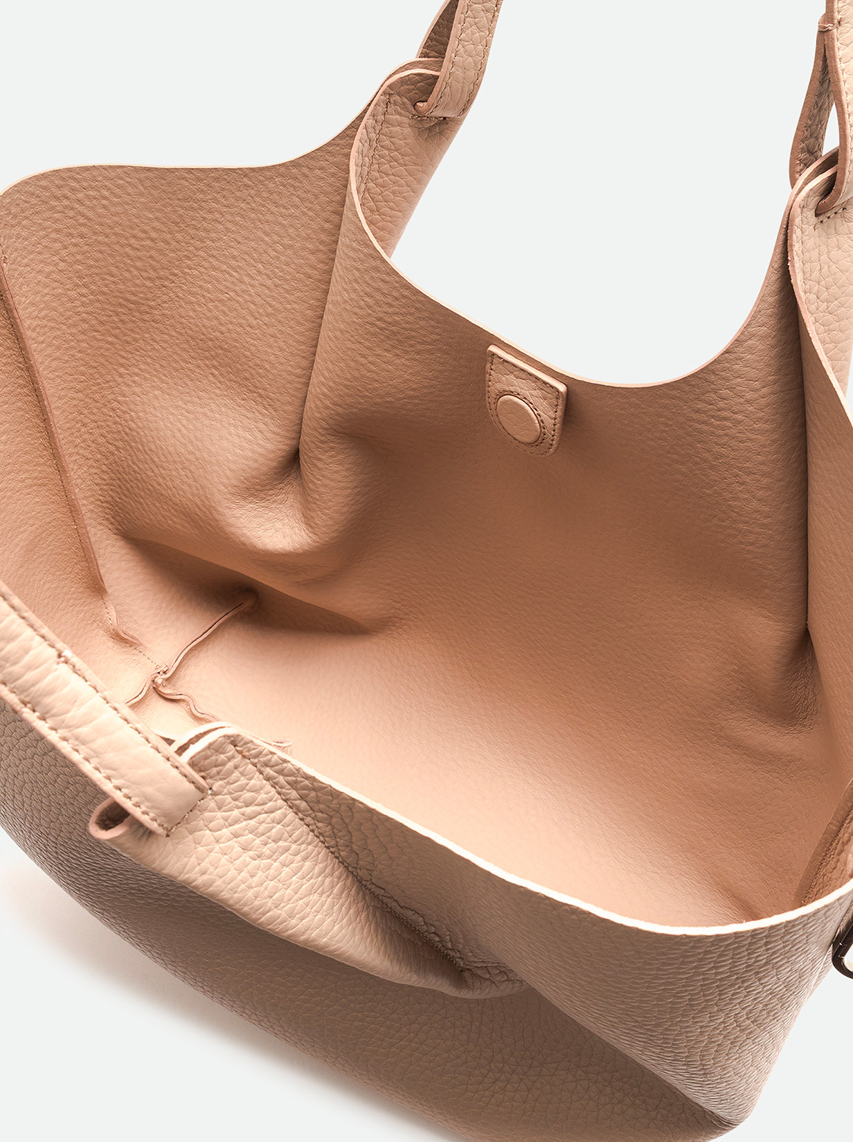 The iconic Dua bag, crafted from double bubble leather, stands out for its unique texture. It features an unlined single compartment, top profiles in hammered leather and color matching double handles. Practical and essential, it is perfect to stylishly enhance any look. It can be carried as a handbag at the shoulder. Size: 34x38x16 cm.