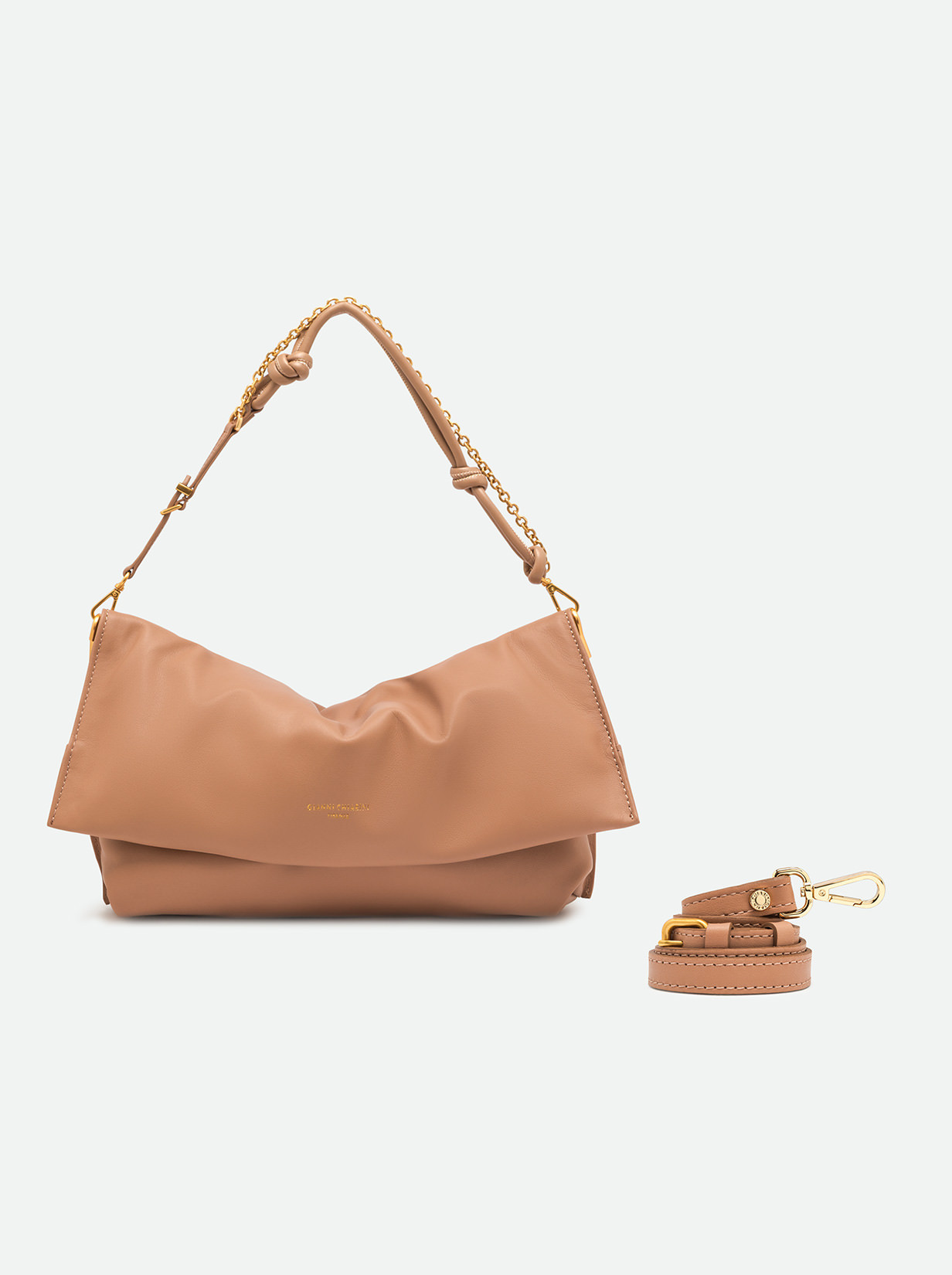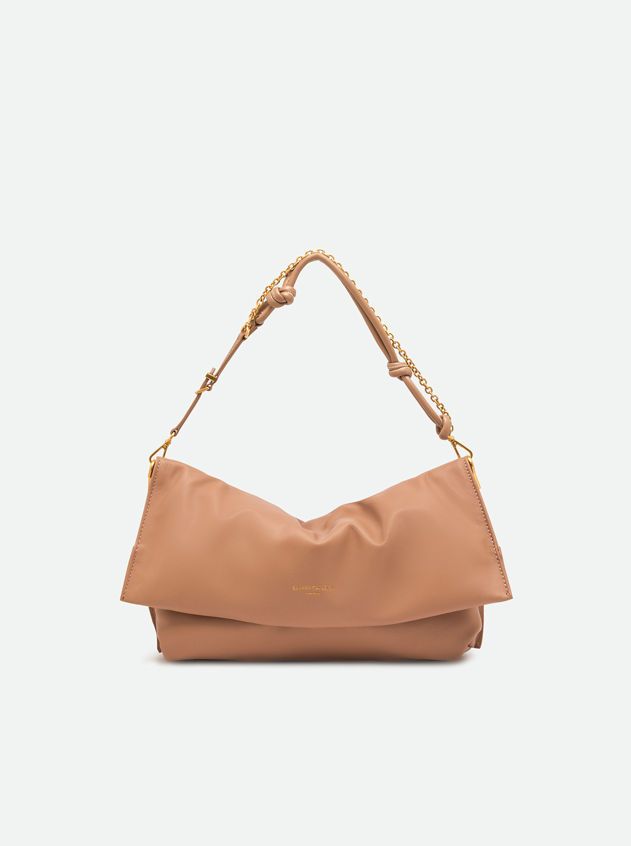 Fanny by Gianni Chiarini Firenze features a sleek, elongated silhouette that's unmistakably feminine and modern, perfect even for evening wear. Crafted from leather, it comes with a top zip closure. Double carrying options let you wear it on the shoulder with its gold-tone chain strap or cross-body with the adjustable leather strap. Knot details and metallic accents add flair and sparkle, making it suitable for any occasion. Size: 29x17x8.5 cm.