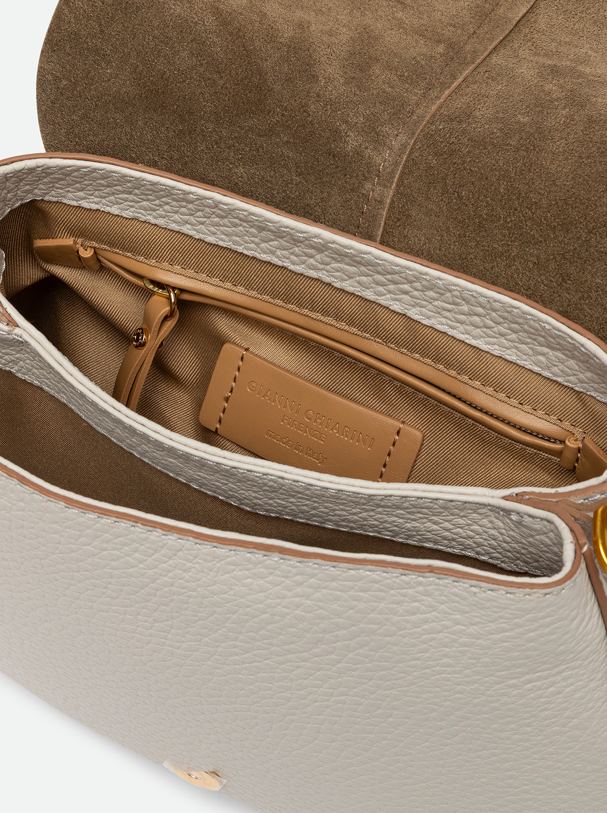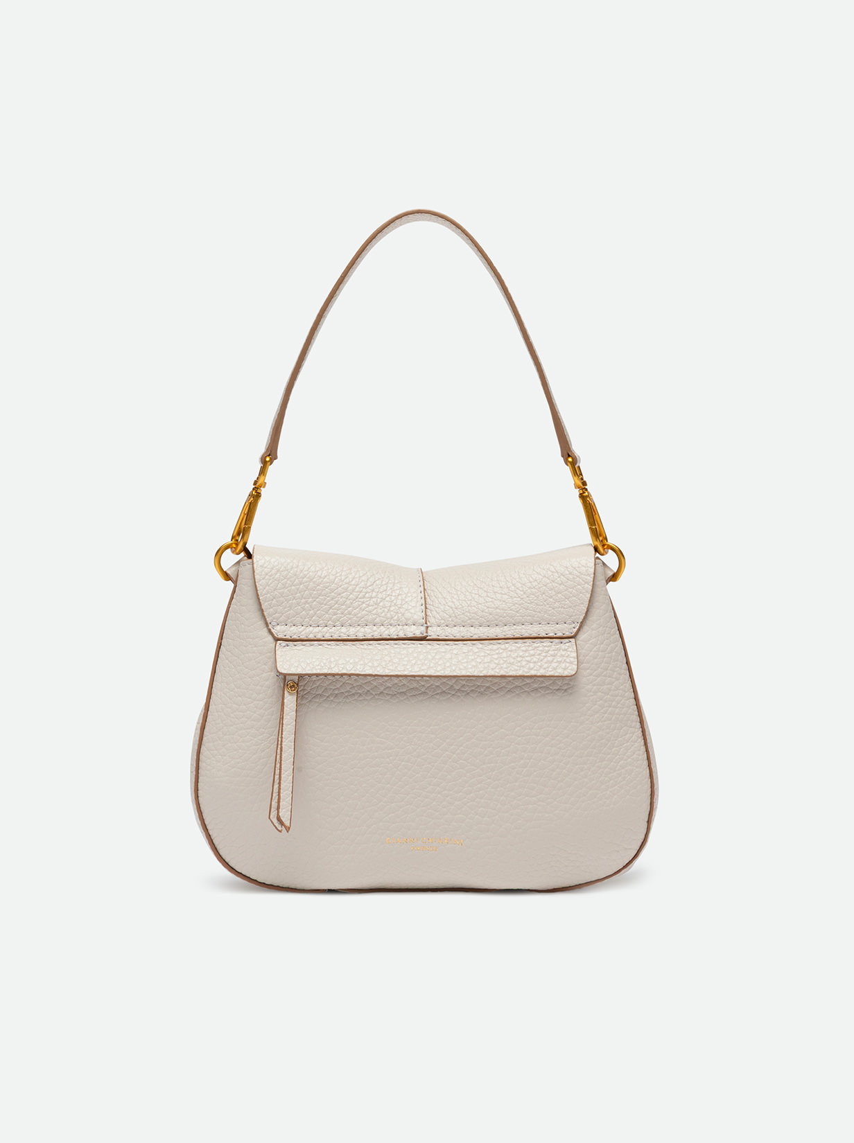 The iconic Helena Round Gianni Chiarini Firenze bag in maxi grain leather boasts a structured design with a contemporary, glam appeal. Thanks to the shoulder straps it is equipped with, it can be worn in two different ways. Practical and organized, it features a double interior compartment and a concealed pocket, also on the back of the bag. Size: 26x21x9 cm.
