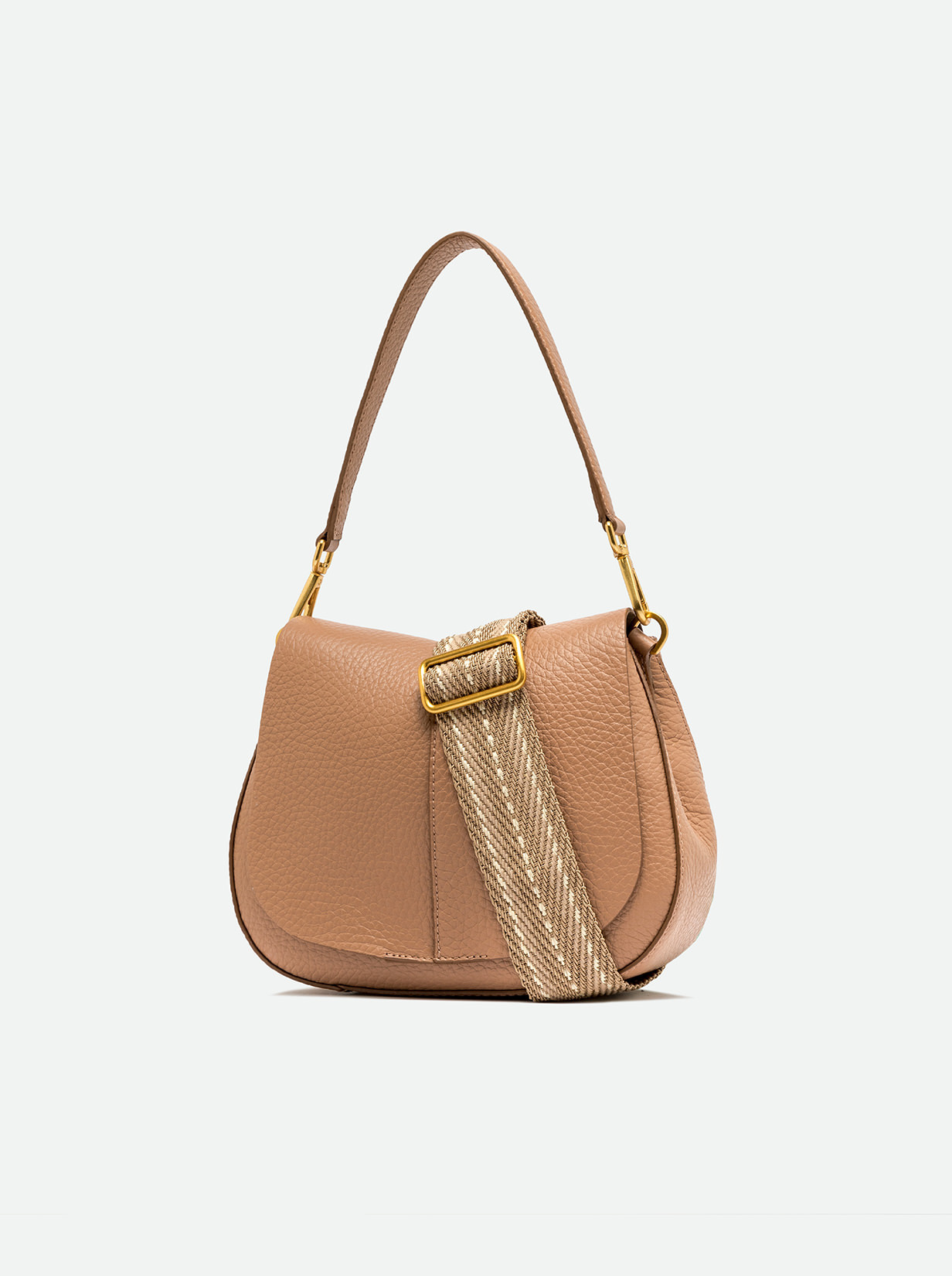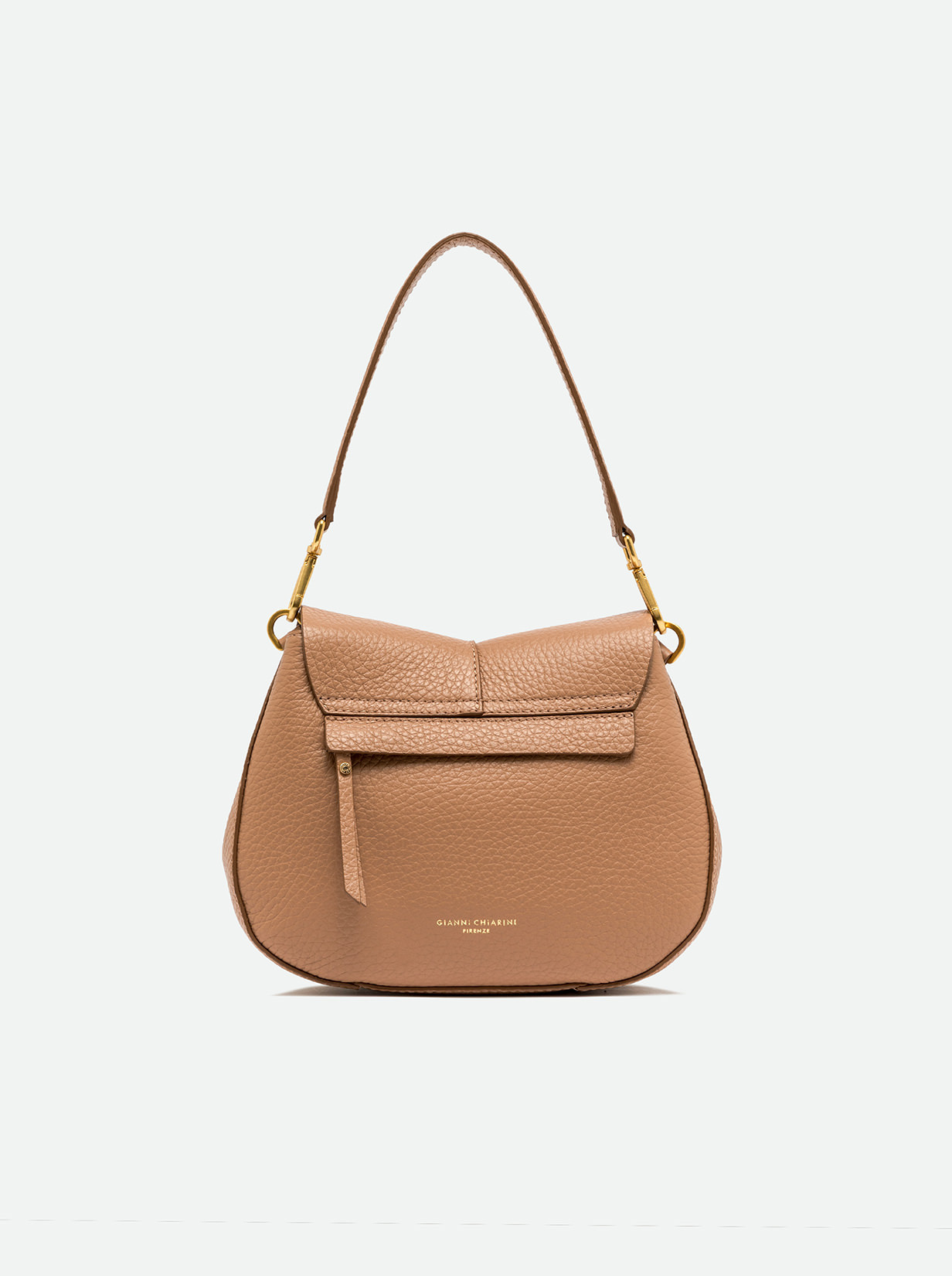 The iconic Helena Round Gianni Chiarini Firenze bag in maxi grain leather boasts a structured design with a contemporary, glam appeal. Thanks to the shoulder straps it is equipped with, it can be worn in two different ways. Practical and organized, it features a double interior compartment and a concealed pocket, also on the back of the bag. Size: 26x21x9 cm.