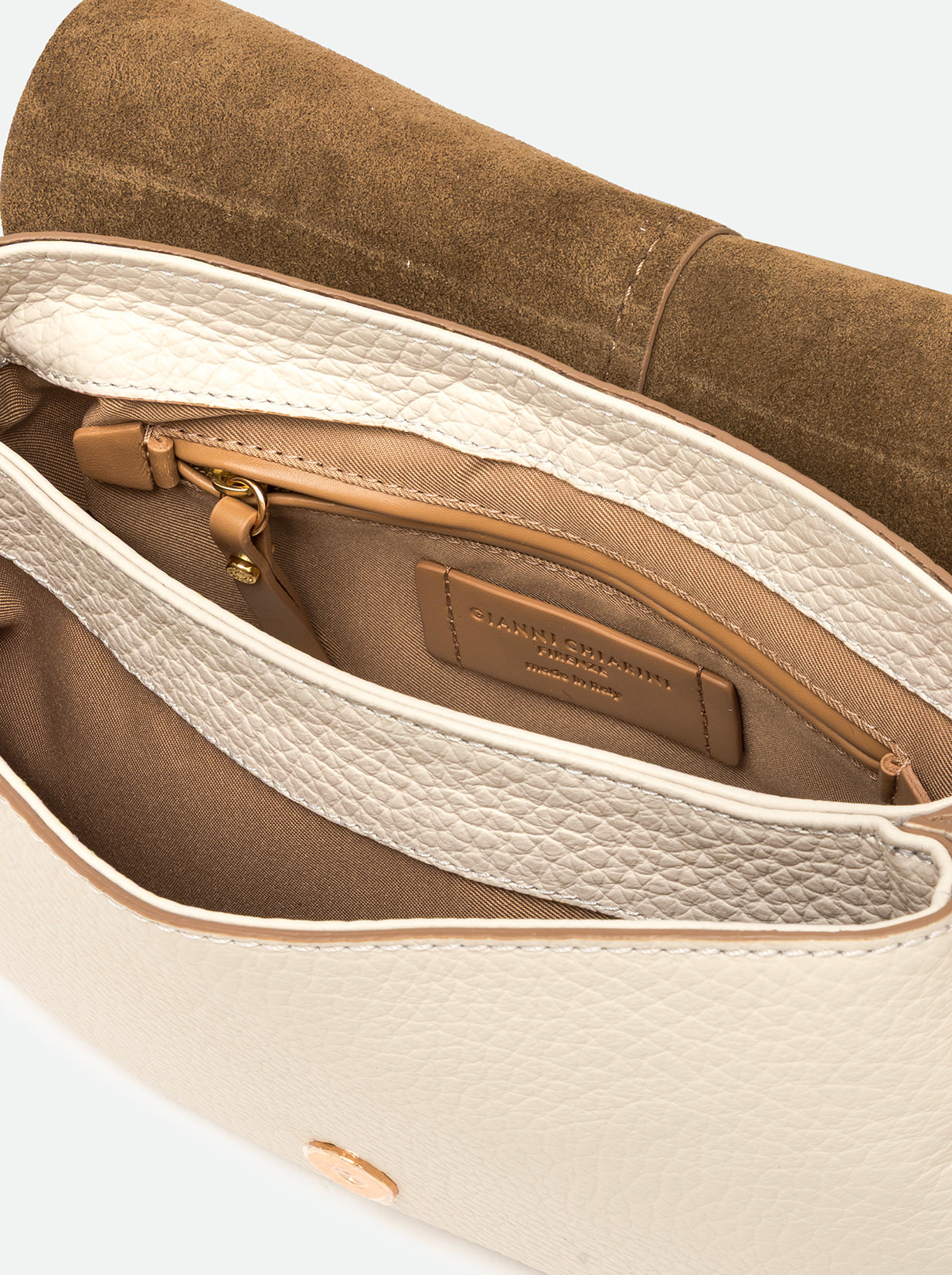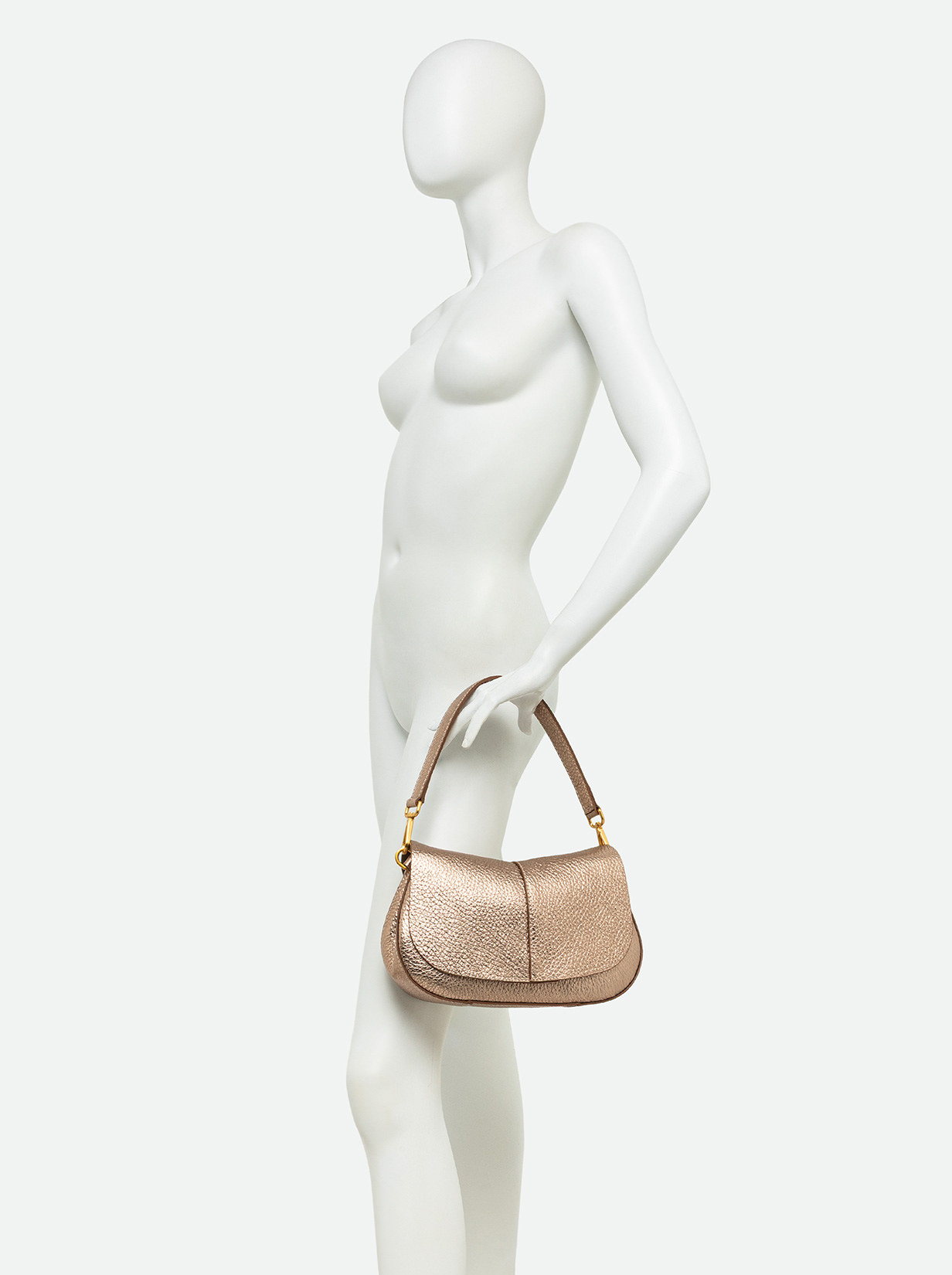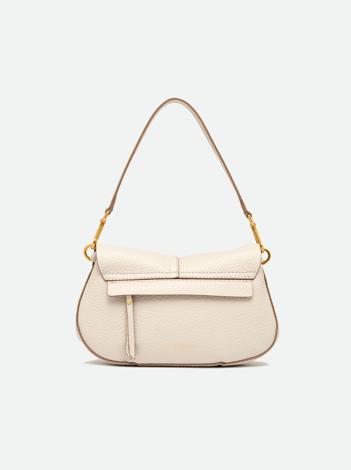 The iconic Helena Round Gianni Chiarini Firenze bag in maxi grain leather boasts a structured design with a contemporary, glam appeal. Thanks to the shoulder straps it is equipped with, it can be worn in two different ways. Practical and organized, it features a double interior compartment and a concealed pocket, also on the back of the bag. Size: 28x16x7.5 cm.