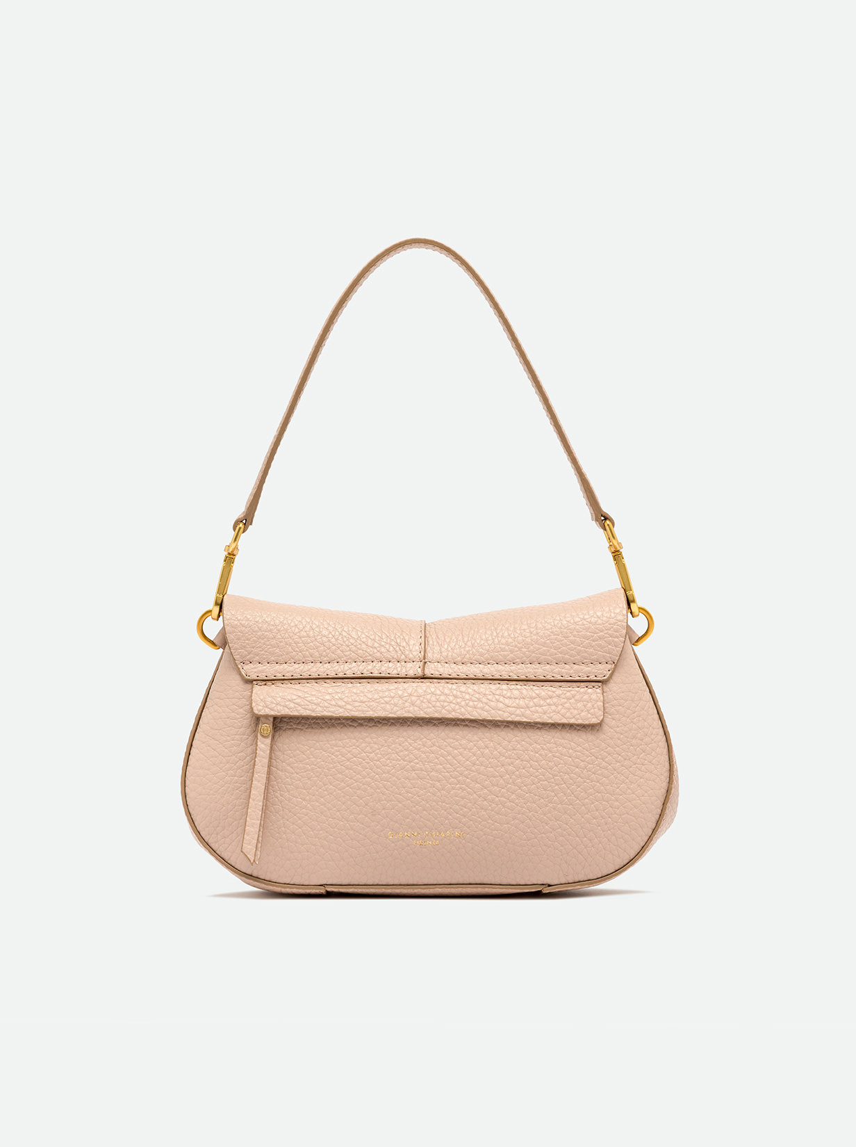 The iconic Helena Round Gianni Chiarini Firenze bag in maxi grain leather boasts a structured design with a contemporary, glam appeal. Thanks to the shoulder straps it is equipped with, it can be worn in two different ways. Practical and organized, it features a double interior compartment and a concealed pocket, also on the back of the bag. Size: 28x16x7.5 cm.