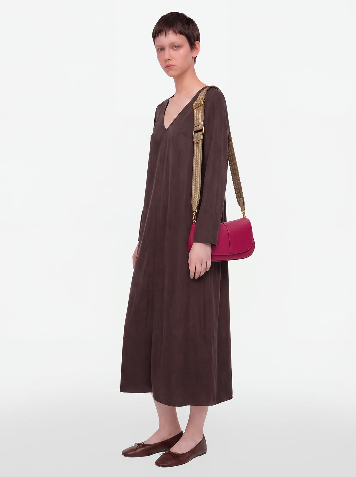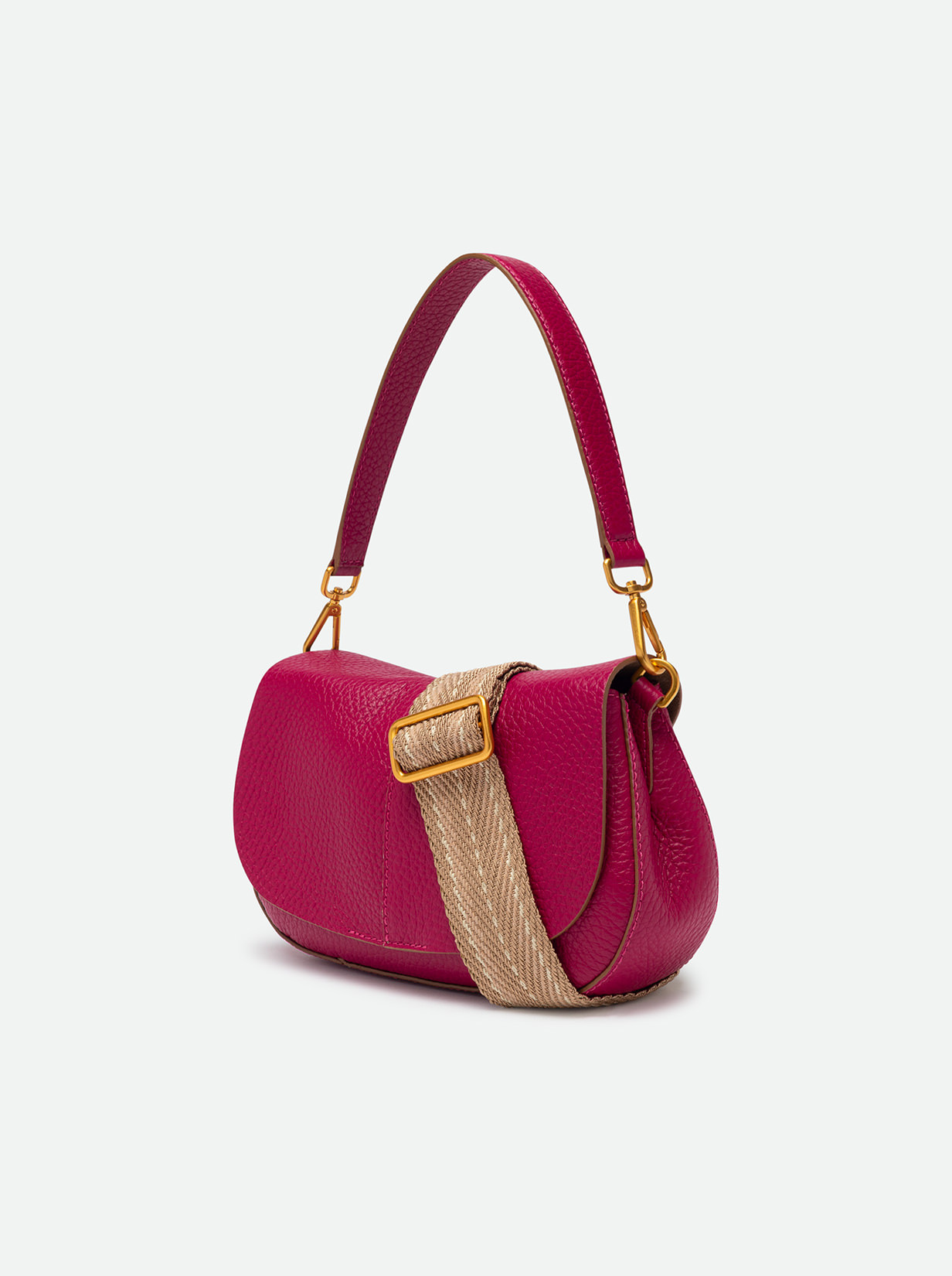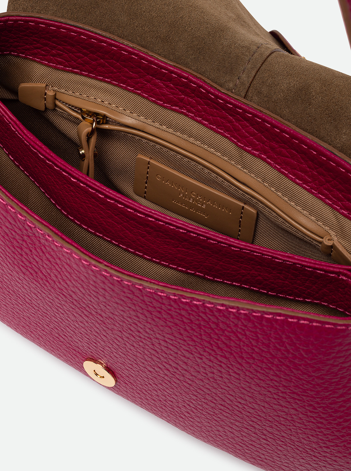 The iconic Helena Round Gianni Chiarini Firenze bag in maxi grain leather boasts a structured design with a contemporary, glam appeal. Thanks to the shoulder straps it is equipped with, it can be worn in two different ways. Practical and organized, it features a double interior compartment and a concealed pocket, also on the back of the bag. Size: 28x16x7.5 cm.
