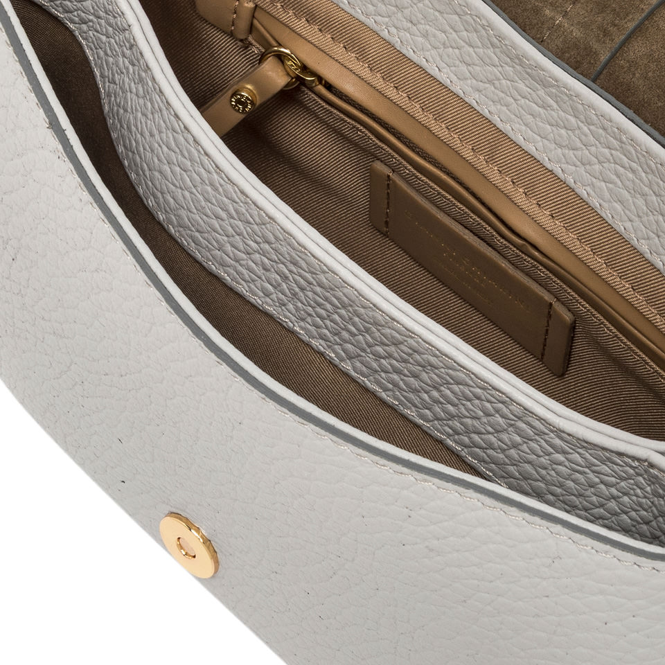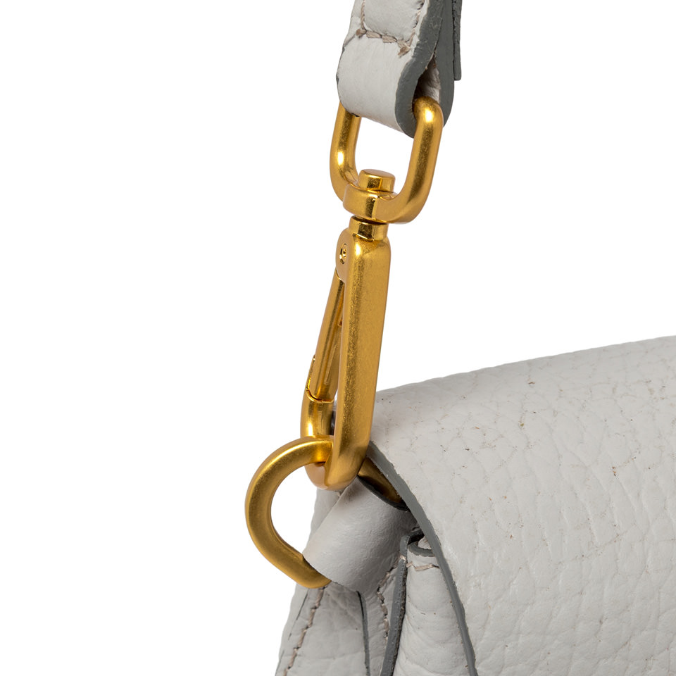 The iconic Helena Round Gianni Chiarini Firenze bag in maxi grain leather boasts a structured design with a contemporary, glam appeal. Thanks to the shoulder straps it is equipped with, it can be worn in two different ways. Practical and organized, it features a double interior compartment and a concealed pocket, also on the back of the bag. Size: 28x16x7.5 cm.