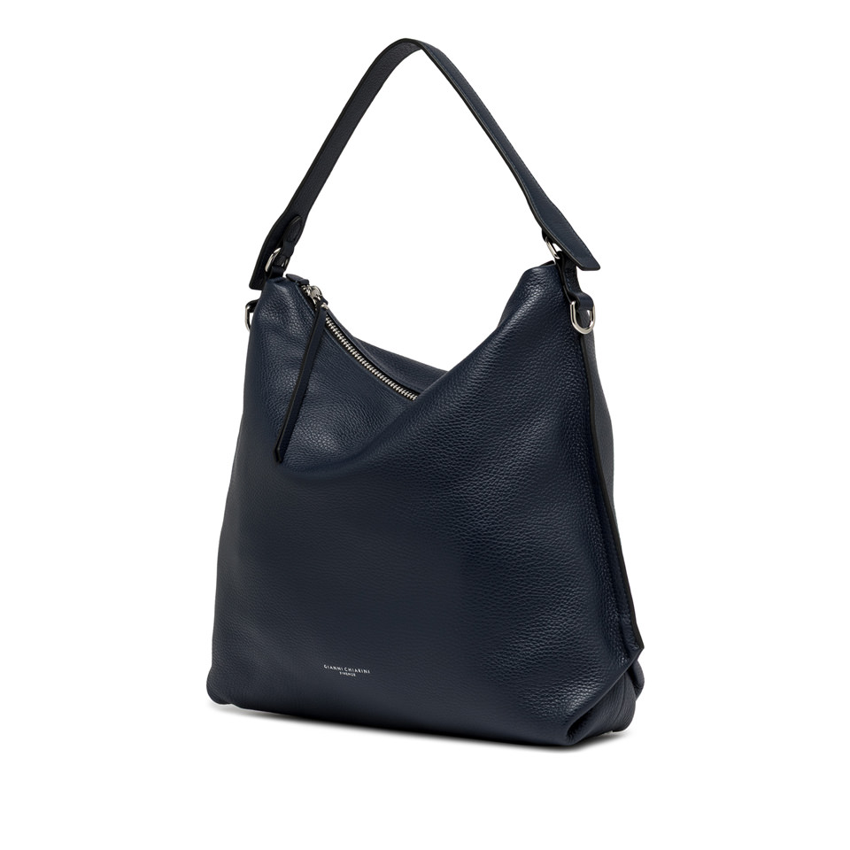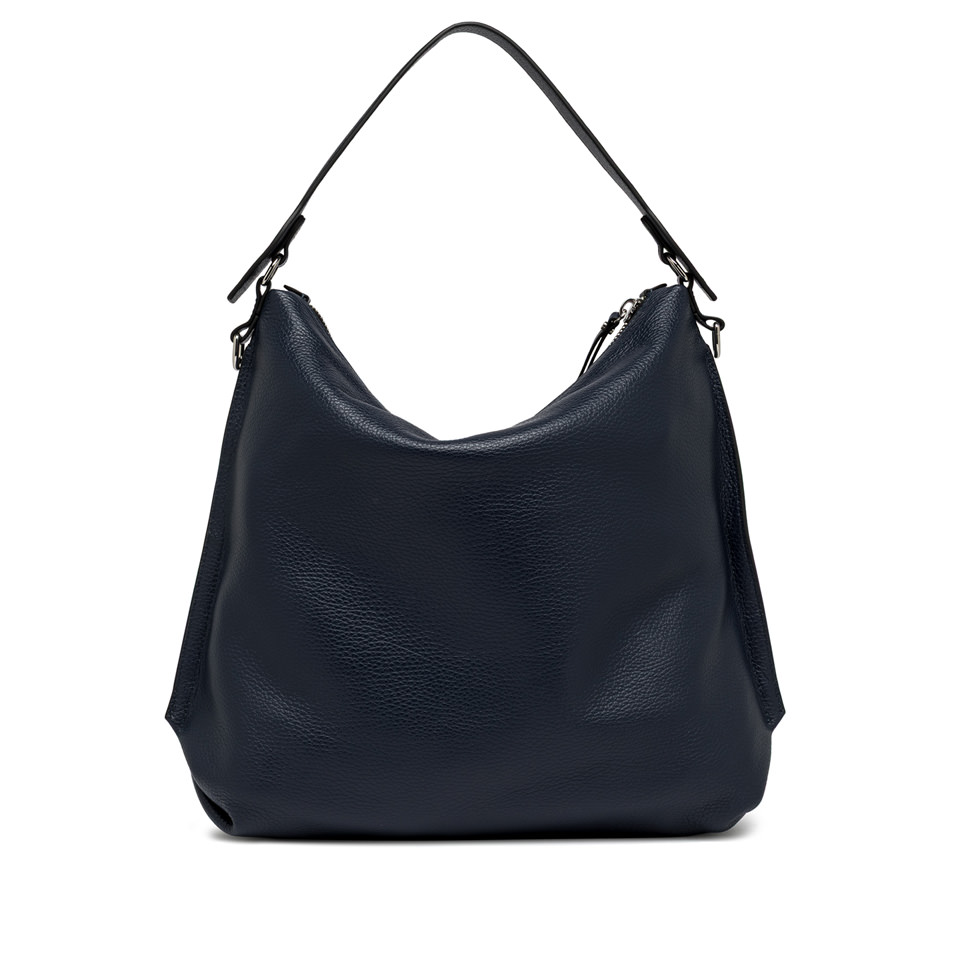 With a soft geometric silhouette, Virginia is a versatile and elegant bag, perfect for any moment of the day. Crafted from hammered leather, it stands out for its timeless functionality and style. Equipped with a zip closure, a tonal handle, and a removable, adjustable leather strap, it blends practicality and sophistication. Size: 37x33x11 cm.