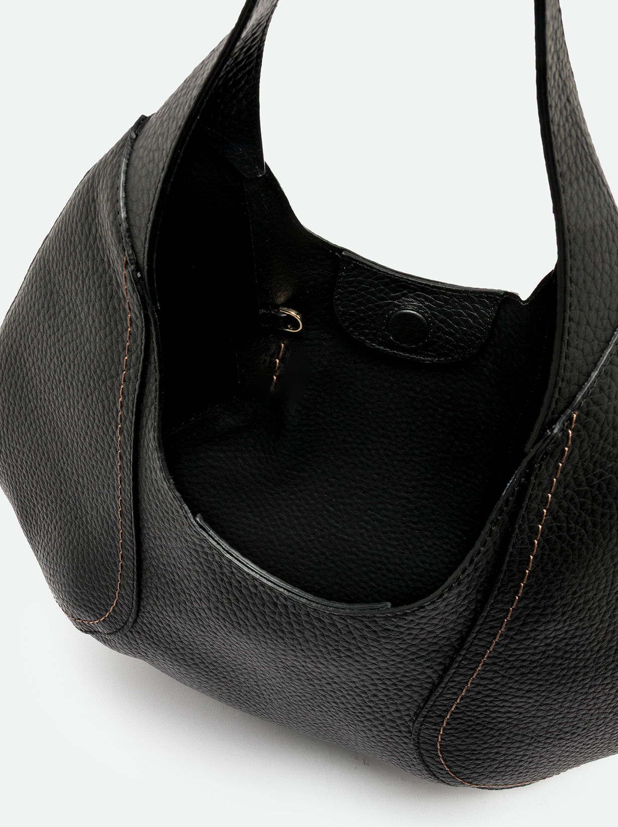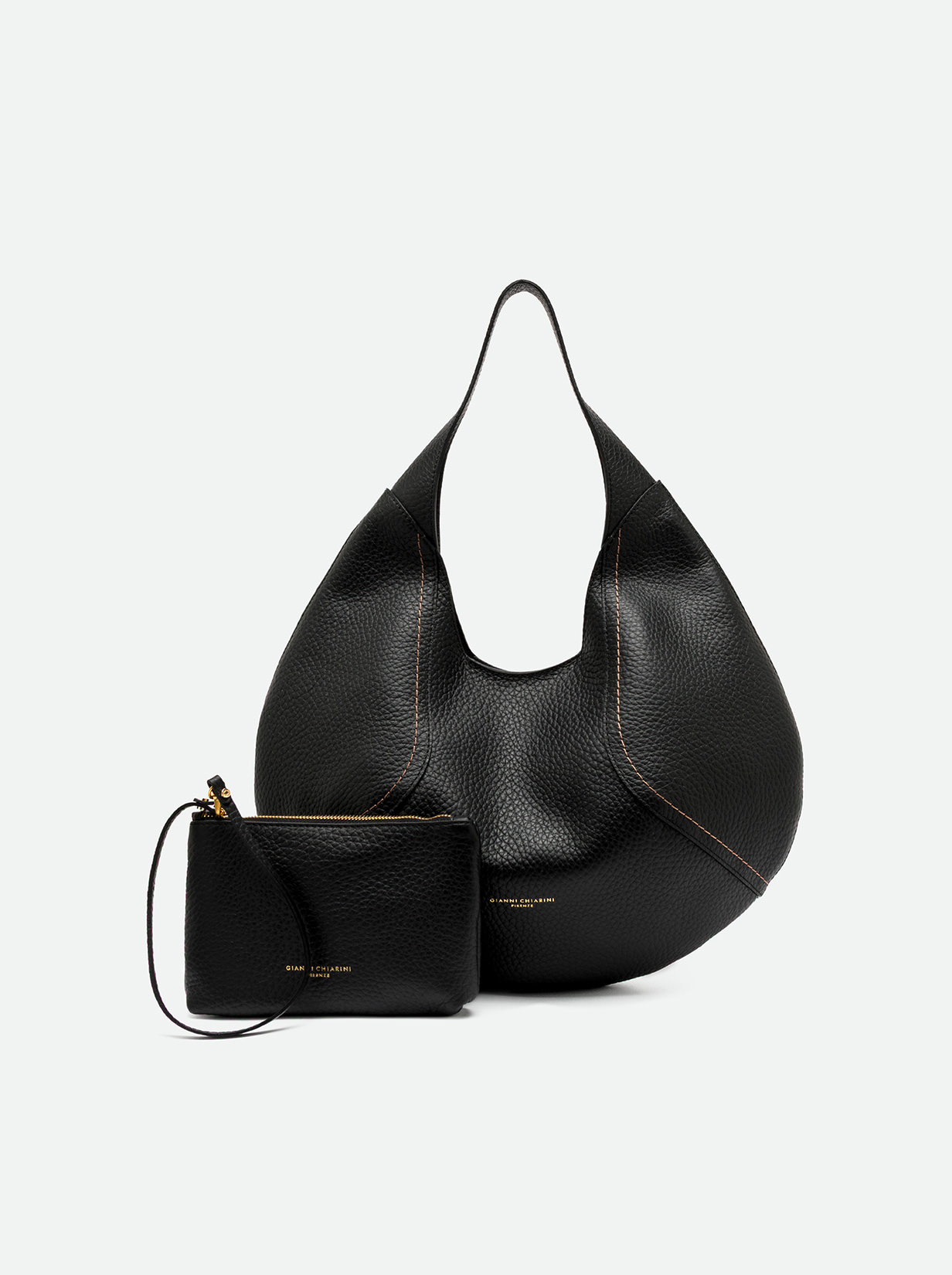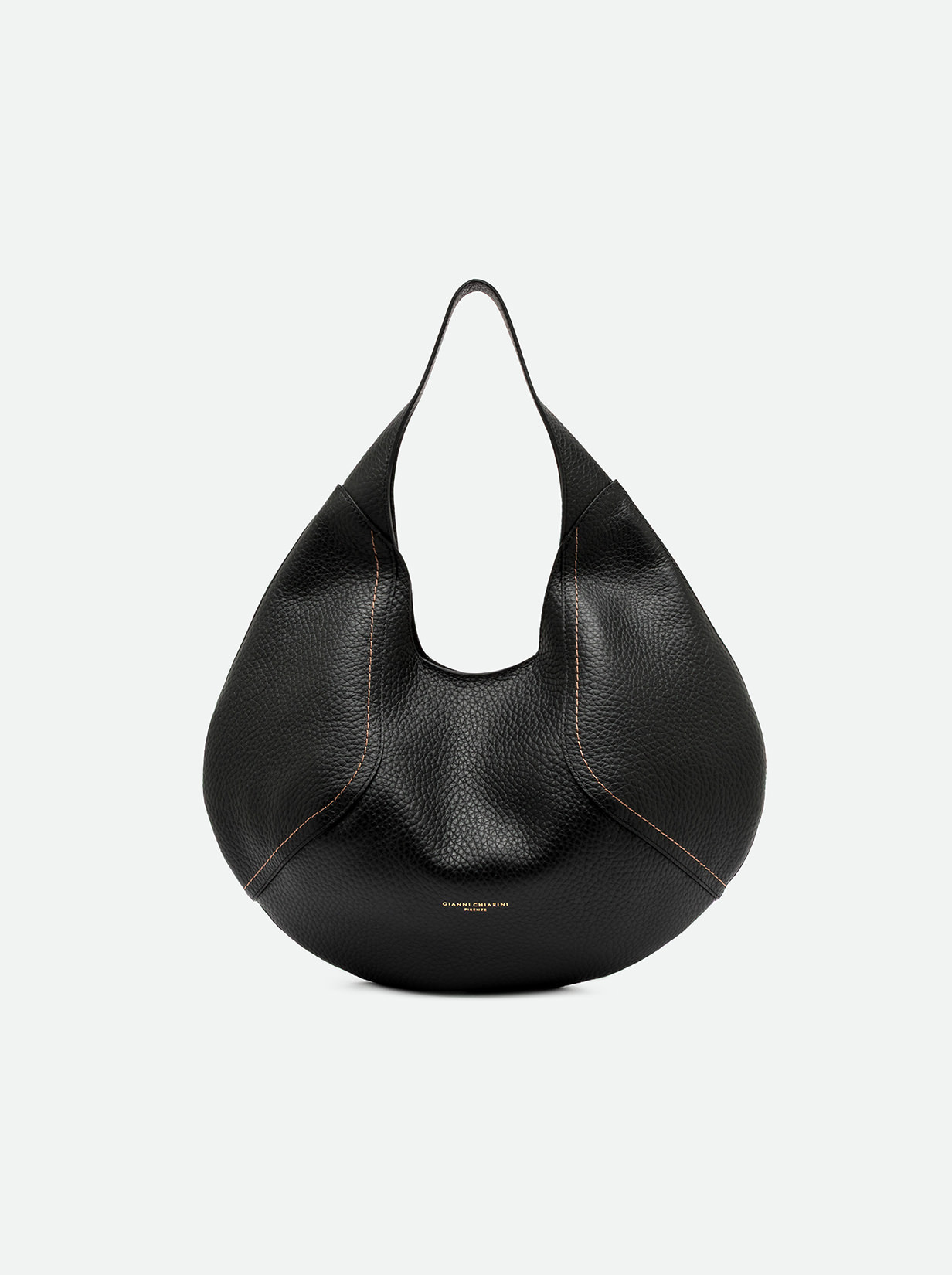 Zeudi is the new shoulder bag by Gianni Chiarini. Made of maxi grain leather, it features a soft half-moon shape. Made of maxi grain leather, it features a practical magnetic clasp closure. Ideal for women with a simple and effortless look. Comes with a convenient zippered pouch. Size: 45x30x12 cm.
