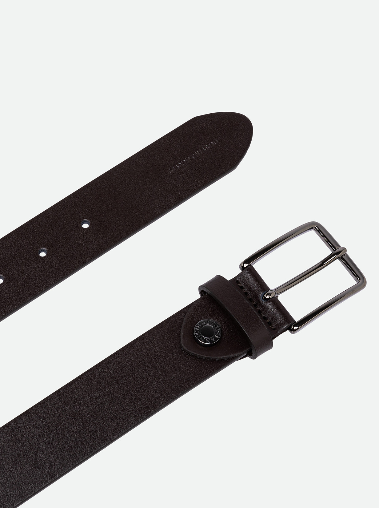 Flat belt with clean lines, ideal for completing both casual and elegant looks. Made from smooth leather, this belt features a metal buckle with a logo that adds a touch of character.