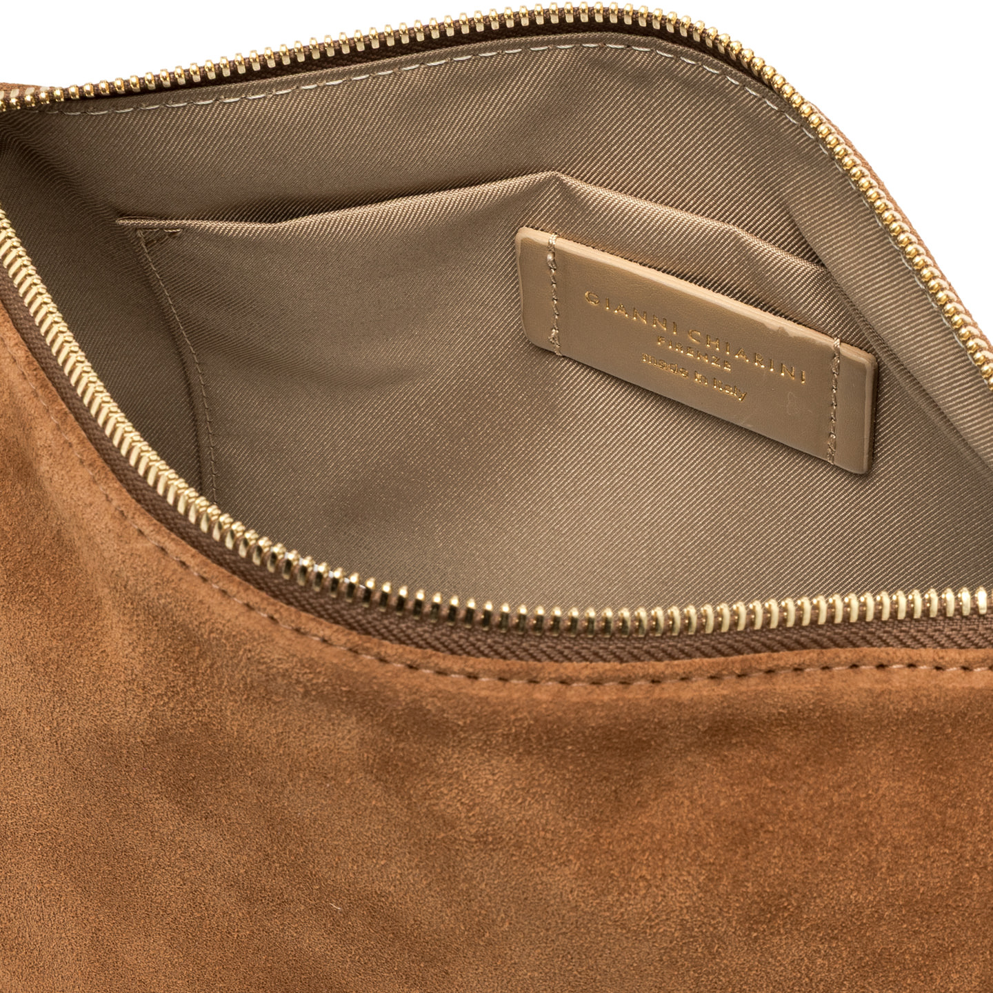 Nora Pouch by Gianni Chiarini Firenze is made of soft suede. It features a leather strap to wear it at the wrist, in addition to an adjustable shoulder strap in leather, both removable. Zipper closure. Size: 28x21x9 cm.
