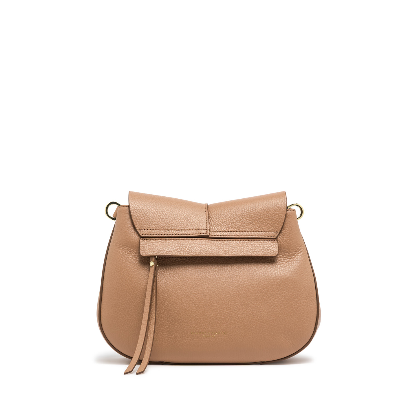 The iconic Helena Round by Gianni Chiarini Firenze, crafted from hammered leather, is distinguished by its structured design with a contemporary appeal. Versatile and functional, it features a strap for dual carrying options and offers impeccable organization with a double internal compartment and a hidden back pocket. Size: 26x21x9 cm.