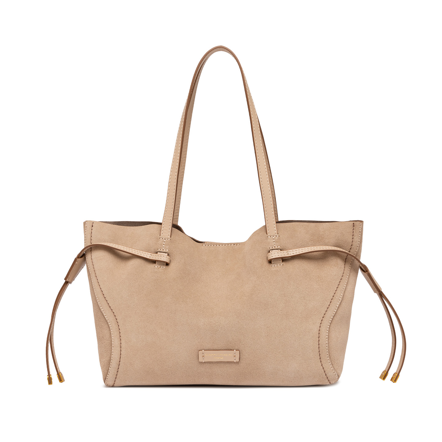 Violette by Gianni Chiarini Firenze is a bag with bold sophistication, crafted from suede. Defined by contrast stitching, decorative ties with metallic tips, and a removable zip pouch, it blends practicality with elegance. Shoulder-ready and versatile, it adds a modern edge to any look. Size: 31x24x14 cm.