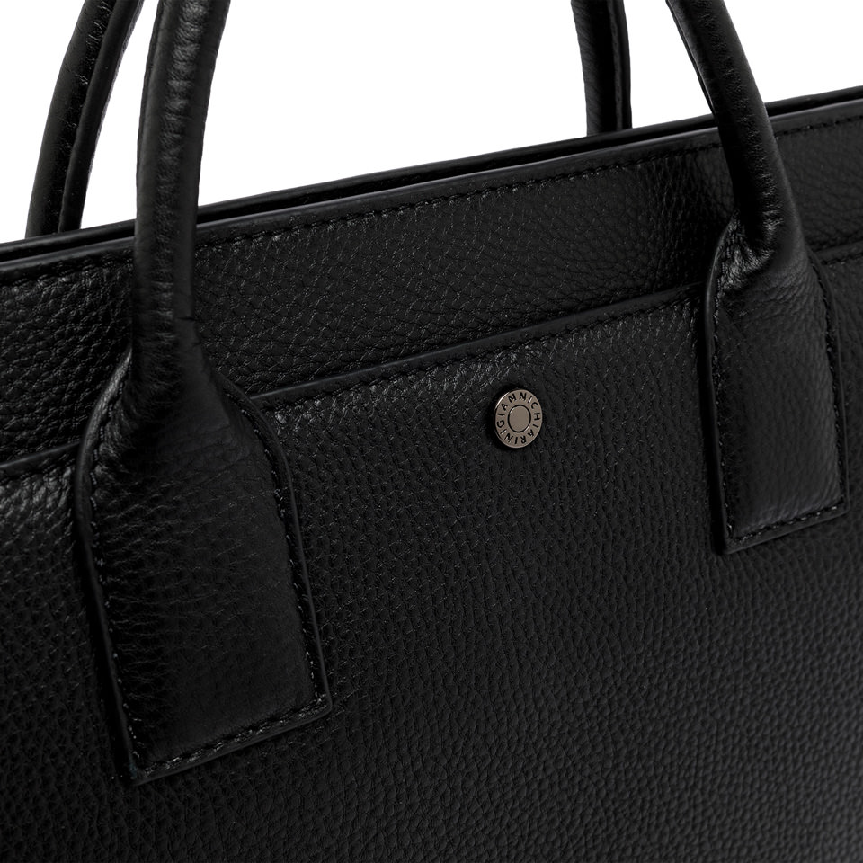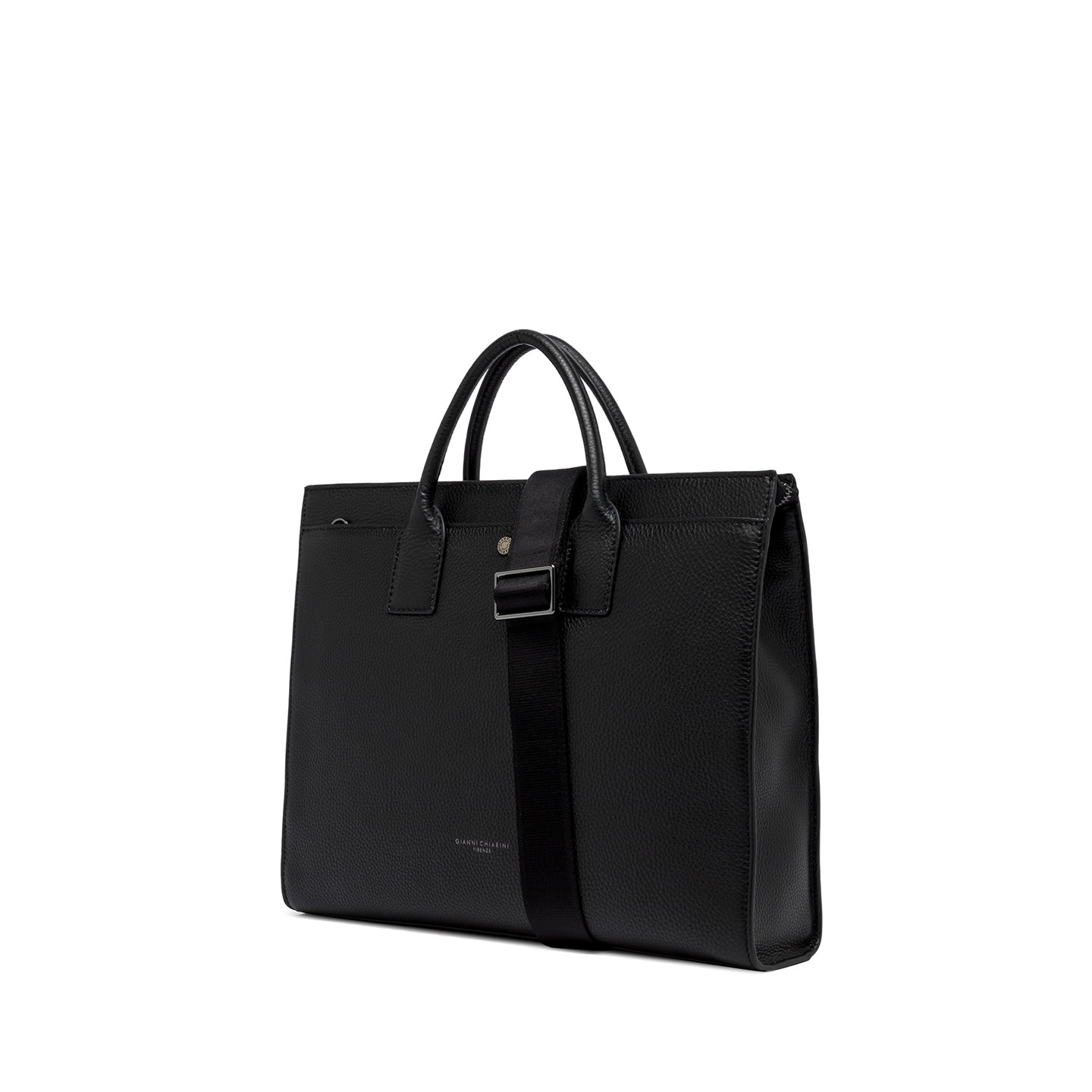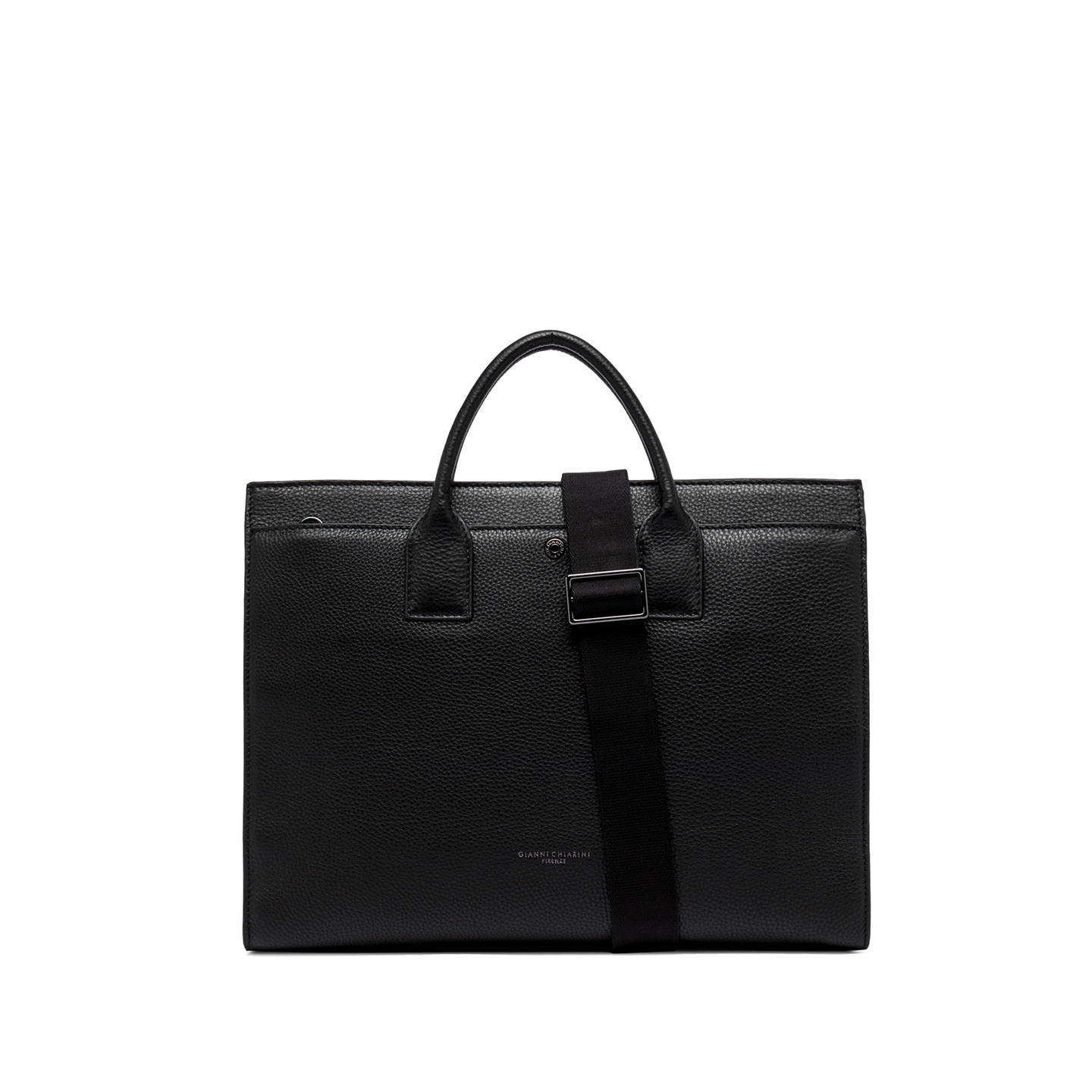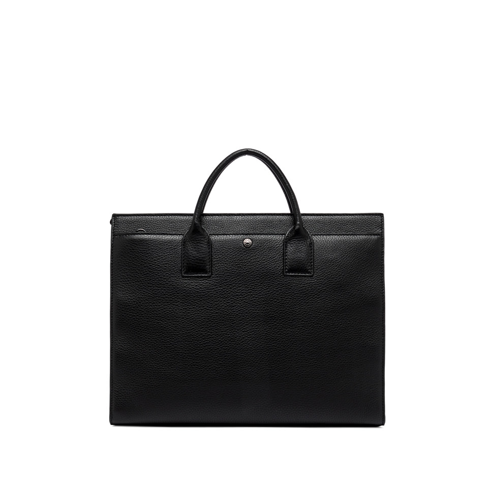 Convenient and practical briefcase, perfect for a man who enjoys interpreting timeless style in a modern way. Made of hammered leather, it features a main compartment with zip and a large flat pocket on the front with a logoed rivet. The two top handles and adjustable shoulder strap in leather allow to carry the item in different ways, making it suitable for any occasion. Size: 38x30x7 cm.