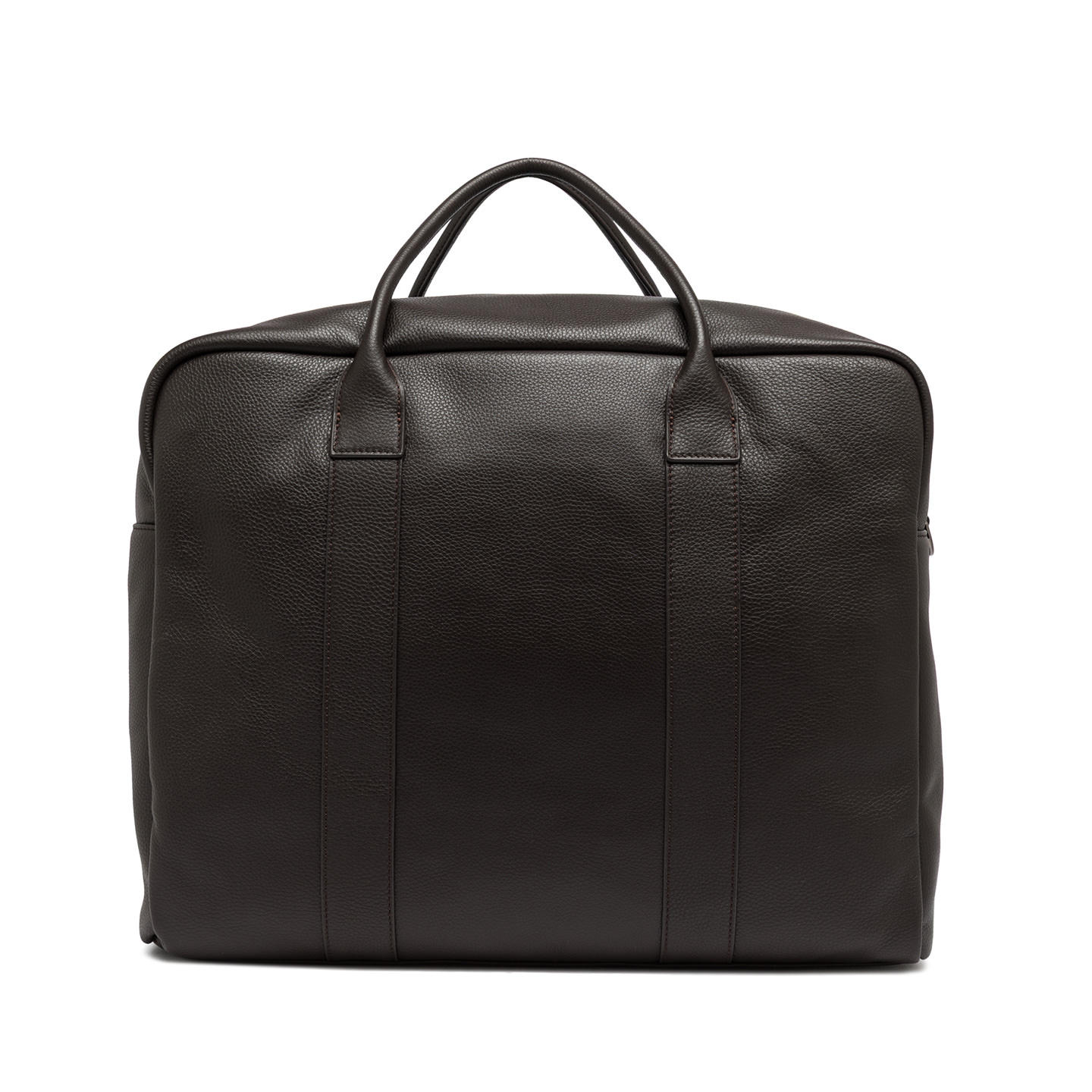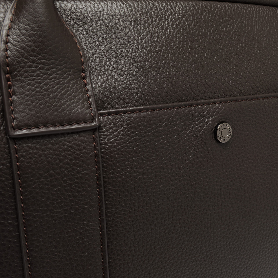 The perfect weekender for the man who demands both elegance and functionality. Crafted from premium hammered leather, it features a spacious main compartment with a zip closure for optimal organization. An adjustable, removable fabric shoulder strap and top handles offer multiple carrying options for unmatched convenience. Size: 45x33x20 cm.