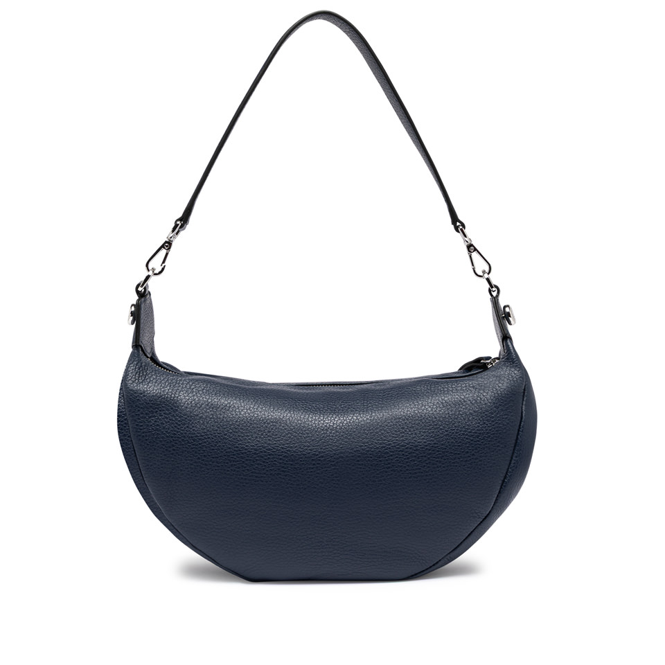 The Aisha bag is perfect for anyone looking for an accessory that blends elegance with practicality. Crafted from hammered leather, it features a relaxed hobo silhouette and a secure zip closure for added convenience. With both a top handle and an adjustable shoulder strap, it can be worn by hand for a more sophisticated look, or cross-body for a casual vibe. Ideal for any occasion, from a day in the city to an evening out. Size: 29x18x12.5 cm.