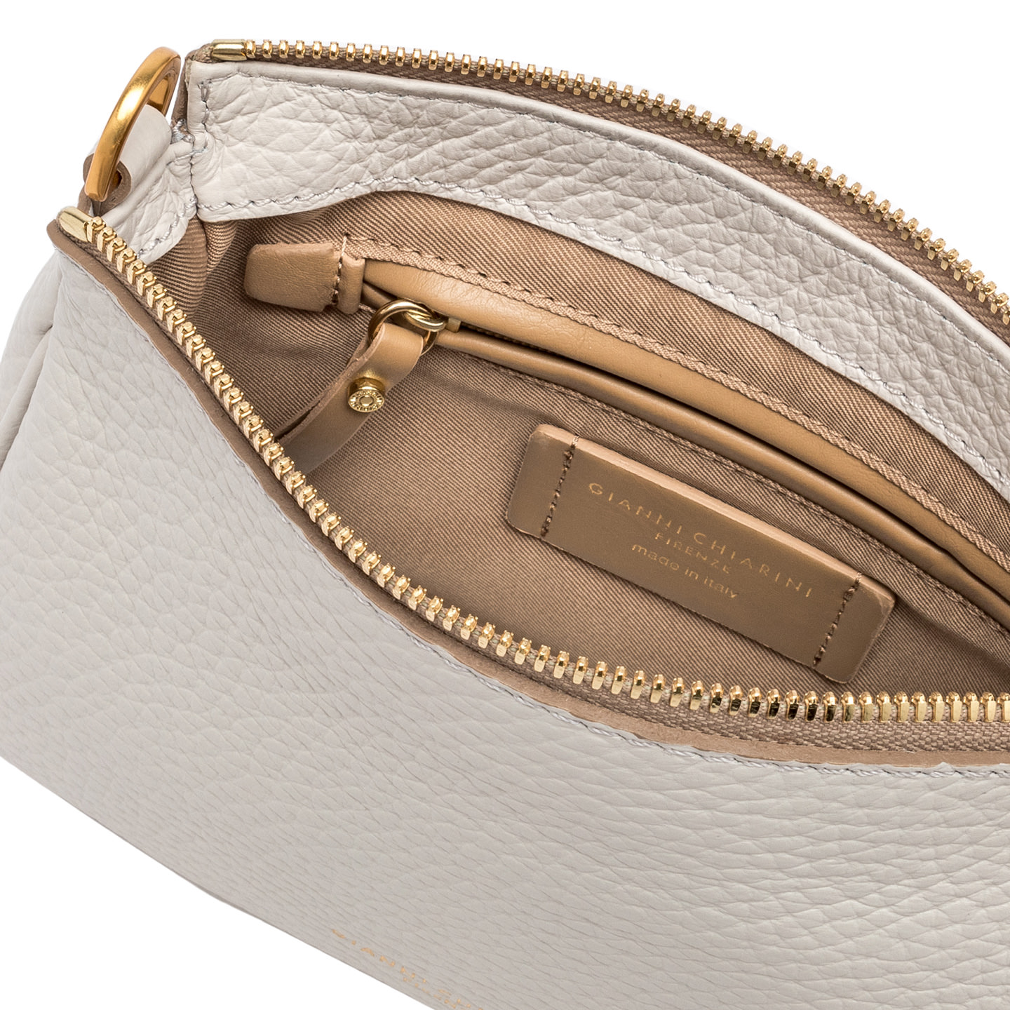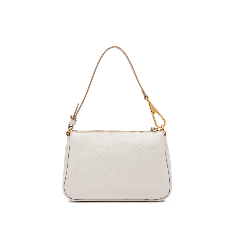 Small and stylish, this Brooke bag by Gianni Chiarini Firenze comes in fine maxi-grain leather. Enriched by a zip closure, a snap hook detailing and a removable handle. The item is sold with an extra shoulder strap to enhance any everyday look. Size: 23x14x4 cm.