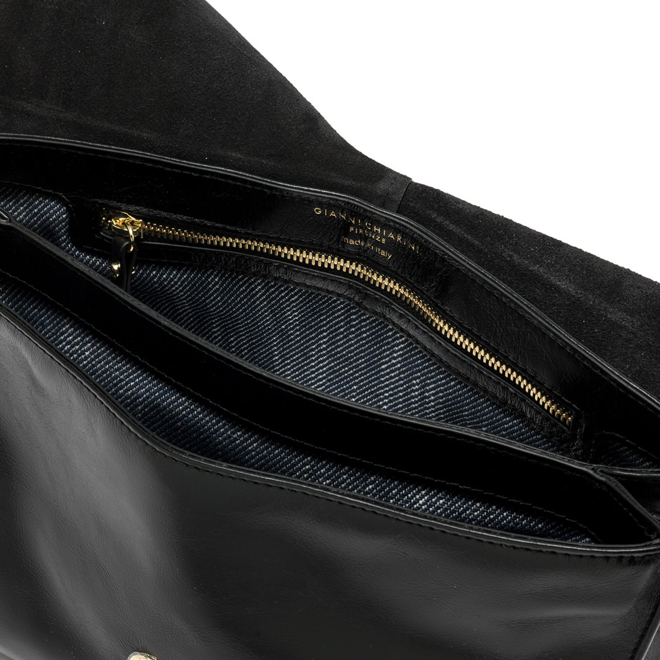 Diva by Gianni Chiarini Firenze is a square-shaped bag that blends tradition with modern design. Crafted from crinkled-effect waxed leather, it closes with a flap and magnetic clasp. With a practical shoulder pad and leather strap, it can be worn over the shoulder or cross-body. Hand-stitched details and a sculpted flap edge make this an everyday essential with distinctive charm. Size: 29x23x11 cm.