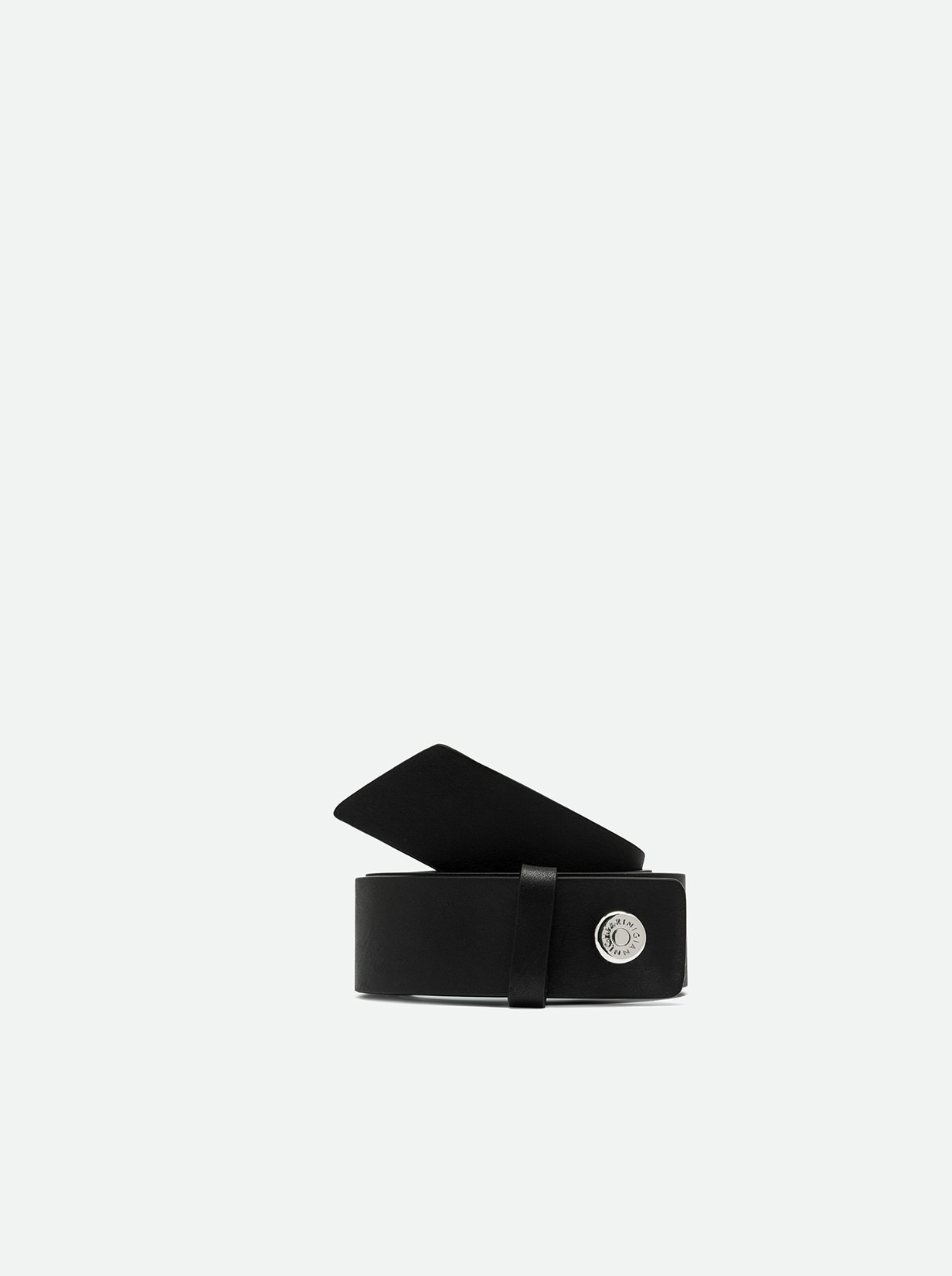 Cintura dalle linee essenziali, perfetta per completare look casual o eleganti. Realizzata in pelle liscia, si distingue per il mix di borchie e la fibbia logata in metallo, che aggiungono un tocco di carattere deciso.