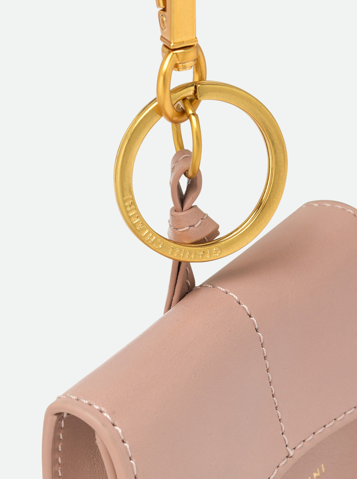 Novità di collezione, il charm by Gianni Chiarini Firenze è pensato per arricchire borse e accessori con un tocco distintivo. Realizzato in pelle stropicciata dall'effetto vintage, si distingue per il design compatto e originale. Combinando tradizione e stile contemporaneo, è ideale per una donna grintosa e creativa. Dotato di moschettone logato e dettaglio knot, aggiunge un accento chic a qualsiasi look. Dimensioni: 10x14x2,5 cm.
